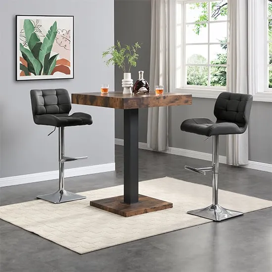 The Topaz Bar Table provides a contemporary dining solution with its square MDF top in concrete effect finish. The solid stainless steel support ensures strength and stability, while the thick square top offers durability for regular use. The shiny stainless steel legs complement the concrete effect base for a modern appearance. W80 x D80 x H110 cm.