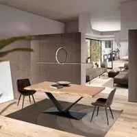 The Brescia dining table provides spacious seating for eight with its solid acacia wood construction. Its pedestal base design offers excellent stability while allowing chairs to be positioned freely around the table. The natural wood finish highlights the acacia's distinctive grain patterns, and the robust construction ensures years of reliable use.