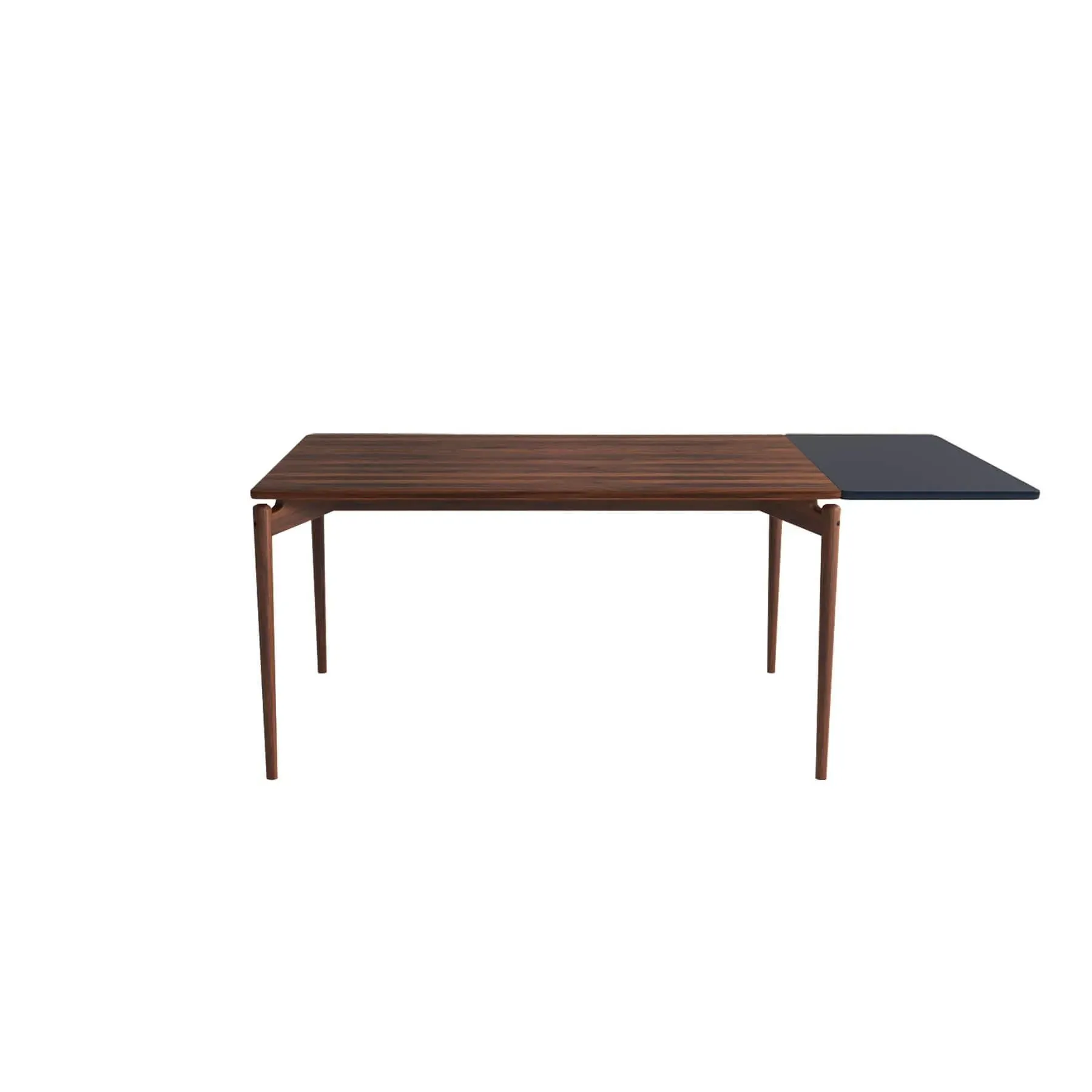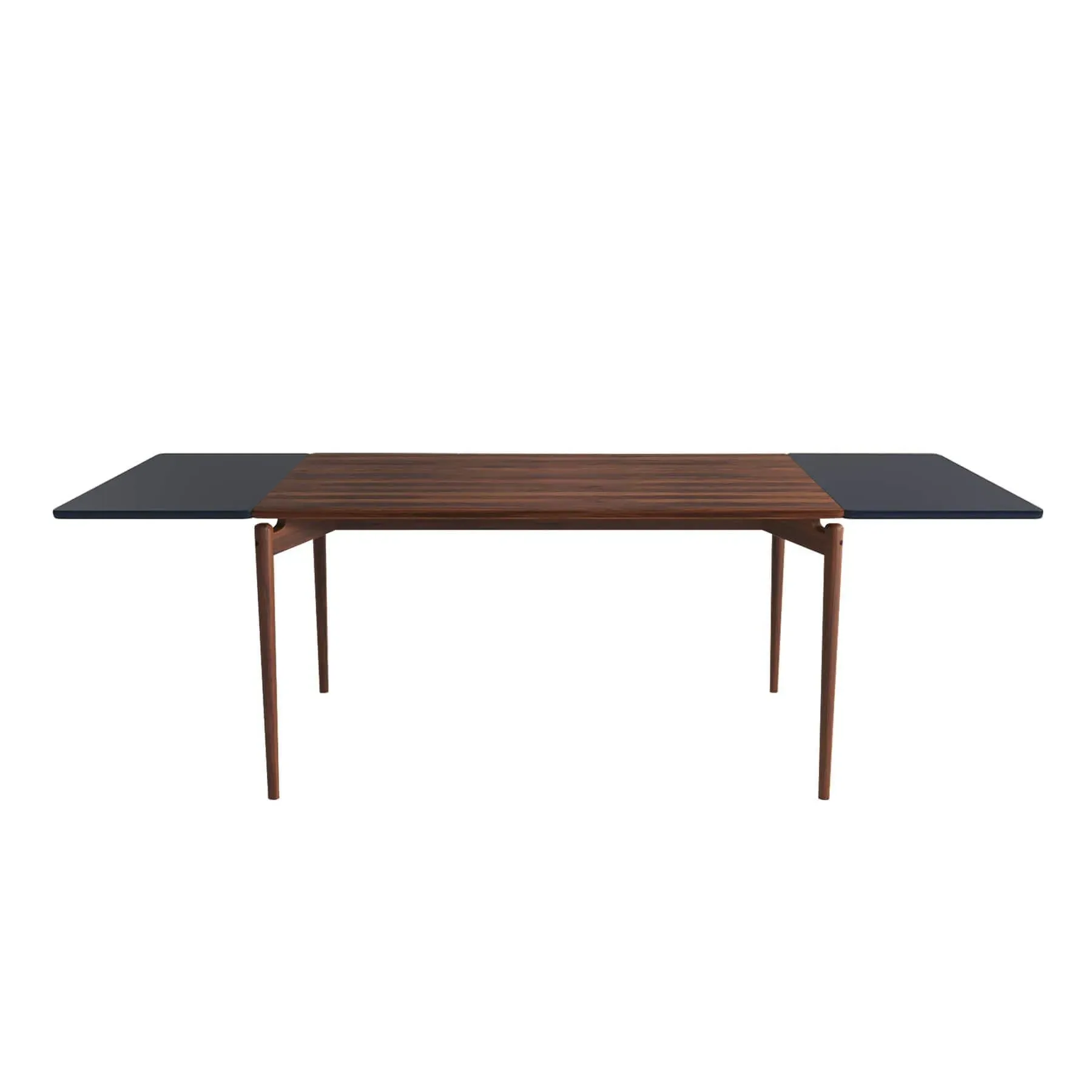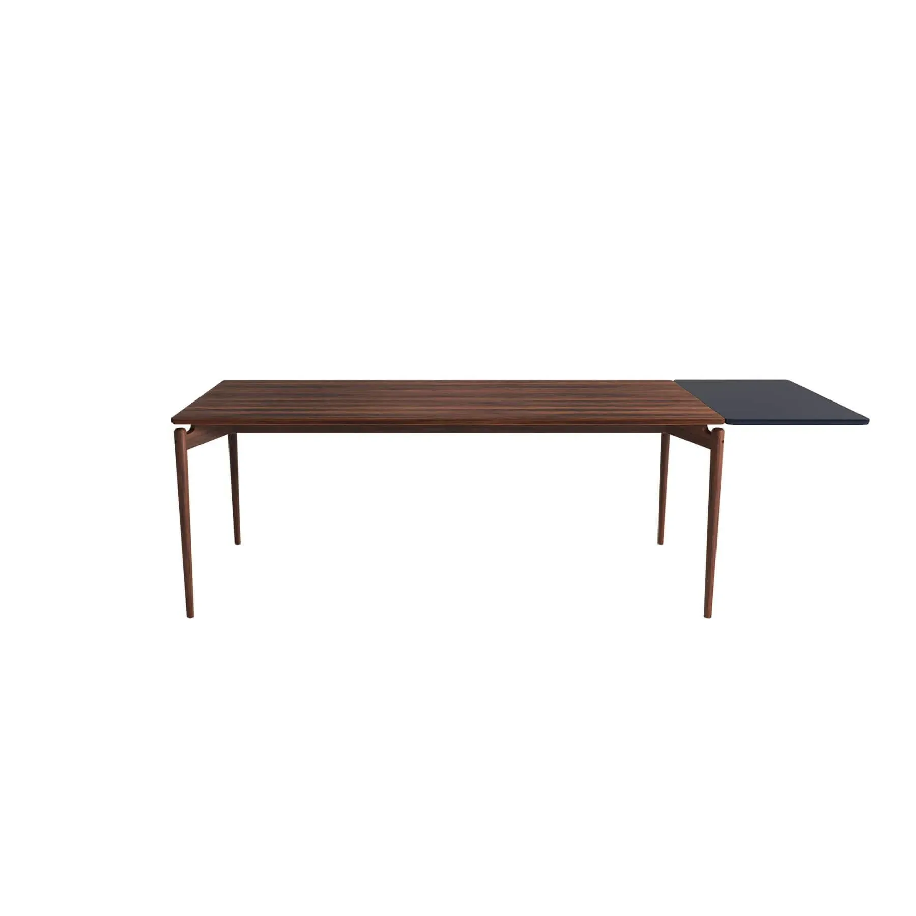 The dining table combines handcrafted Danish artistry with functional design, featuring natural walnut construction and expandable capabilities. Its 85cm width creates an intimate dining atmosphere, while the frame positioned 18cm from the edge accommodates chairs with armrests comfortably. The table accepts extender plates on both ends for hosting larger gatherings, with each 50cm plate maintaining the table's refined aesthetic. The solid walnut construction ensures lasting durability and timeless appeal.