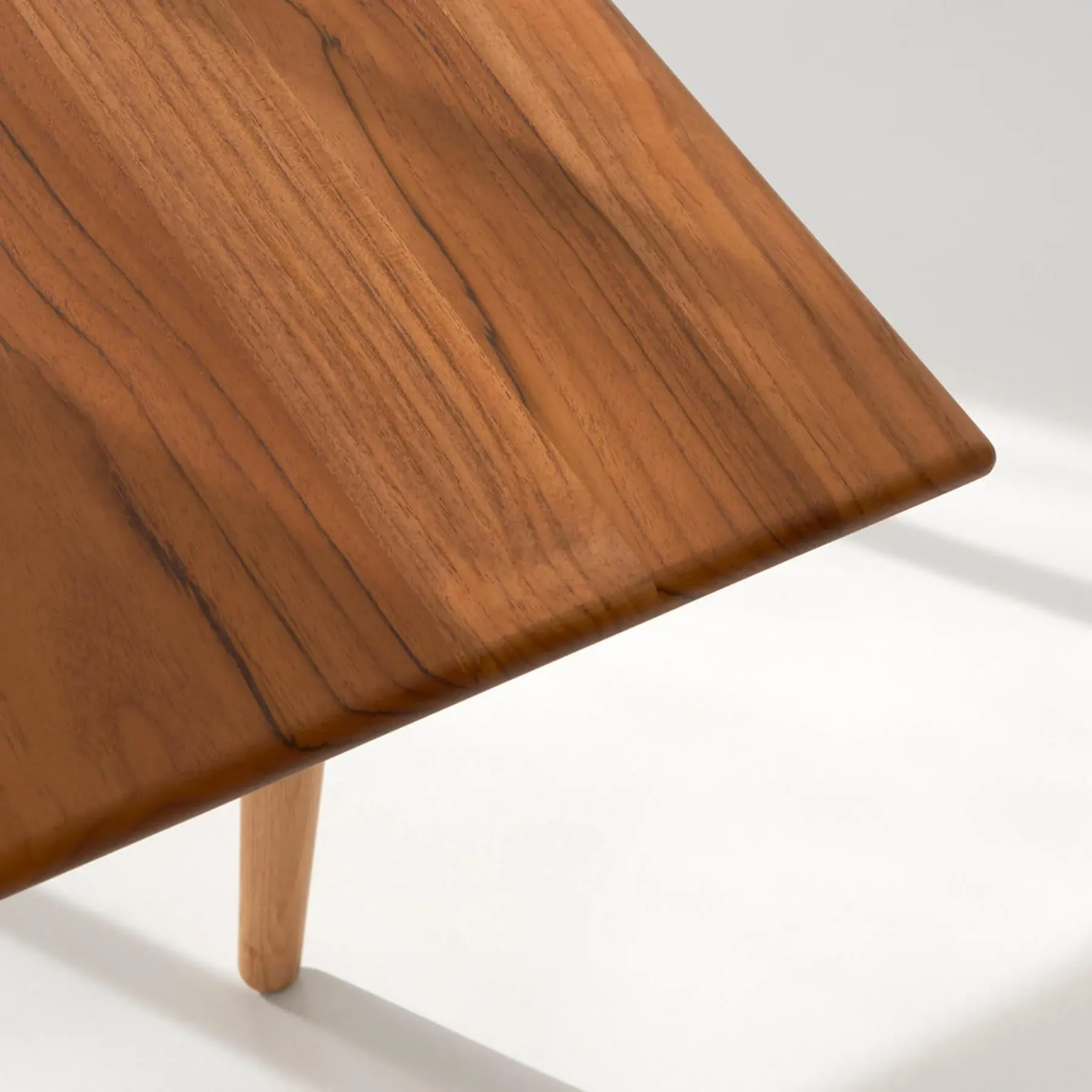 The dining table offers solid wood construction with rounded legs that taper gracefully to the floor. Its distinctive floating tabletop design creates visual lightness through the gap along the side rail, while the oil finish brings out the natural wood character. The table includes two additional leaves and serves multiple functions from dining to workspace use.