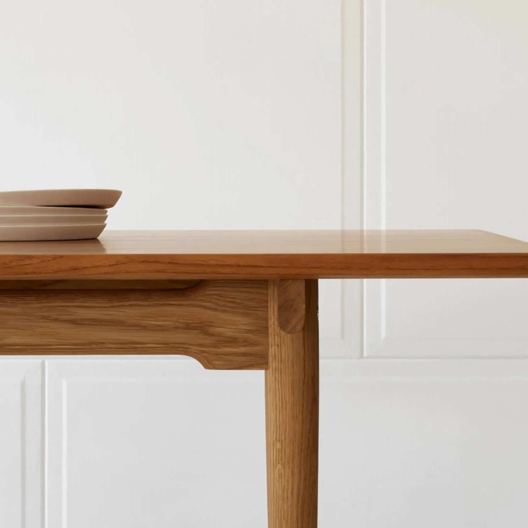 The appealing CH327 dining table, created by Danish visionary Hans J. Wegner, combines creativity with expert craftsmanship in one distinct design. The table features rounded legs that elegantly taper towards the floor and a solid wood tabletop that appears as though floating due to the gap between the side rail that runs along the length of the table. The contemporary CH327 dining table’s ingenious versatility means it can be used as a dining table, meeting table or desk. Available in a range of wood frame finishes with two additional leaves.