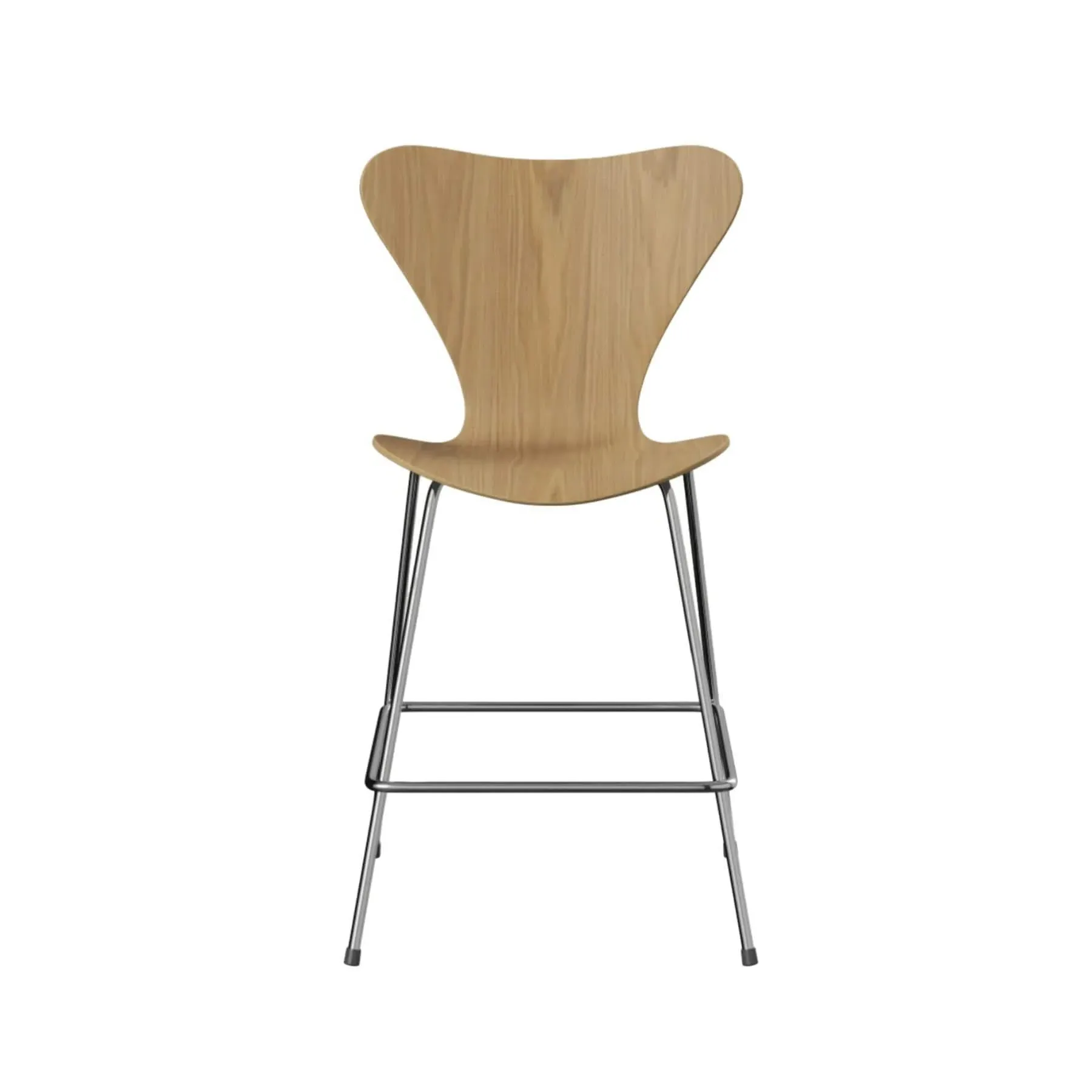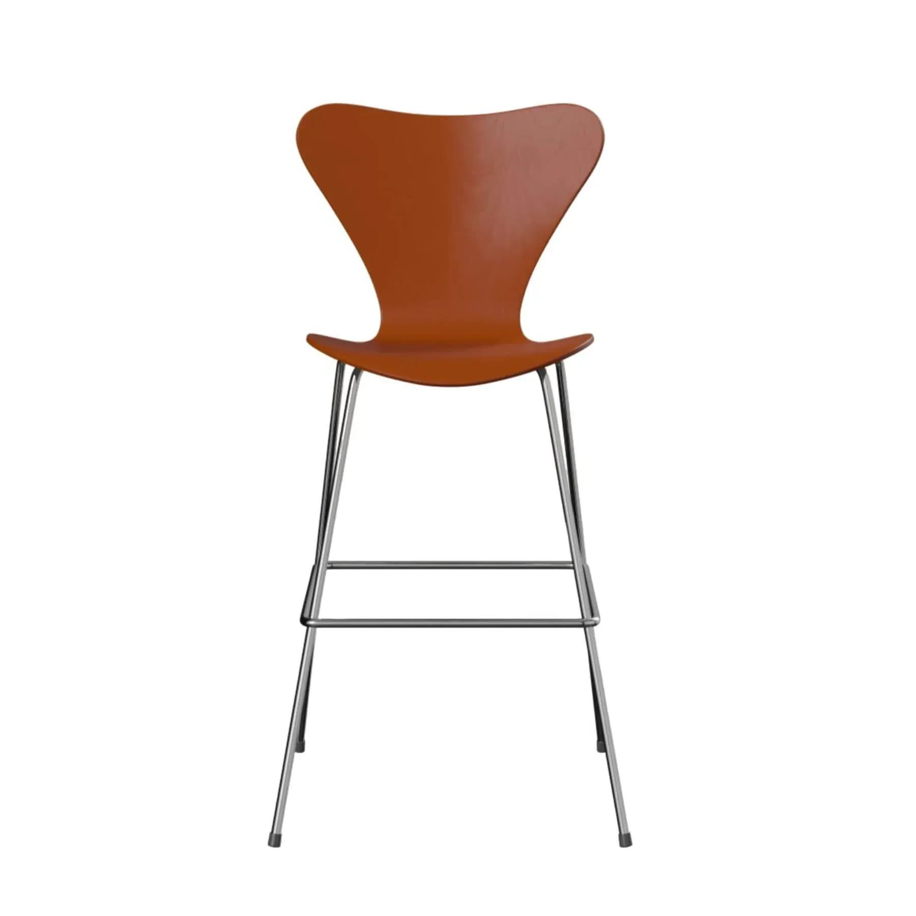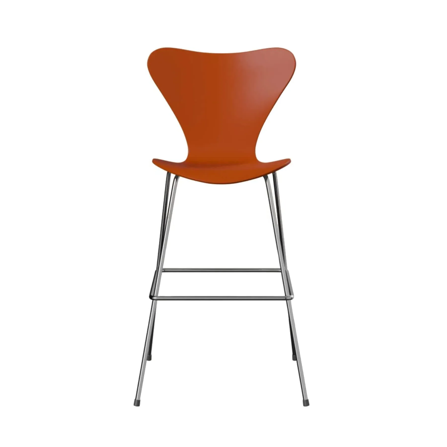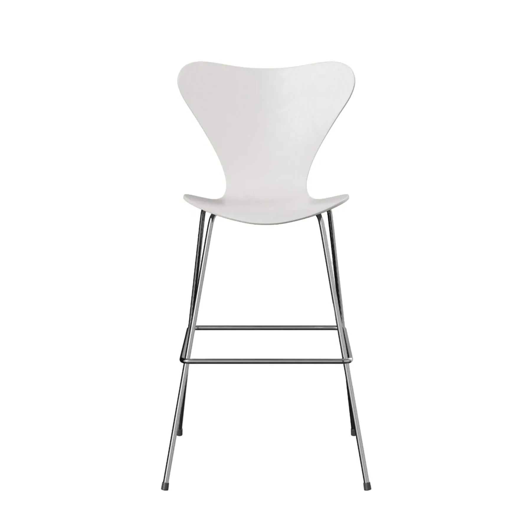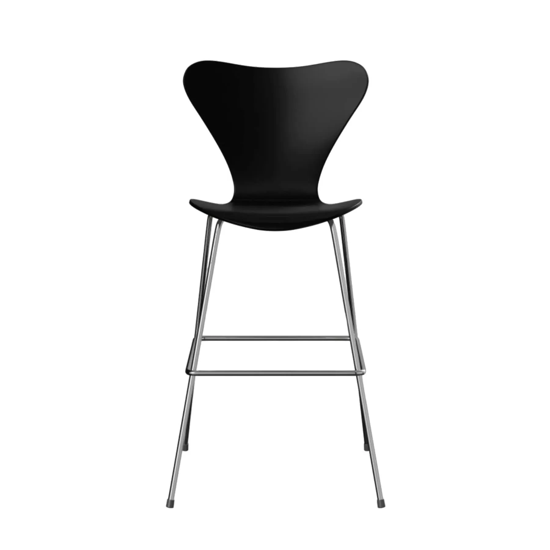 Explore the epitome of elegance and functionality with the Series 7 Bar Stool by Fritz Hansen. Pay homage to the iconic Series 7™ chair, as this barstool redefines contemporary design with its timeless allure. Crafted by visionary Arne Jacobsen in 1955, the chair''s unique shape seamlessly blends character and subtlety, making it a versatile addition to any space. Immerse yourself in the allure of a design that has withstood the test of time, bringing a touch of sophistication to your surroundings. Meticulously crafted from 9 layers of pressure-moulded veneer, the Series 7 Bar Stool embodies strength, flexibility, and durability while maintaining a slender and chic form. This exceptional construction not only pays homage to its mid-century roots but also ensures a product that stands the test of time. The four-sided footrest in tubular steel, ingeniously fixed to the extended legs, preserves the visual harmony of the chair''s clean and simple construction, elevating the overall aesthetic appeal. Unveiled in 2005 to commemorate the 50th anniversary of the Series 7 design, this barstool seamlessly combines heritage and modernity. Step into a world of sophistication and refinement with the Series 7 Bar Stool – a masterpiece within Fritz Hansen''s chair collection. Beyond being a mere piece of furniture, it represents a design legacy that continues to captivate discerning enthusiasts. Imbue your space with the enduring charm of this barstool, where classic design meets contemporary living, creating an ambiance that resonates with style and timelessness. Elevate your surroundings with a touch of iconic elegance embodied in every curve and detail of the Series 7 Bar Stool by Fritz Hansen.