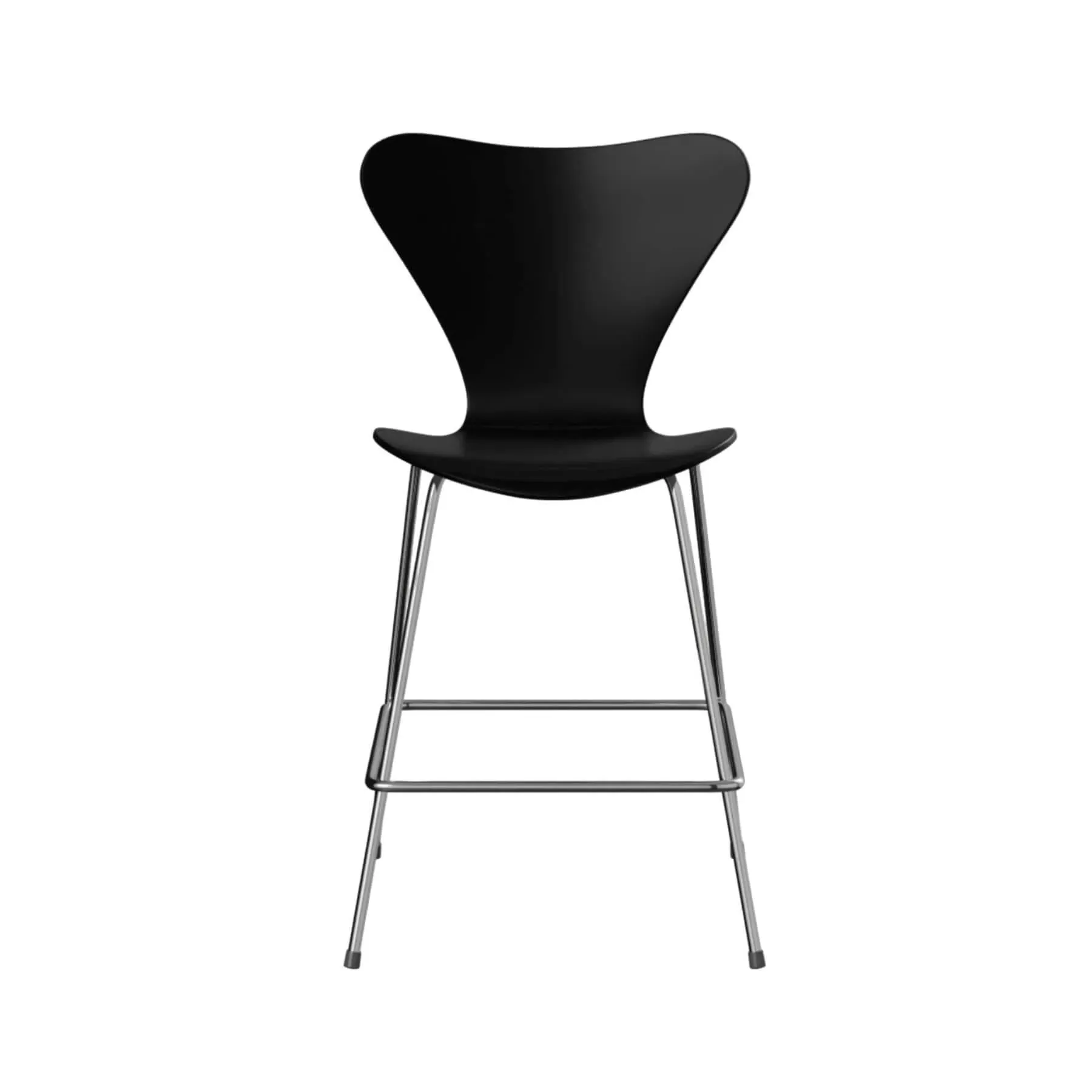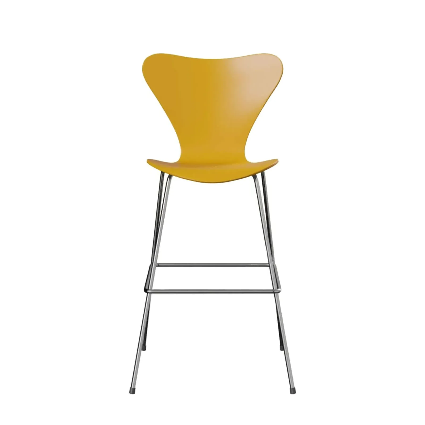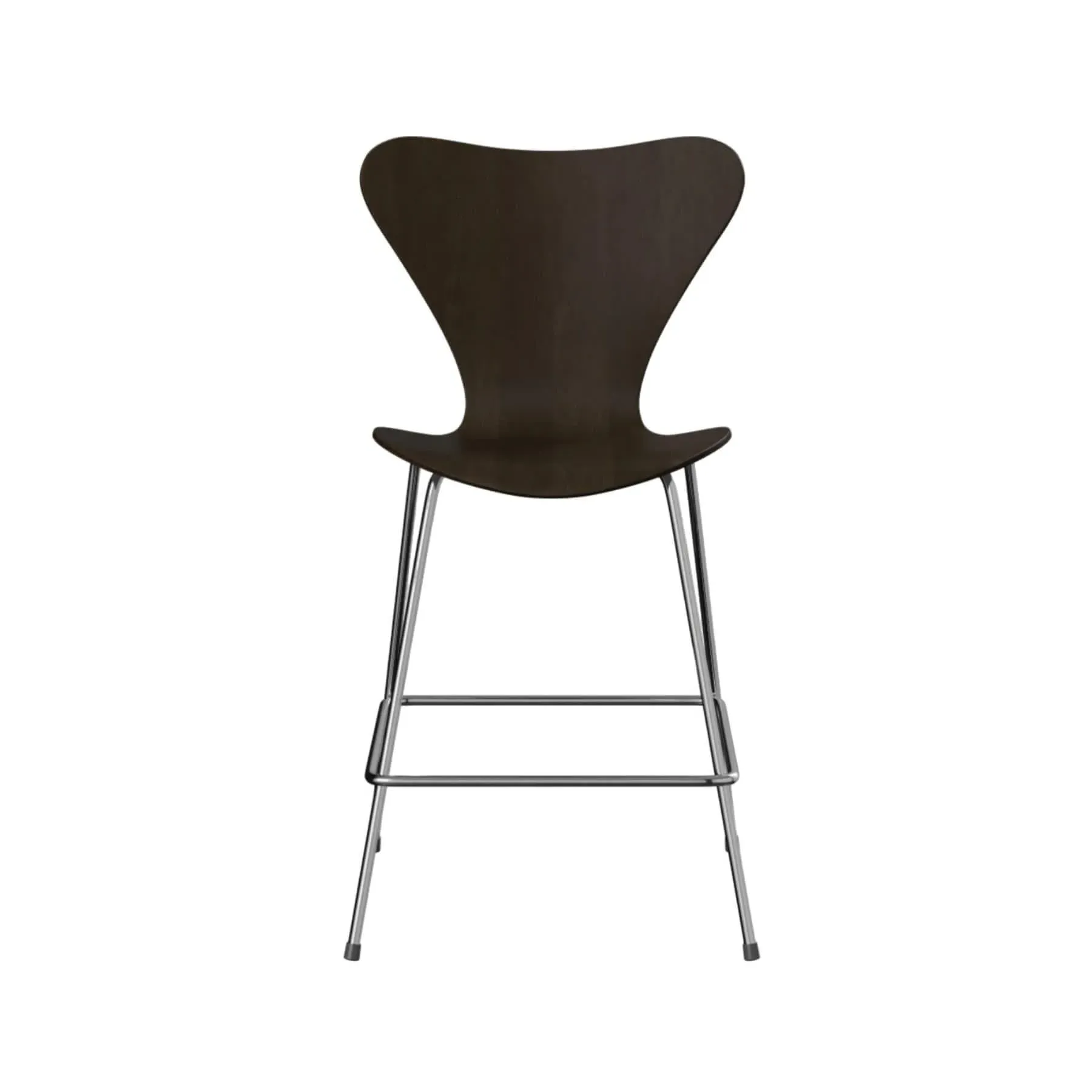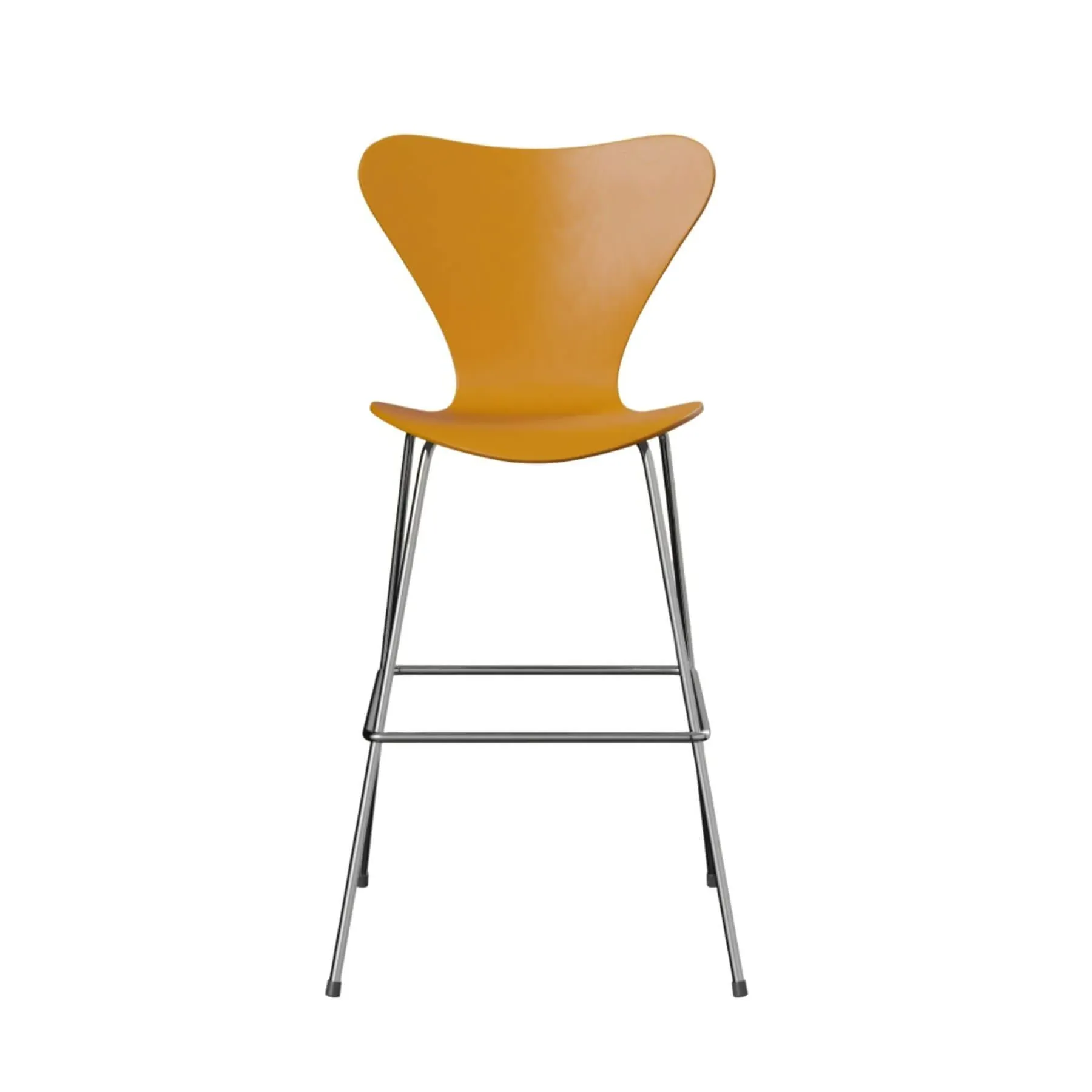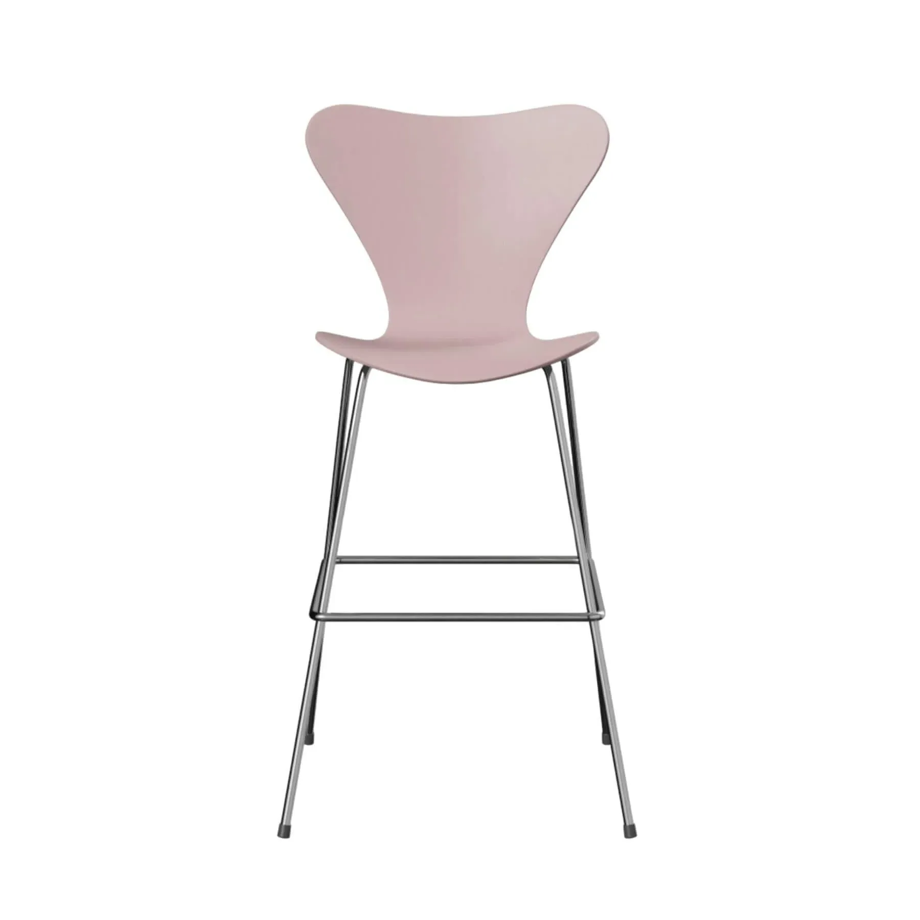 Explore the epitome of elegance and functionality with the Series 7 Bar Stool by Fritz Hansen. Pay homage to the iconic Series 7™ chair, as this barstool redefines contemporary design with its timeless allure. Crafted by visionary Arne Jacobsen in 1955, the chair''s unique shape seamlessly blends character and subtlety, making it a versatile addition to any space. Immerse yourself in the allure of a design that has withstood the test of time, bringing a touch of sophistication to your surroundings. Meticulously crafted from 9 layers of pressure-moulded veneer, the Series 7 Bar Stool embodies strength, flexibility, and durability while maintaining a slender and chic form. This exceptional construction not only pays homage to its mid-century roots but also ensures a product that stands the test of time. The four-sided footrest in tubular steel, ingeniously fixed to the extended legs, preserves the visual harmony of the chair''s clean and simple construction, elevating the overall aesthetic appeal. Unveiled in 2005 to commemorate the 50th anniversary of the Series 7 design, this barstool seamlessly combines heritage and modernity. Step into a world of sophistication and refinement with the Series 7 Bar Stool – a masterpiece within Fritz Hansen''s chair collection. Beyond being a mere piece of furniture, it represents a design legacy that continues to captivate discerning enthusiasts. Imbue your space with the enduring charm of this barstool, where classic design meets contemporary living, creating an ambiance that resonates with style and timelessness. Elevate your surroundings with a touch of iconic elegance embodied in every curve and detail of the Series 7 Bar Stool by Fritz Hansen.
