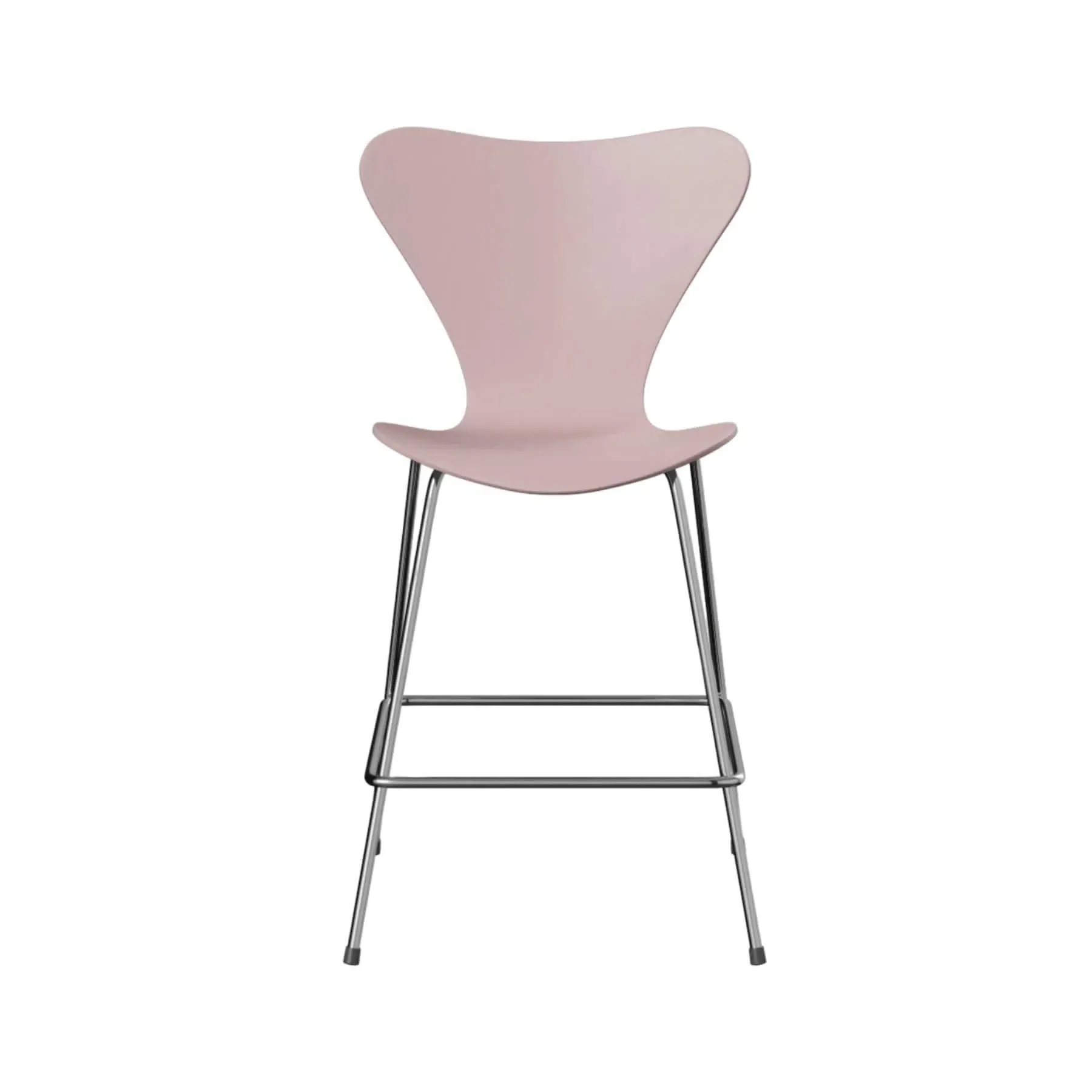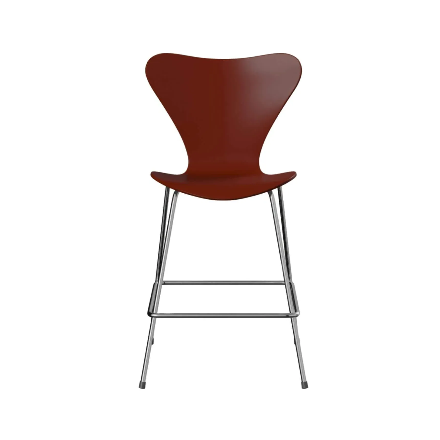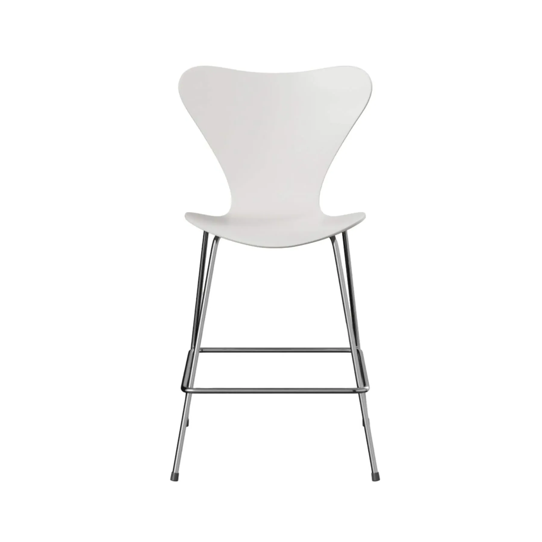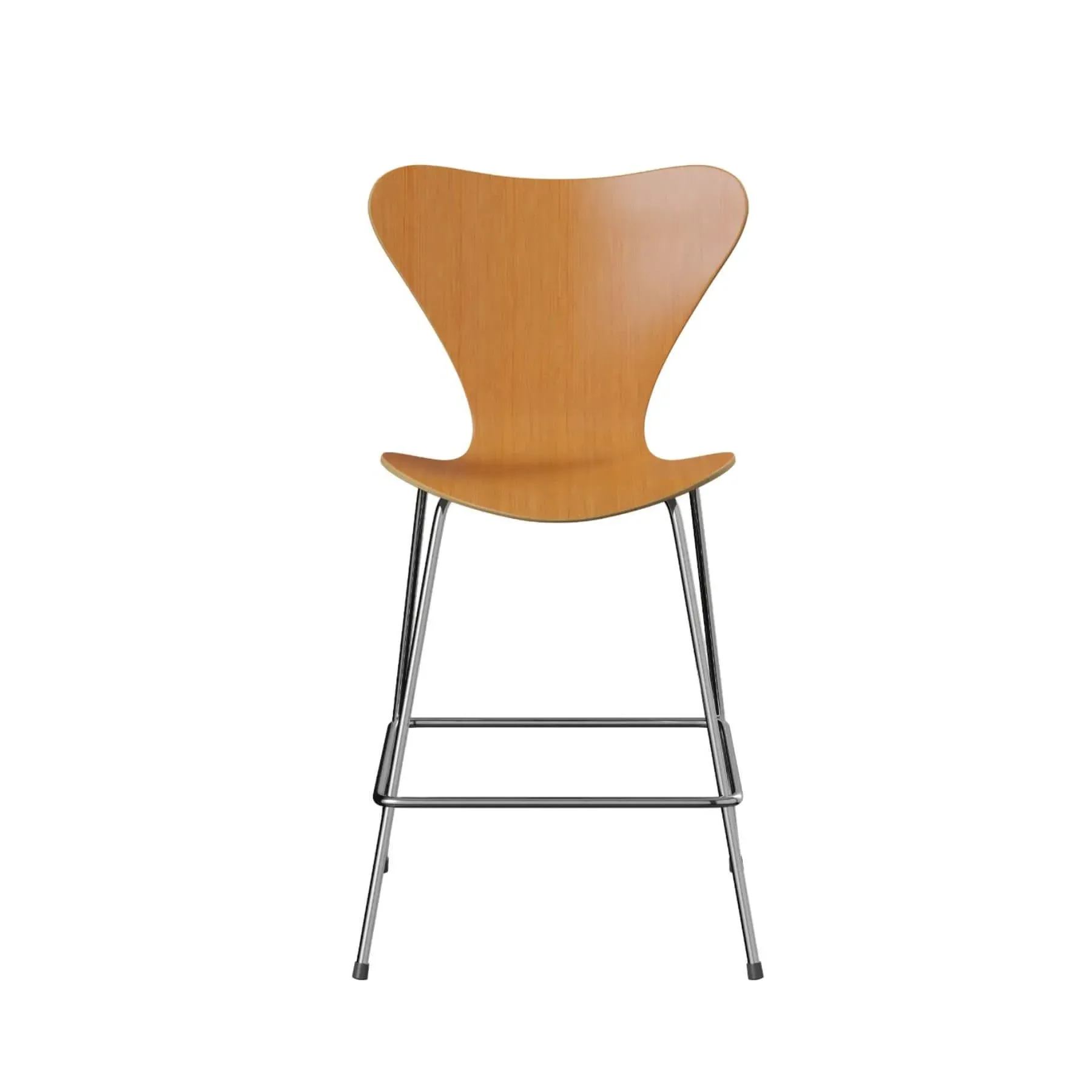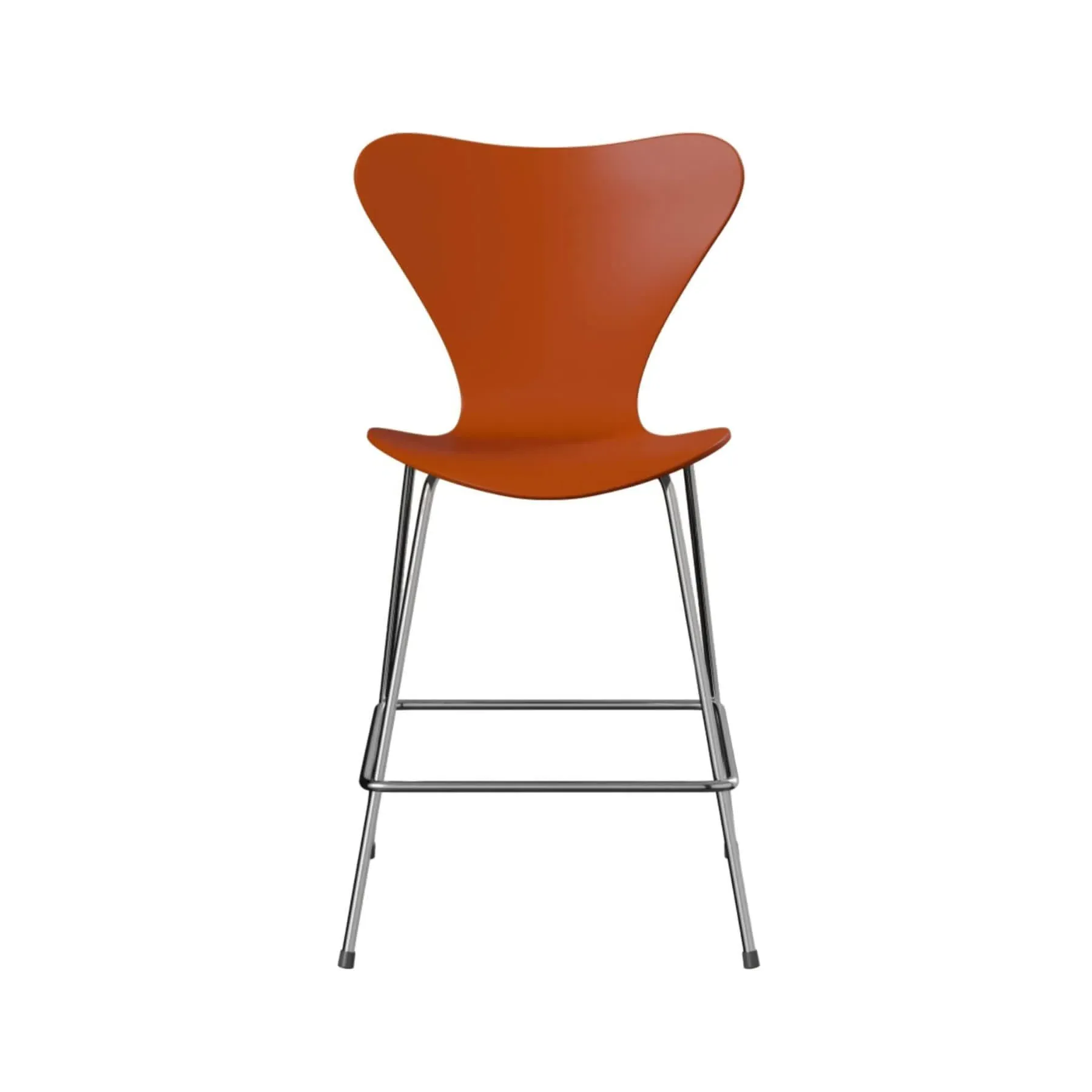 Explore the epitome of elegance and functionality with the Series 7 Bar Stool by Fritz Hansen. Pay homage to the iconic Series 7™ chair, as this barstool redefines contemporary design with its timeless allure. Crafted by visionary Arne Jacobsen in 1955, the chair''s unique shape seamlessly blends character and subtlety, making it a versatile addition to any space. Immerse yourself in the allure of a design that has withstood the test of time, bringing a touch of sophistication to your surroundings. Meticulously crafted from 9 layers of pressure-moulded veneer, the Series 7 Bar Stool embodies strength, flexibility, and durability while maintaining a slender and chic form. This exceptional construction not only pays homage to its mid-century roots but also ensures a product that stands the test of time. The four-sided footrest in tubular steel, ingeniously fixed to the extended legs, preserves the visual harmony of the chair''s clean and simple construction, elevating the overall aesthetic appeal. Unveiled in 2005 to commemorate the 50th anniversary of the Series 7 design, this barstool seamlessly combines heritage and modernity. Step into a world of sophistication and refinement with the Series 7 Bar Stool – a masterpiece within Fritz Hansen''s chair collection. Beyond being a mere piece of furniture, it represents a design legacy that continues to captivate discerning enthusiasts. Imbue your space with the enduring charm of this barstool, where classic design meets contemporary living, creating an ambiance that resonates with style and timelessness. Elevate your surroundings with a touch of iconic elegance embodied in every curve and detail of the Series 7 Bar Stool by Fritz Hansen.