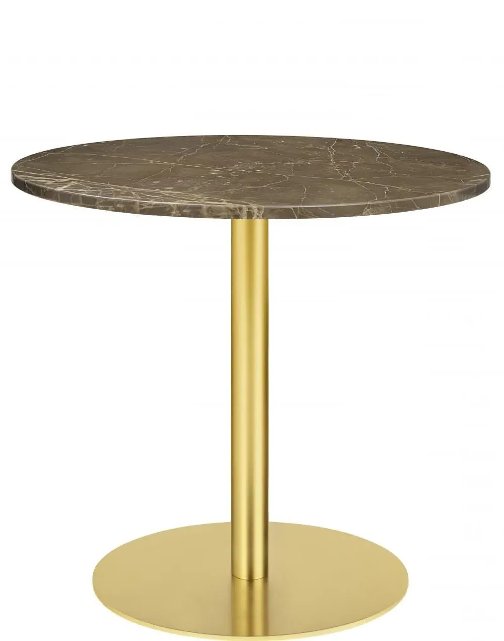 Characterised by light aesthetics, the GUBI 1.0 table - round - marble – 60 has a simple profile and versatile design. The table’s stunning round marble tabletop is supported by a slender yet sturdy central column and circular base, designed in smaller proportions to encourage interaction and intimate conversation. Modern and minimalist, the GUBI 1.0 table – round is ideal for smaller kitchens, dining rooms and living spaces in contemporary homes. Available as a lounge, bar or dining table with a black or brass base and four marble finishes.