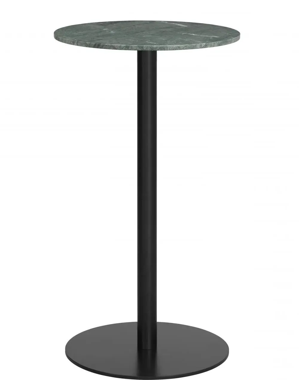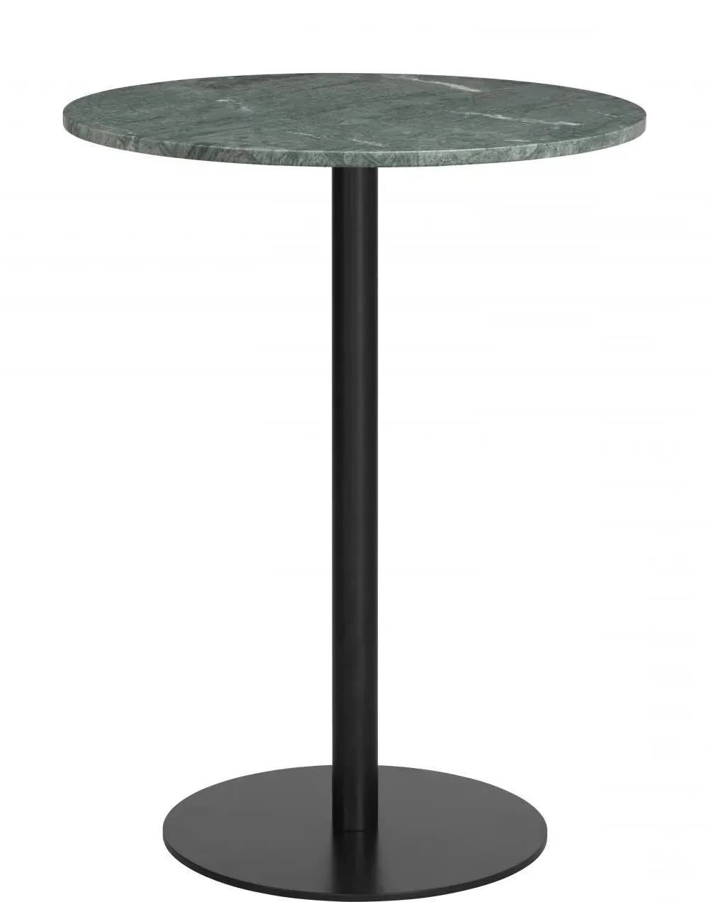 The bar table combines modern design with its round marble tabletop, supported by a slender central column and circular base. Its elevated height suits bar-style dining, while the brown marble surface adds natural warmth. The sturdy construction provides lasting stability, and the black base ensures reliable support.