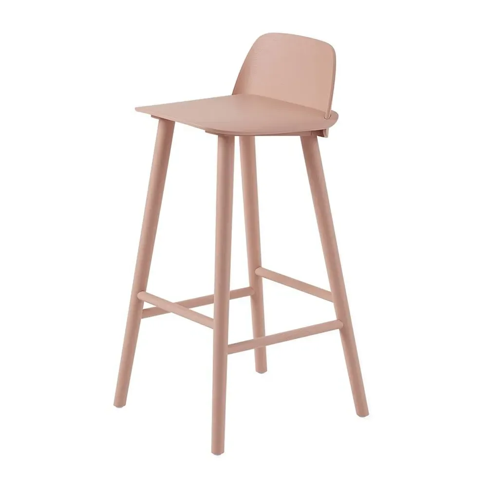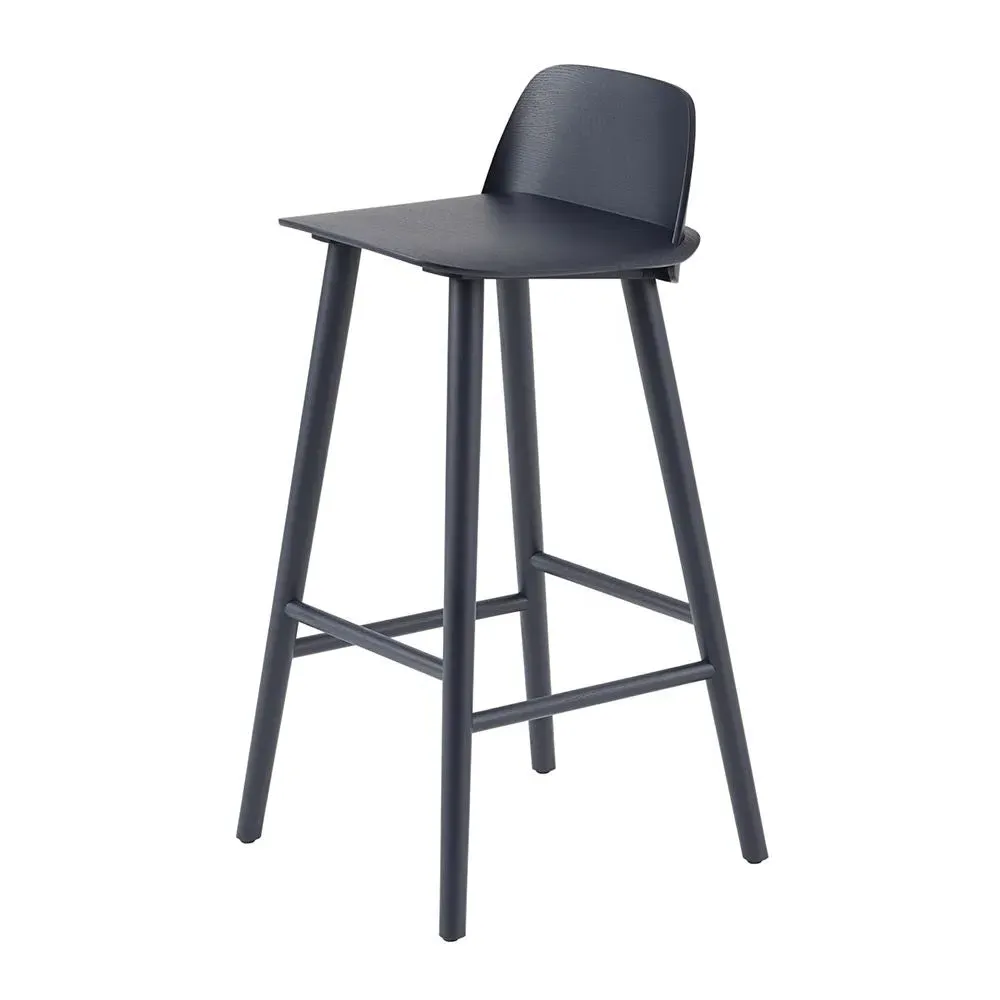The Nerd Bar Stool combines wooden construction with Scandinavian design, featuring an integrated back and seat for ergonomic comfort. Its ash material provides durability and natural appeal, while the rendered wood construction ensures lasting quality. The stool's unique shape suits both residential and commercial spaces, with its 75cm seat height accommodating standard bar counters.