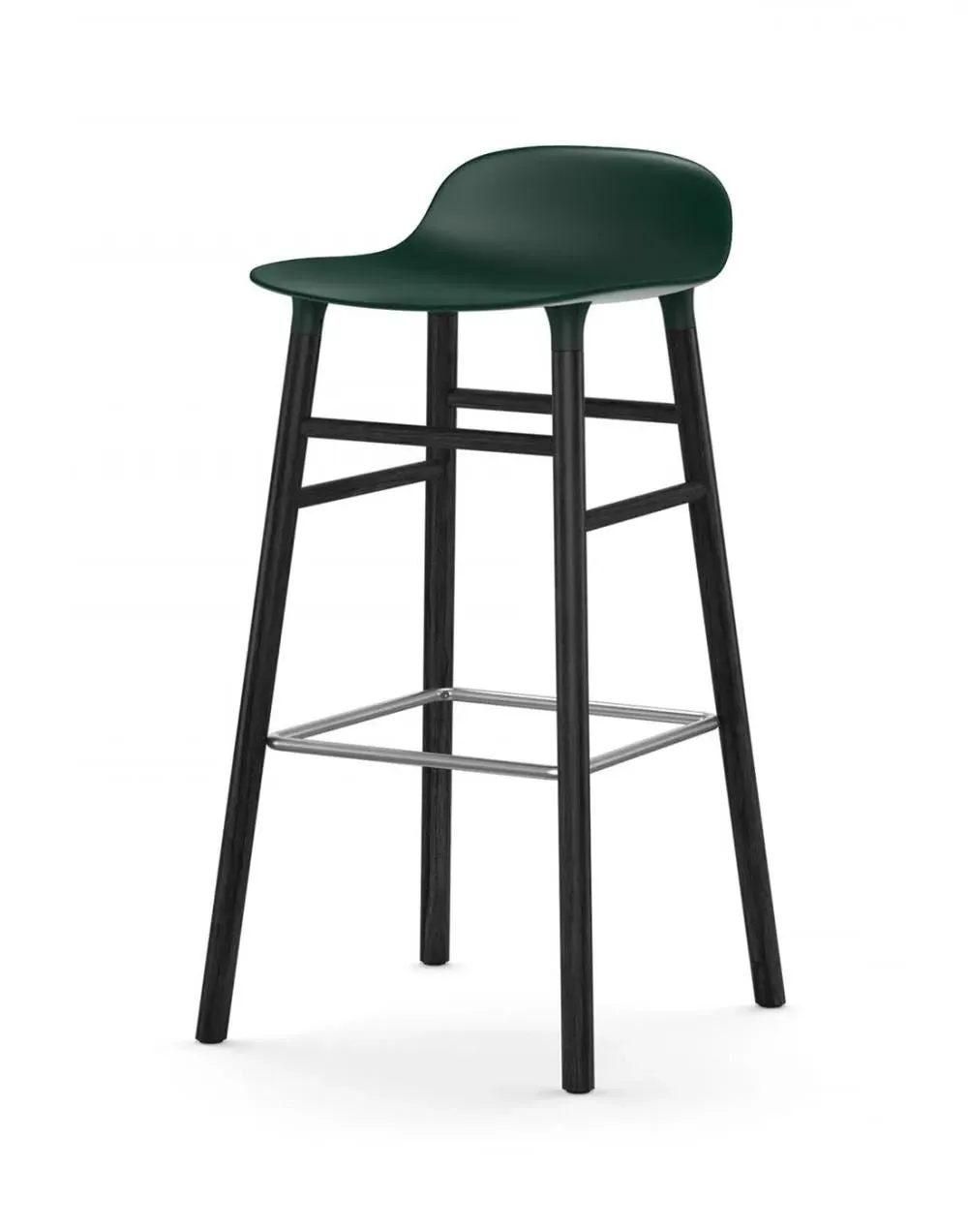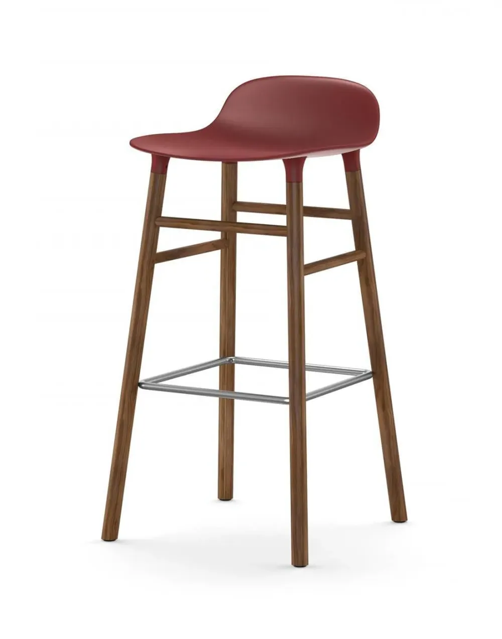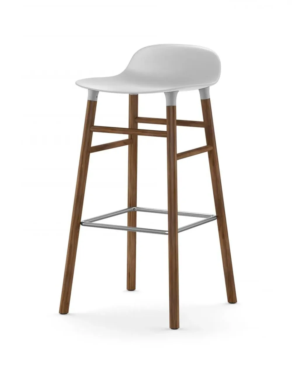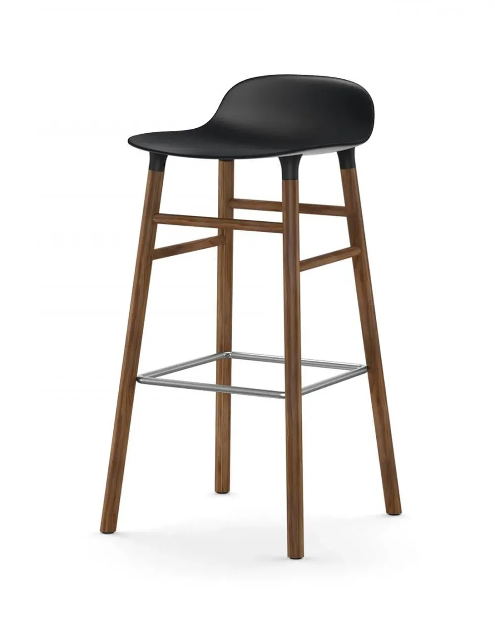 The main idea behind Form was to create a shell chair with a more unified look that would stand as one cohesive unit, created by Simon Legald for Normann Copenhagen. To achieve this seamless, integrated look, a new and innovative solution for gathering the seat with the legs has been developed. Using high quality craftmanship for both the molded plastic seat and elegent legs, the Form barstool is available in a range of beautiful colours for the seat option and three options for the legs: oak, black and walnut. Combining quality craftmanship and the simplicity of Scandinavian furniture design. The strong materials and contoured shape ensures a comfortable seating experience. Combined with a clean design that makes Form a flexible and functional barstool for either a home or professional environment.