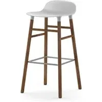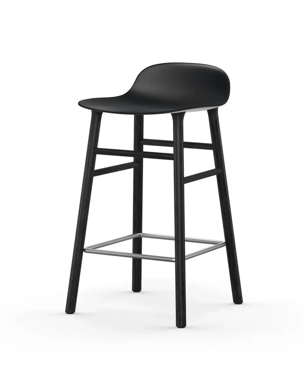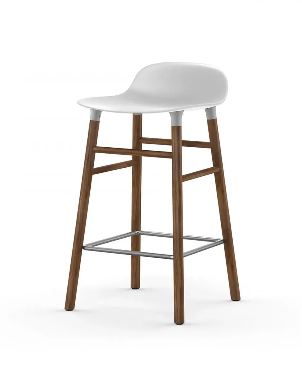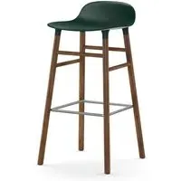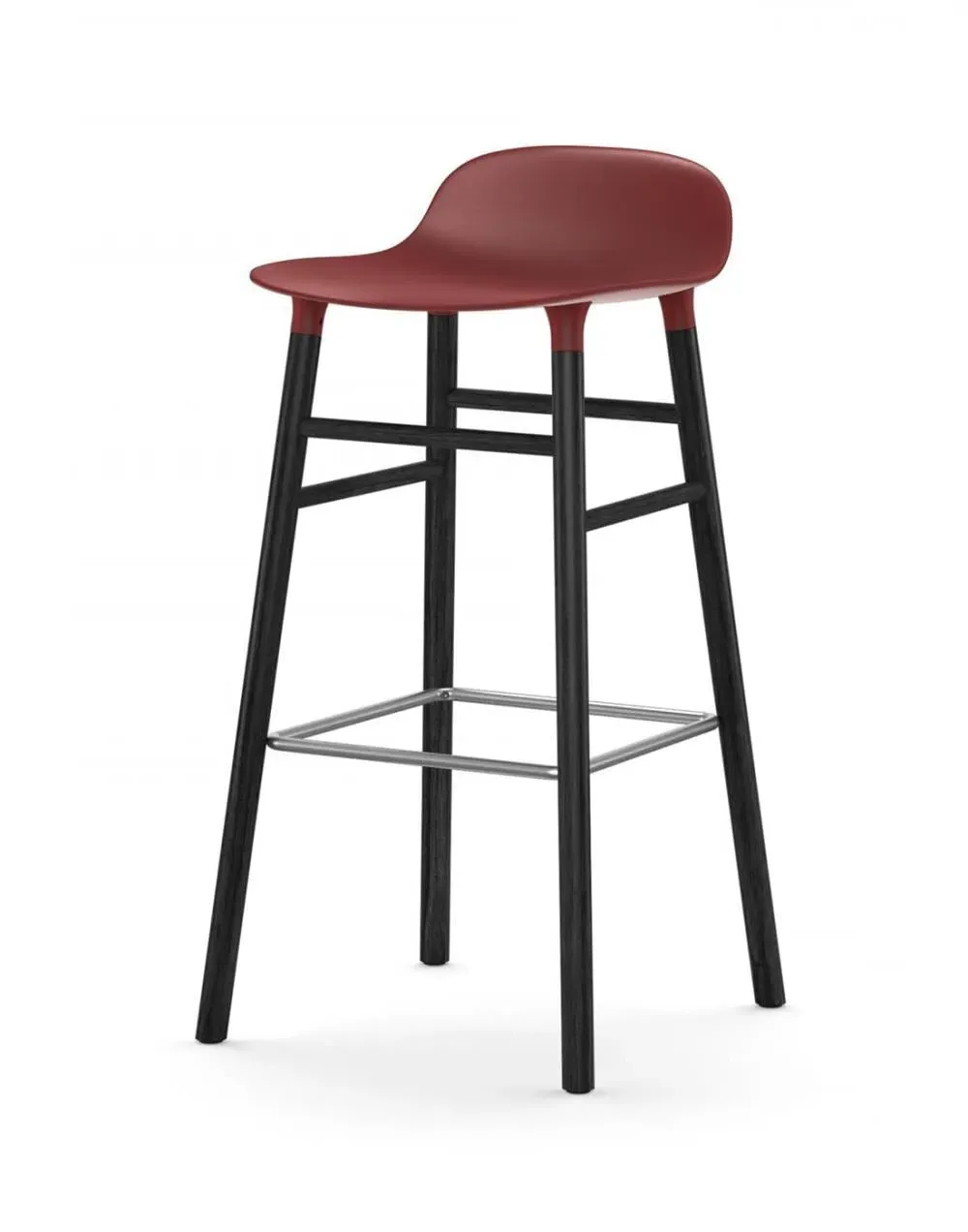 The main idea behind Form was to create a shell chair with a more unified look that would stand as one cohesive unit, created by Simon Legald for Normann Copenhagen. To achieve this seamless, integrated look, a new and innovative solution for gathering the seat with the legs has been developed. Using high quality craftmanship for both the molded plastic seat and elegent legs, the Form barstool is available in a range of beautiful colours for the seat option and three options for the legs: oak, black and walnut. Combining quality craftmanship and the simplicity of Scandinavian furniture design. The strong materials and contoured shape ensures a comfortable seating experience. Combined with a clean design that makes Form a flexible and functional barstool for either a home or professional environment.