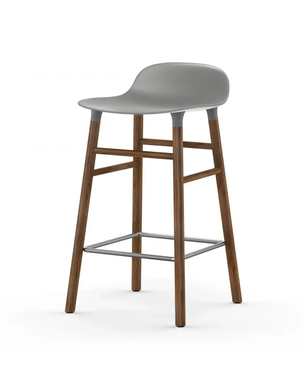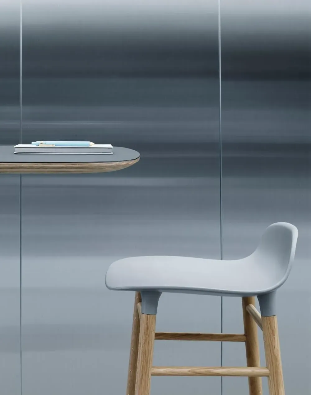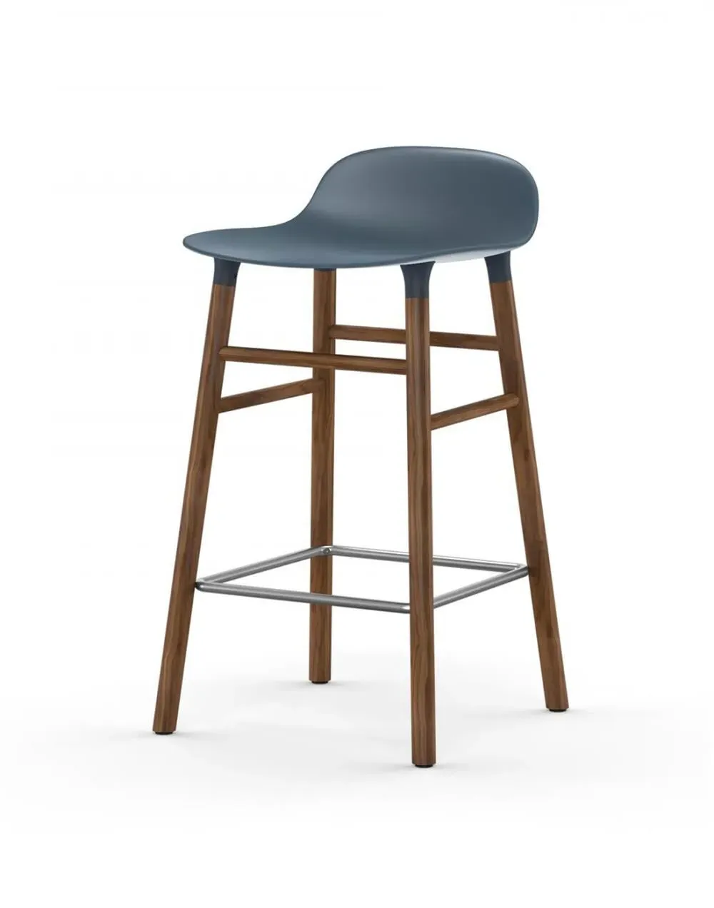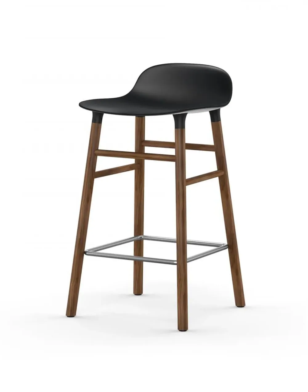 The main idea behind Form was to create a shell chair with a more unified look that would stand as one cohesive unit, created by Simon Legald for Normann Copenhagen. To achieve this seamless, integrated look, a new and innovative solution for gathering the seat with the legs has been developed. Using high quality craftmanship for both the molded plastic seat and elegent legs, the Form barstool is available in a range of beautiful colours for the seat option and three options for the legs: oak, black and walnut. Combining quality craftmanship and the simplicity of Scandinavian furniture design. The strong materials and contoured shape ensures a comfortable seating experience. Combined with a clean design that makes Form a flexible and functional barstool for either a home or professional environment.