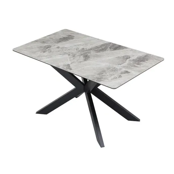 The dining set combines a ceramic effect table top with velvet upholstered corner benches, creating a sophisticated dining arrangement. Its diamond stitching detail adds texture to the plush velvet seating, while the black powder-coated metal legs provide sturdy support. The corner bench design maximizes seating capacity and encourages conversation during meals.
