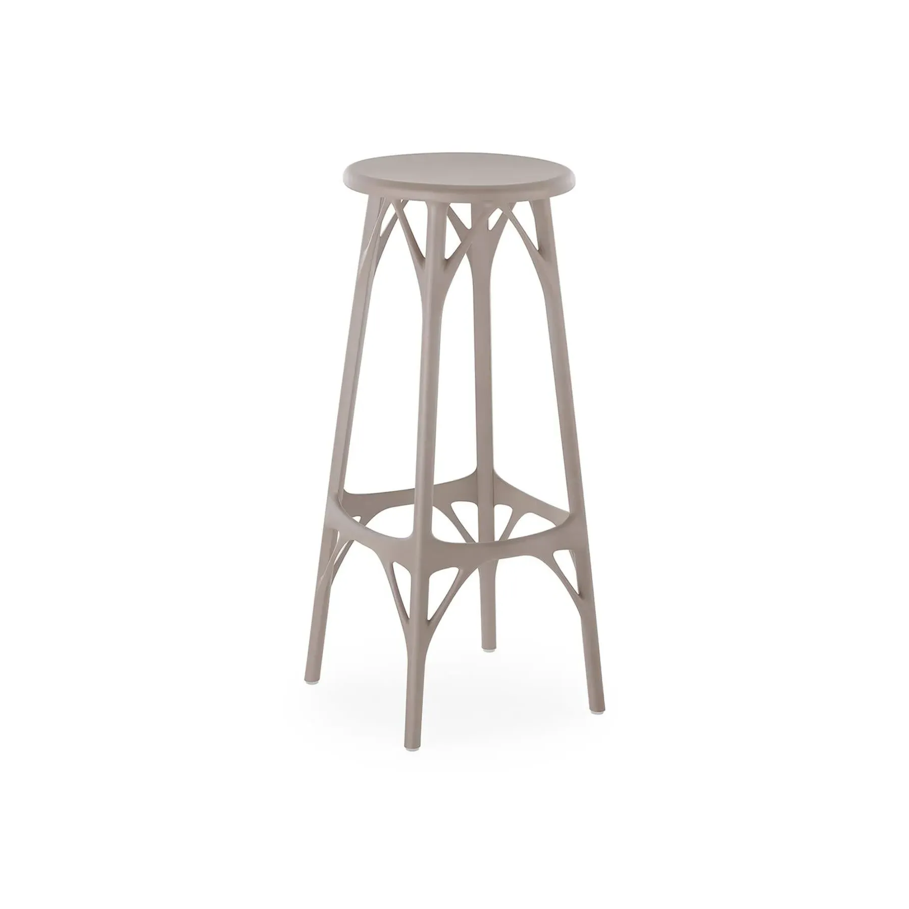 The Bar Stool combines artificial intelligence design with sustainable materials, crafted from recycled thermoplastic production offcuts. Its injection-molded construction features seamless curves without joints or screws, while the wide seat provides comfortable seating. The AI-optimized structure maximizes stability and durability with minimal material usage, and the weather-resistant design suits both indoor and outdoor use.
