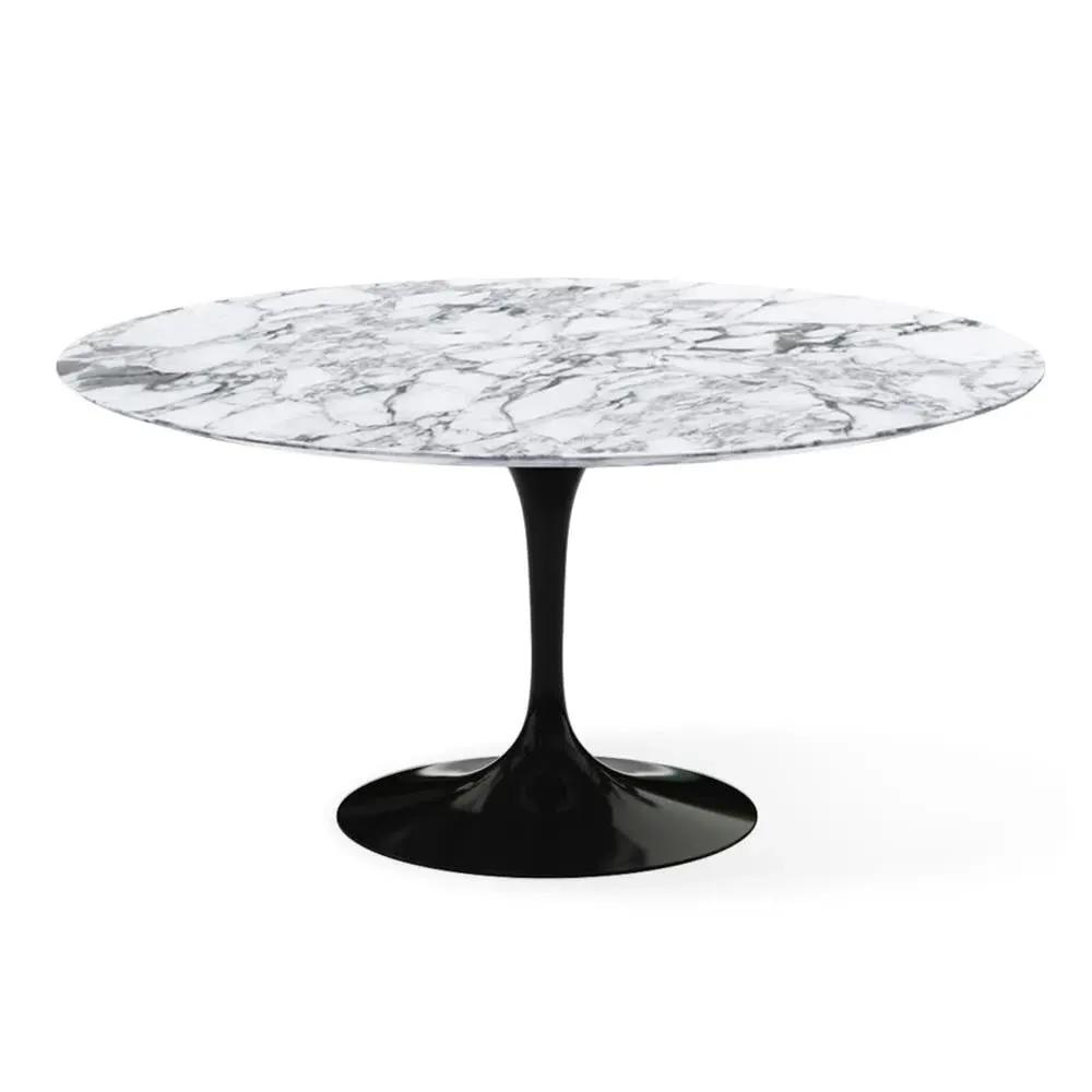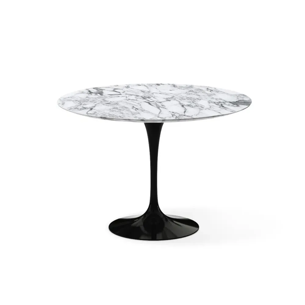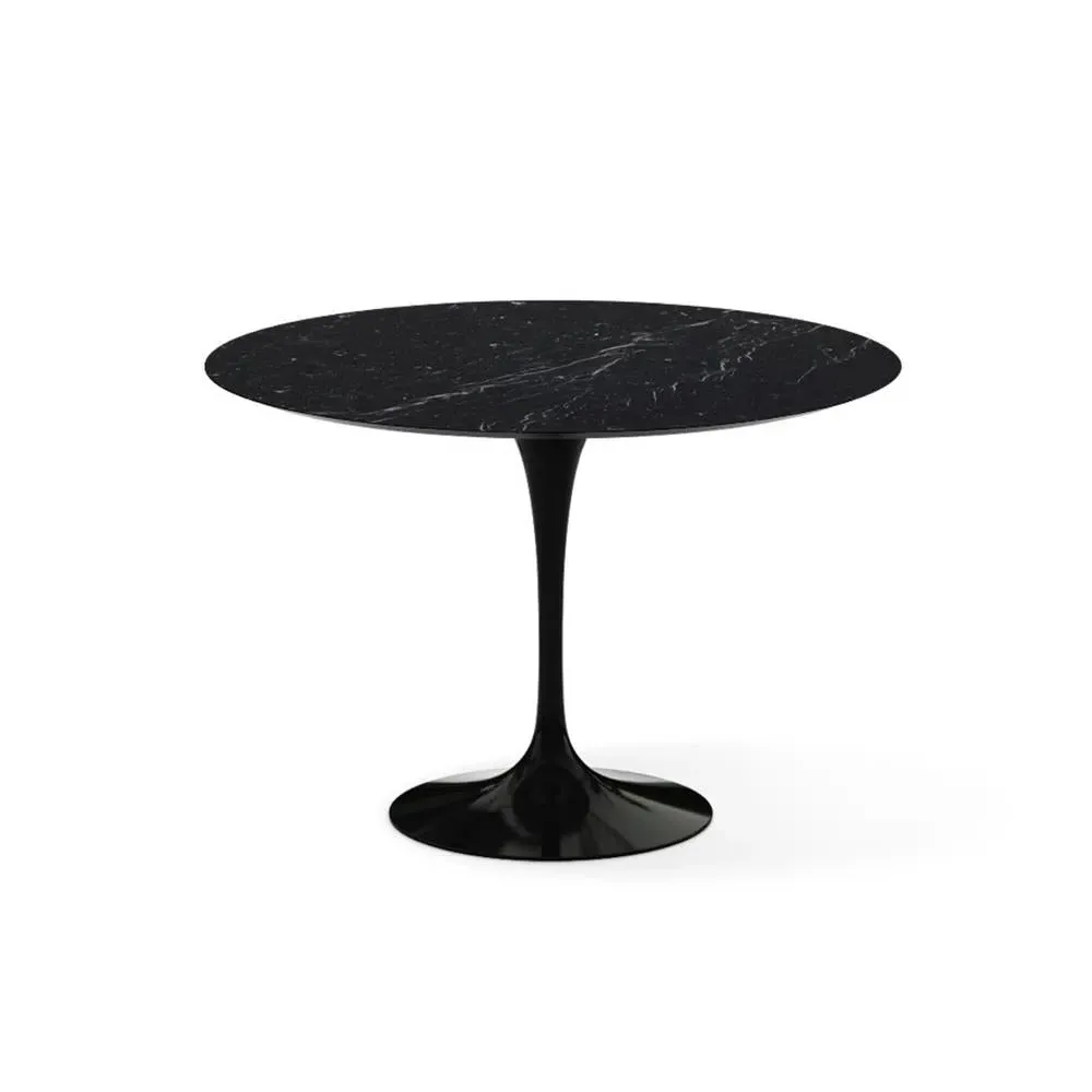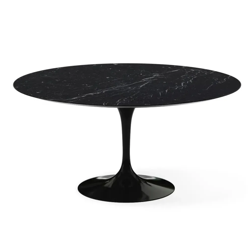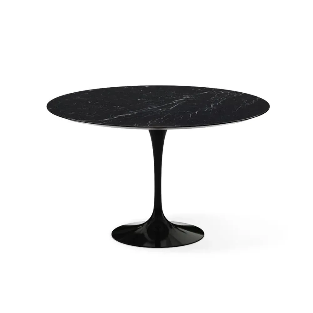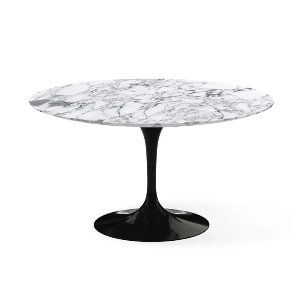 Experience timeless sophistication with the Saarinen Dining Table by Knoll. Designed by Eero Saarinen, this modern classic features a luxurious marble top, available in striking white with grey veins or dramatic black with white veins. The round tabletop, meticulously crafted from high-quality marble, exudes elegance and charm, making it a focal point in any dining space. Each piece of marble boasts unique veining patterns, ensuring no two tables are alike, adding a touch of exclusivity to your home. Supported by the iconic pedestal base, the table strikes a perfect balance between form and function. Its sculptural silhouette lends a sense of grace and stability, while seamlessly blending with various interior styles, from contemporary to traditional. Whether hosting intimate dinners or entertaining guests, the Saarinen Dining Table provides a stunning backdrop for memorable gatherings. Elevate your dining experience with this exquisite piece of design history, promising enduring beauty and sophistication for years to come. Small: 3 peopleMedium: 4-5 peopleLarge: 5-6 peopleXL: 6 peopleXXL: 7-8 people