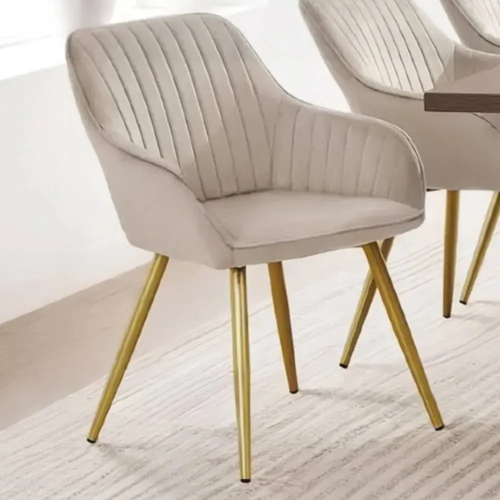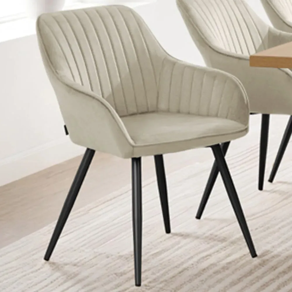 The Marilyn dining chair combines comfort with its quilted velvet upholstery and continuous backrest design. High-density foam padding provides supportive seating, while the ergonomic contours adapt to any body shape for extended comfort. Steel legs offer robust durability and high load capacity, featuring non-slip plastic feet that ensure stability on any surface.