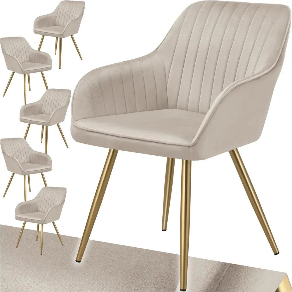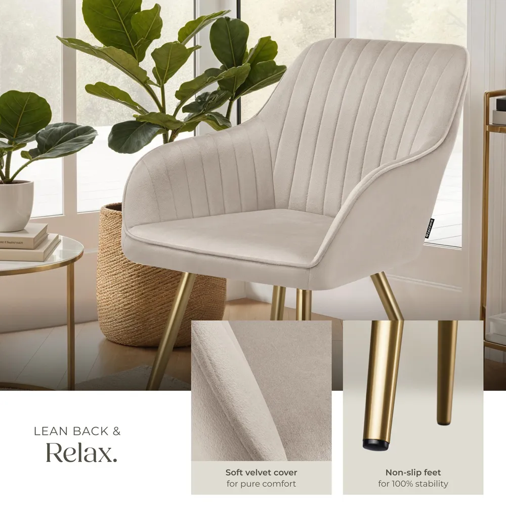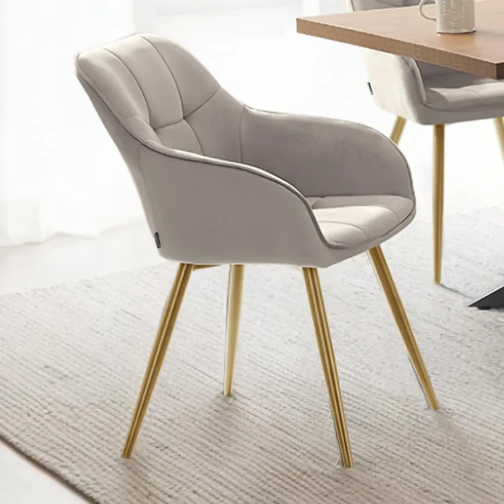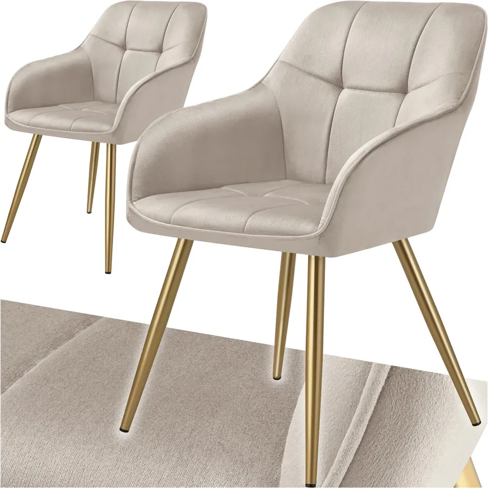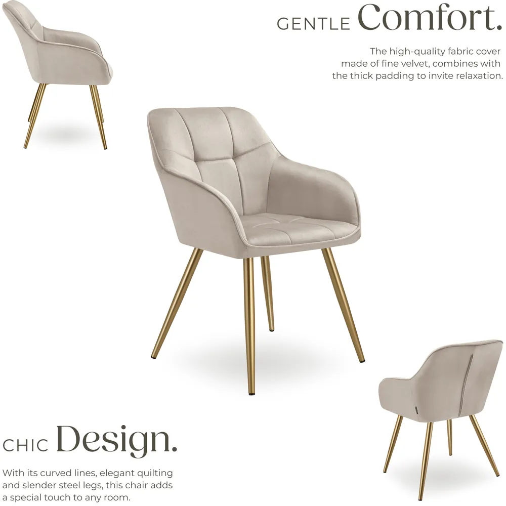 The dining chair Marilyn by tectake combines first-class comfort with a stylish look. With its soft velvet cover and subtle quilted pattern, it provides an exceptionally soft feel and is guaranteed to be the highlight in any dining room. Thanks to its thoughtful, ergonomic design, the chair adapts to any body shape. The continuous arm and backrest, which surrounds the generous seat, offers you excellent support, while the padding made of high-density foam, creates a comfortable seating experience. This makes even long stays at the table a pleasure. The slim steel legs of the dining chair are not only aesthetically pleasing but also extremely robust and durable. This makes the piece of furniture exceptionally stable and offers a high load capacity. The floor-friendly and non-slip feet ensure stability on any surface. Upgrade your dining room with a luxurious dining chair that blends style and comfort. This upholstered chair, crafted in soft velvet fabric, adds a modern touch to your home furniture. Perfect for pairing with any table or as part of new dining sets, it stands out in any room. Versatile enough to complement other chairs, stools, or decor, this chair is the ideal choice to elevate your room with both function and sophistication. The chair is also easy to assemble and requires minimal maintenance. Whether in the dining room, in the kitchen or as a stylish piece of furniture in the living area: this upholstered chair fits seamlessly into any environment. Discover the dining chair Marilyn by tectake and add a unique touch to your home!