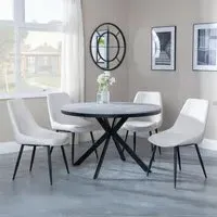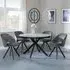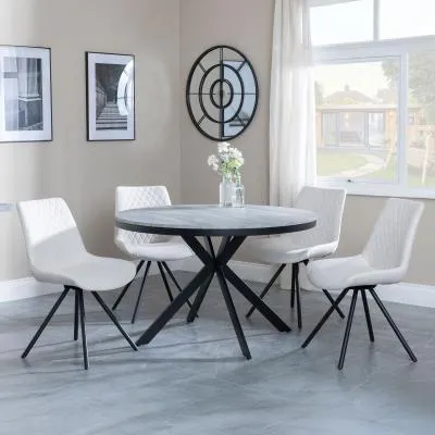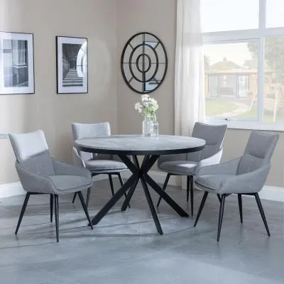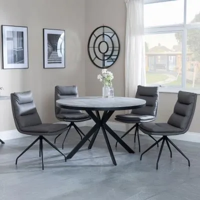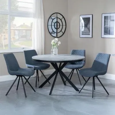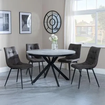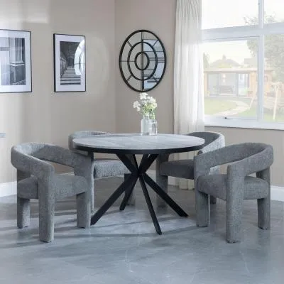 Ezra Grey 4 Seater Round Dining Set with Spider Legs - 4 Corona Light Grey Fabric Dining Chair: Transform your dining space with this stylish and contemporary set from Urban Deco's Ezra Grey collection. This stunning ensemble combines a sleek round dining table featuring a concrete-effect top with modern spider legs, perfectly complemented by four Corona light grey fabric dining chairs. The table, measuring W 120cm x D 120cm x H 76cm, boasts a durable MDF construction with a sophisticated grey and black finish, creating a focal point in any room. The accompanying chairs (W 44cm x D 61cm x H 88cm) offer both comfort and elegance with their plush fabric upholstery and sturdy design. This versatile set seamlessly blends industrial chic with contemporary aesthetics, making it ideal for various interior styles. Whether you're hosting casual dinners or casual family meals, this Urban Deco Ezra Grey dining set promises to enhance your dining experience with its striking appearance and functional design. The combination of materials and textures adds depth and interest to your space, while the compact size ensures it fits comfortably in most dining areas. Upgrade your home with this eye-catching dining set that marries style, durability, and comfort in one cohesive package. However you may find different names used in each store for Ezra Grey 4 Seater Round Dining Set with Spider Legs - 4 Corona Light Grey Fabric Dining Chair & can be found under the name as Sawyer Grey 4 Seater Round Dining Set with Spider Legs - 4 Corona Light Grey Fabric Dining Chair. Best furniture shop in Leicester,Leicestershire,East Midlands Selling. Deals. Black Friday Furniture Sale, Black Friday Dining Sets Sale Best furniture shop in Leicester,Leicestershire,East Midlands Selling. Deals. Black Friday Furniture Sale, Black Friday Round Dining Sets Sale Best furniture shop in Leicester,Leicestershire,East Midlands Selling. Deals. Black Friday Furniture Sale,Black Friday Sale Best furniture shop in Leicester,Leicestershire,East Midlands Selling. Deals. Black Friday Furniture Sale,Black Friday Dining Sets Sale Best furniture shop in Leicester,Leicestershire,East Midlands Selling. Deals. Black Friday Furniture Sale,Black Friday Dining Sets Sale Best furniture shop in Leicester,Leicestershire,East Midlands Selling. Deals. Black Friday Furniture Sale,Black Friday Dining Sets Sale Best furniture shop in Leicester,Leicestershire,East Midlands Selling. Deals. Black Friday Furniture Sale,Black Friday Dining Sets Sale Best furniture shop in Leicester,Leicestershire,East Midlands Selling. Deals. Black Friday Furniture Sale,Black Friday Dining Sets Sale