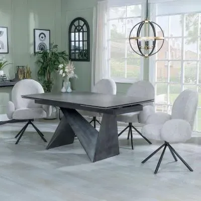 Garvin Extending Dining Set with Swivel Chairs - Grey, Ceramic