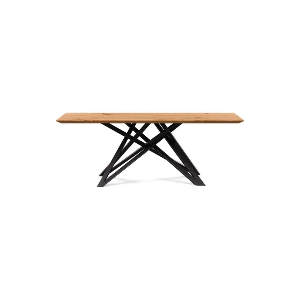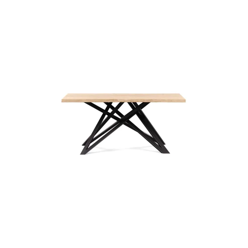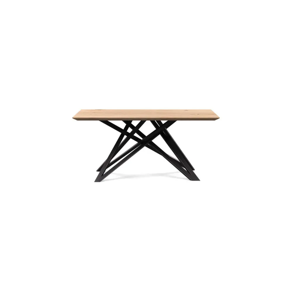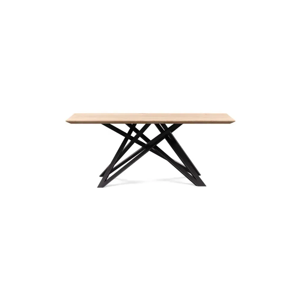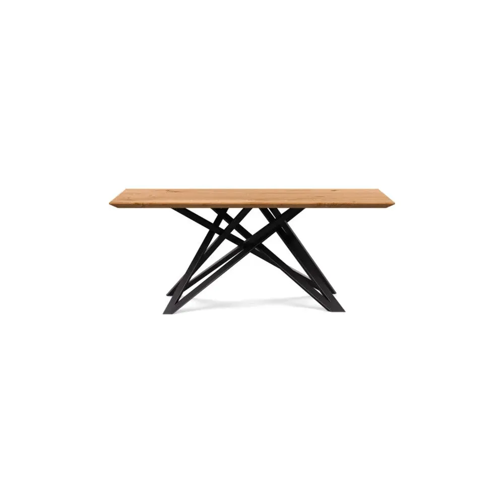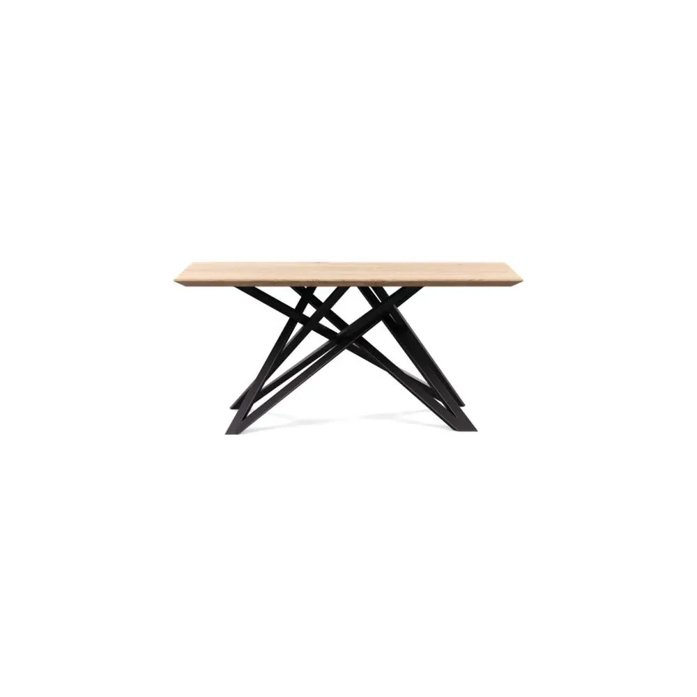 The dining table offers refined craftsmanship with its white oiled oak finish, featuring a distinctive straight edge design. Its filled grain construction provides a smooth surface, while the solid wood construction ensures lasting durability. The substantial build accommodates generous seating arrangements, and the oiled finish protects against daily wear. W160 x D90 cm.