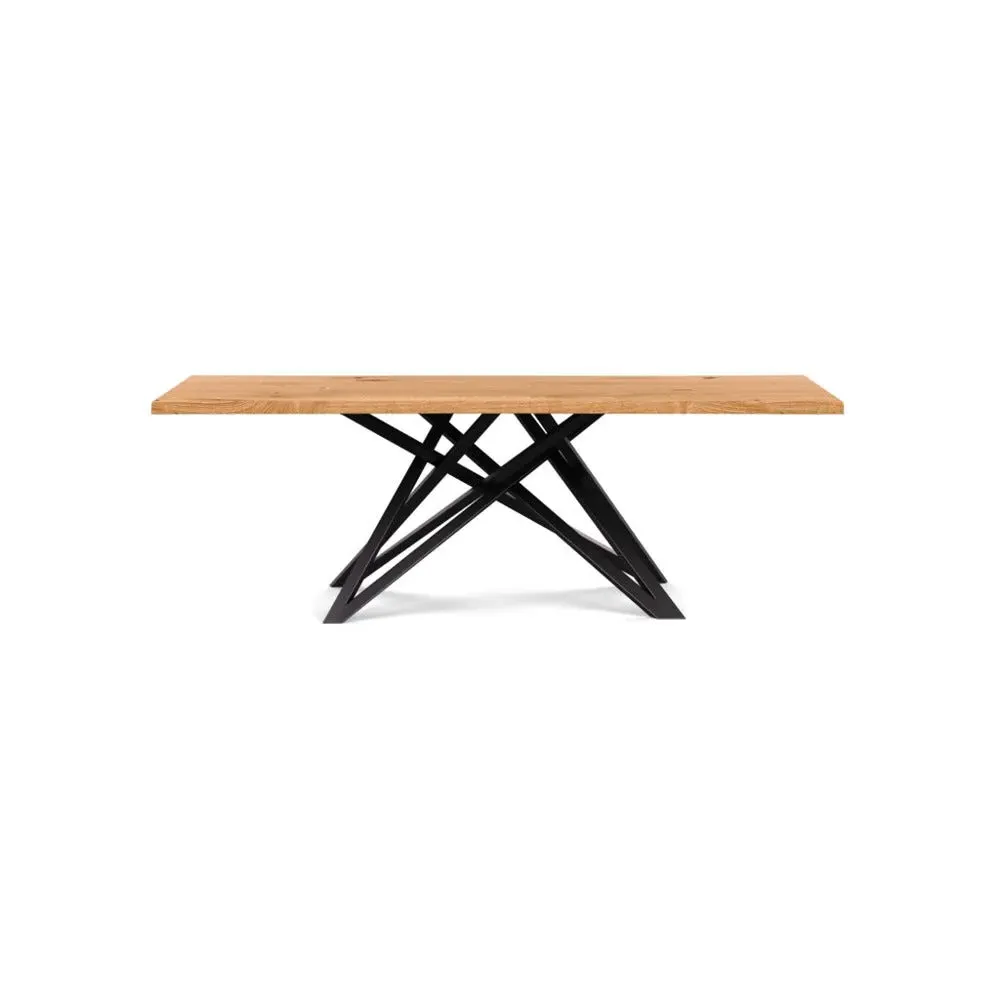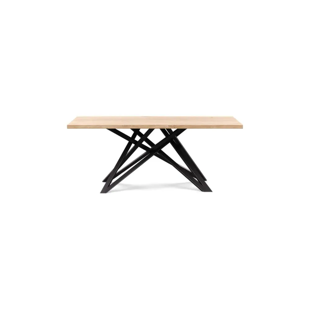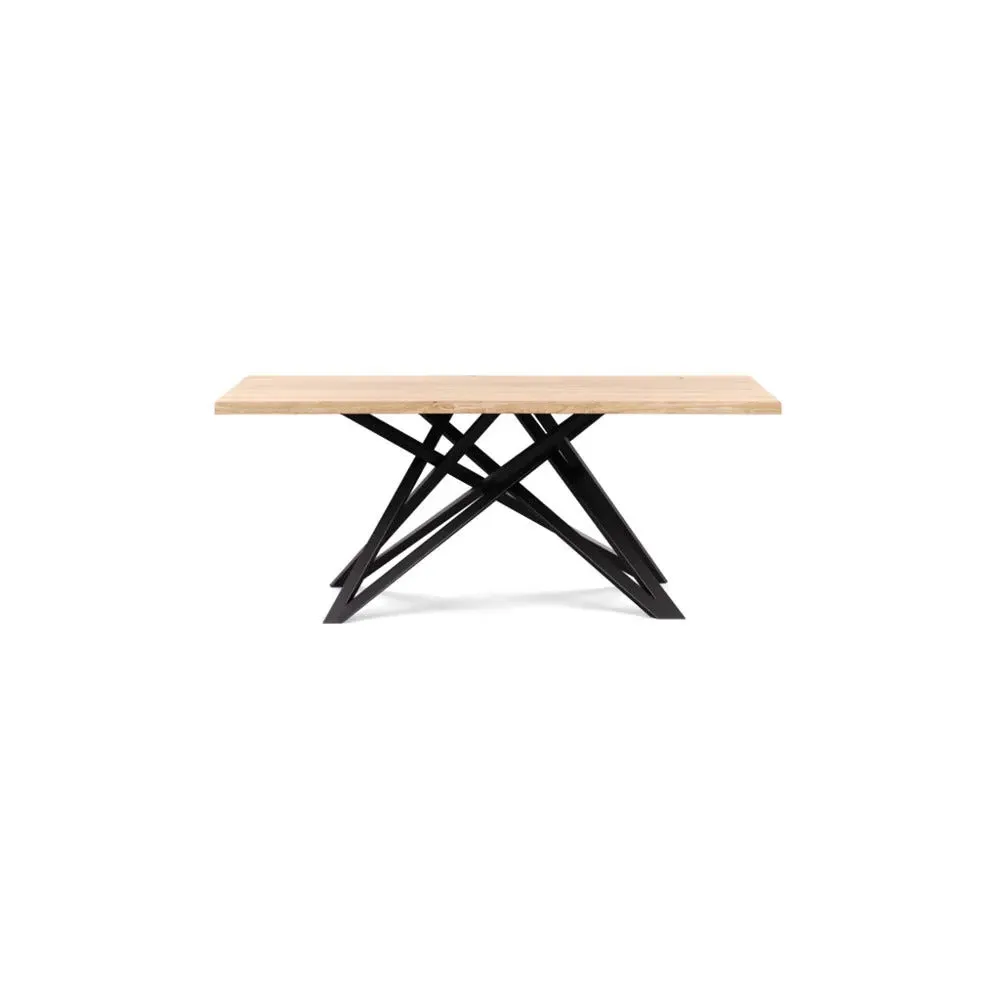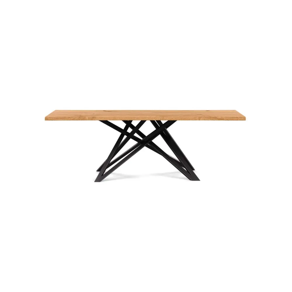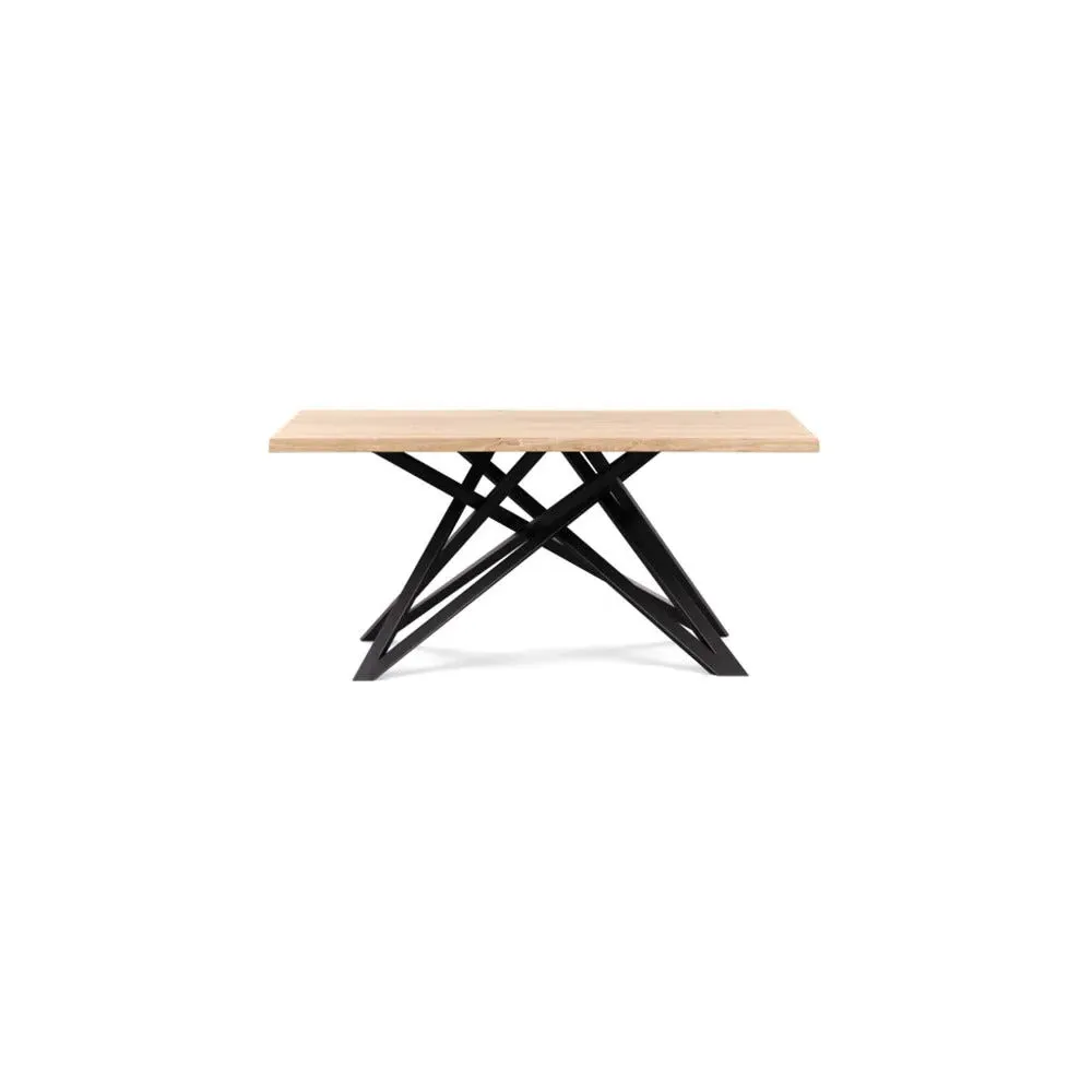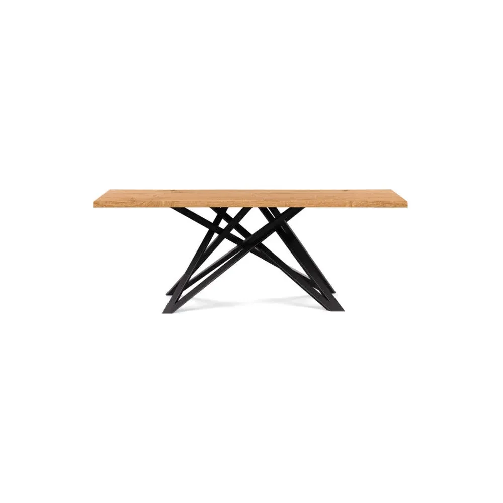 The dining table offers refined craftsmanship with its white oiled oak finish, featuring a distinctive straight edge design. Its filled grain construction provides a smooth surface, while the solid wood construction ensures lasting durability. The substantial build accommodates generous seating arrangements, and the oiled finish protects against daily wear. W160 x D90 cm.