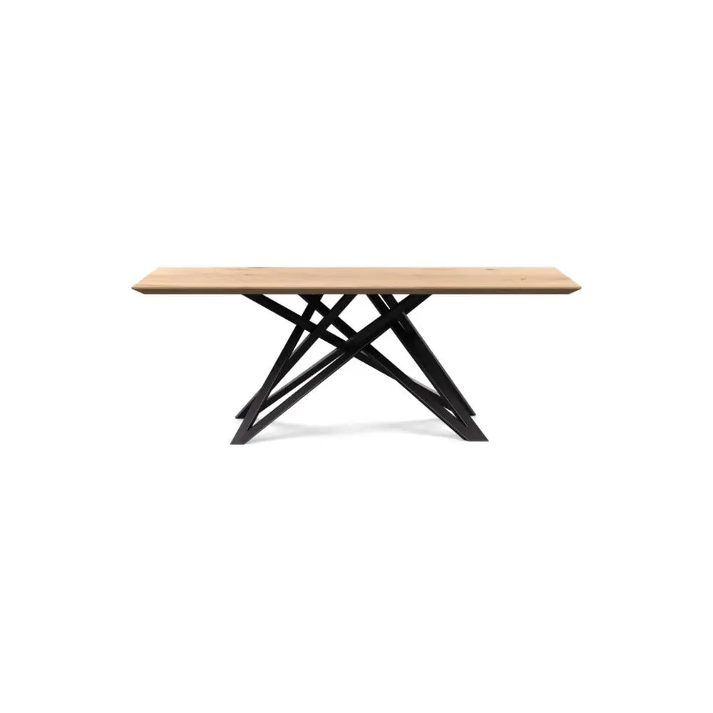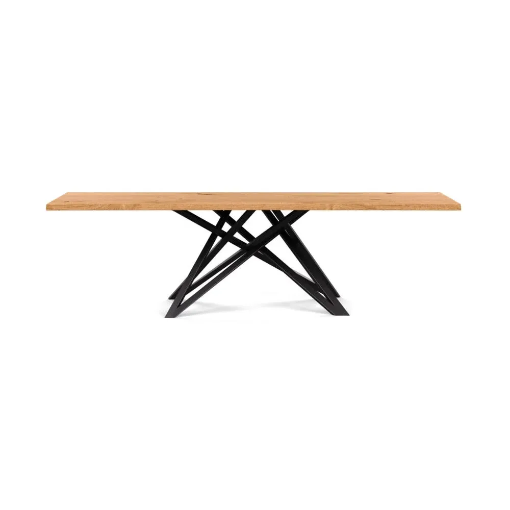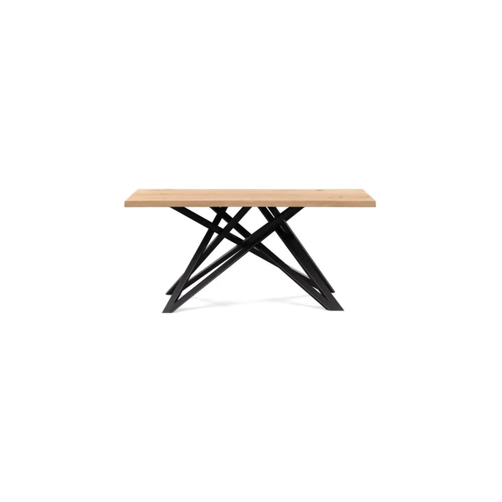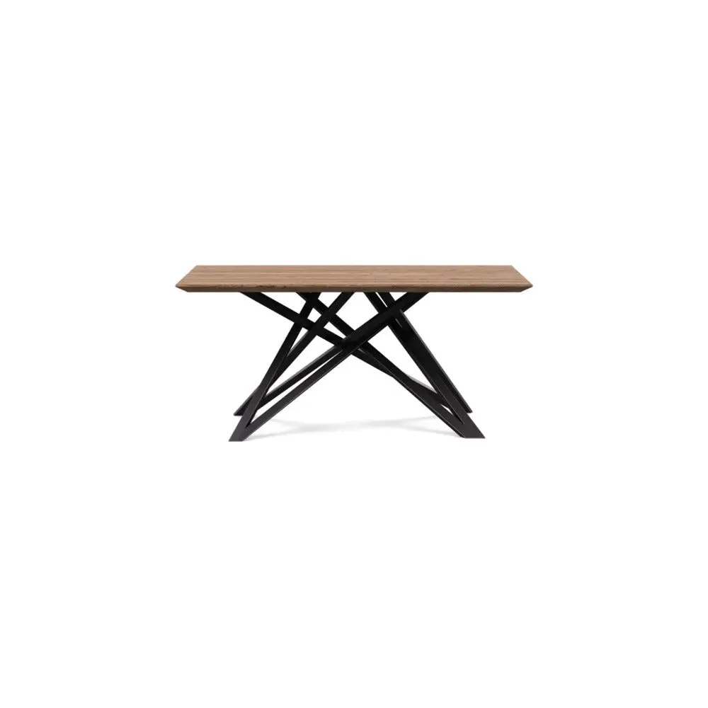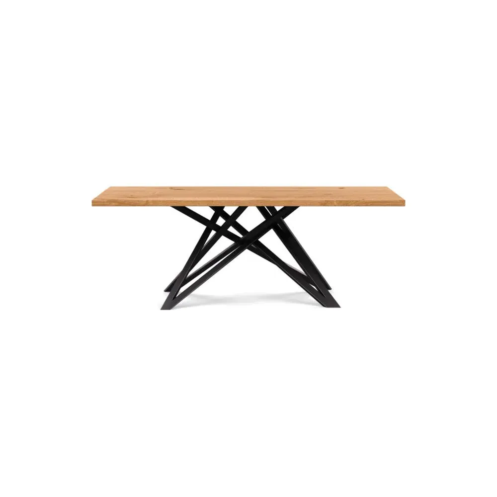 The dining table offers refined craftsmanship with its white oiled oak finish, featuring a distinctive straight edge design. Its filled grain construction provides a smooth surface, while the solid wood construction ensures lasting durability. The substantial build accommodates generous seating arrangements, and the oiled finish protects against daily wear. W160 x D90 cm.