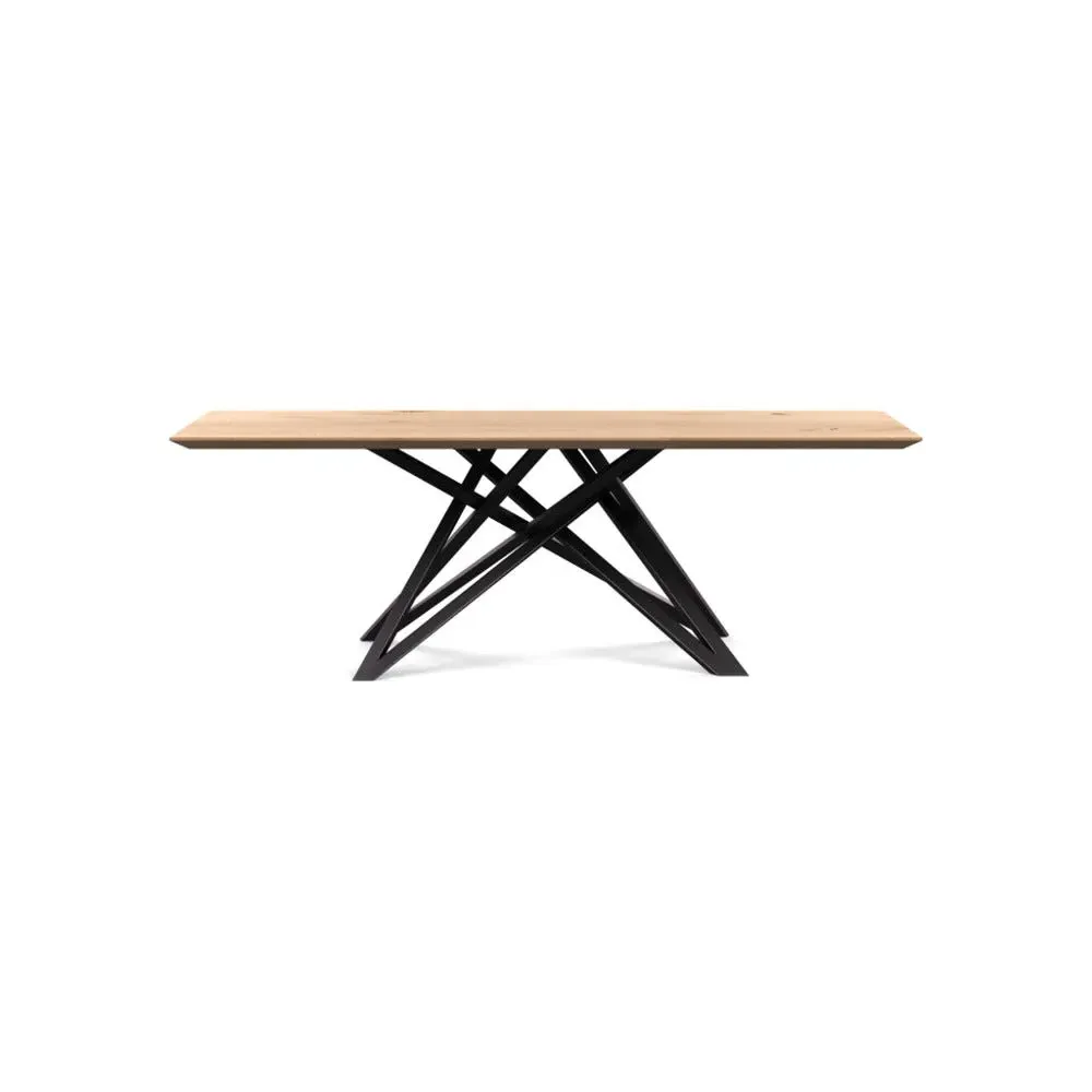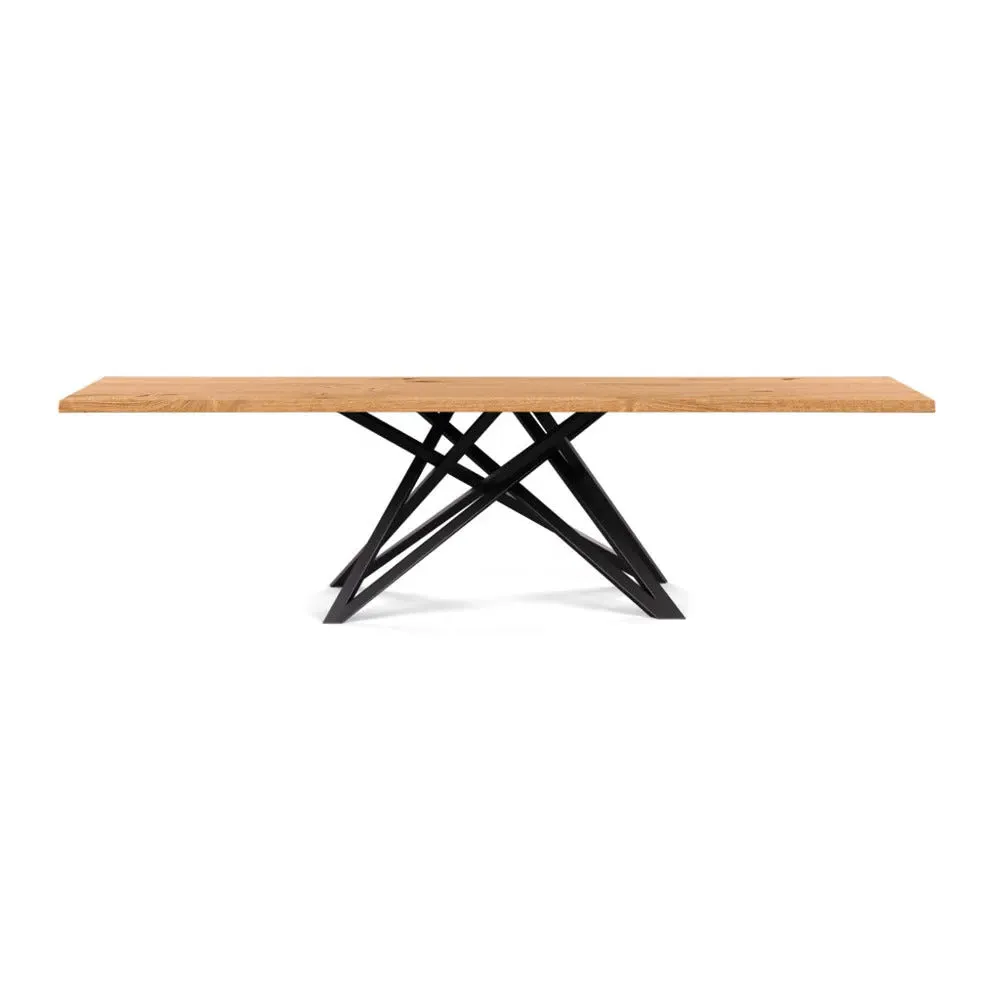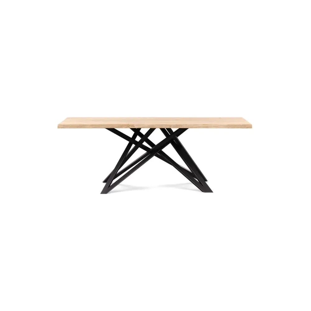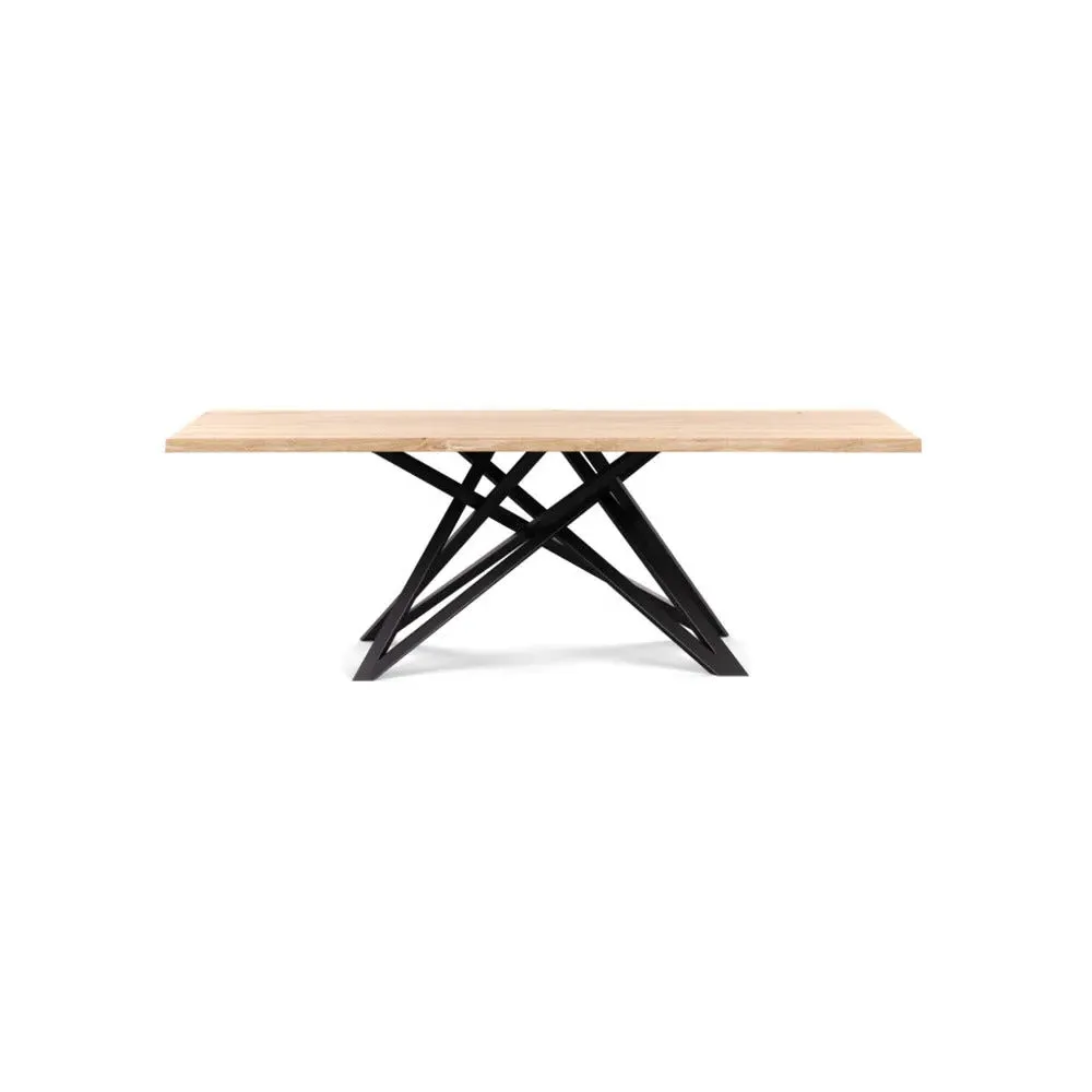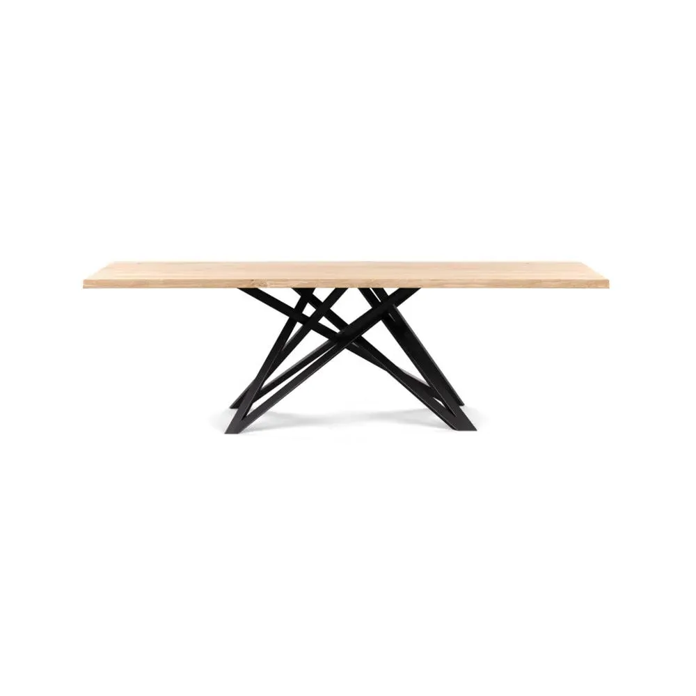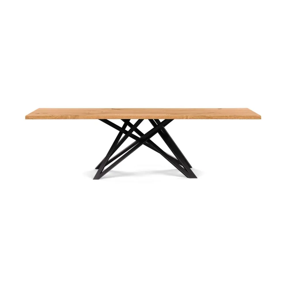 The dining table offers refined craftsmanship with its white oiled oak finish, featuring a distinctive straight edge design. Its filled grain construction provides a smooth surface, while the solid wood construction ensures lasting durability. The substantial build accommodates generous seating arrangements, and the oiled finish protects against daily wear. W160 x D90 cm.