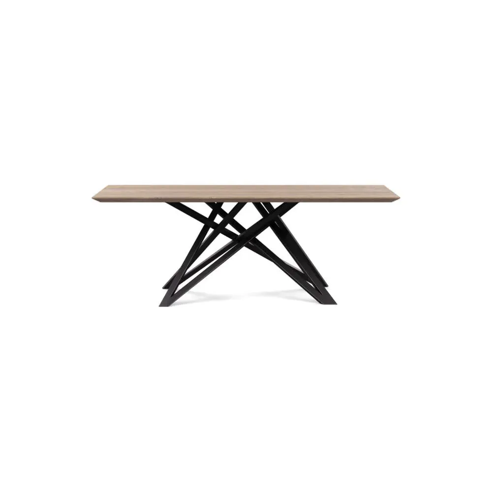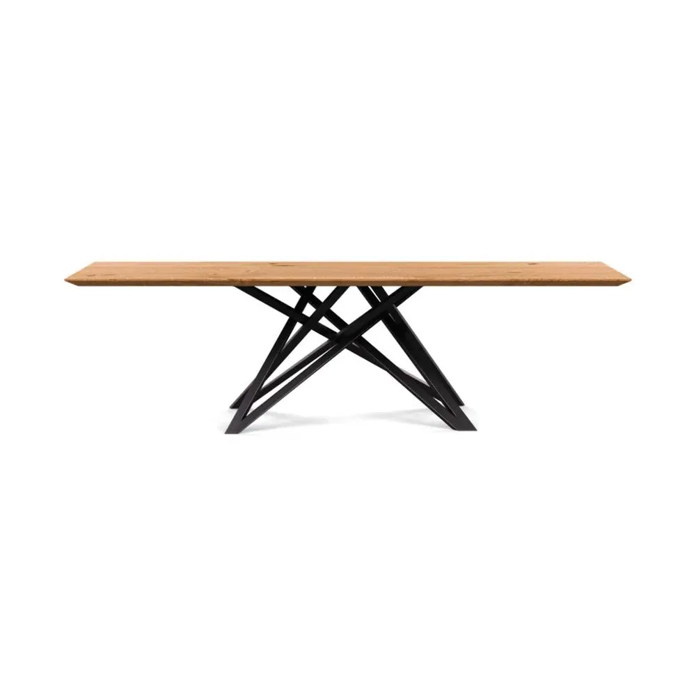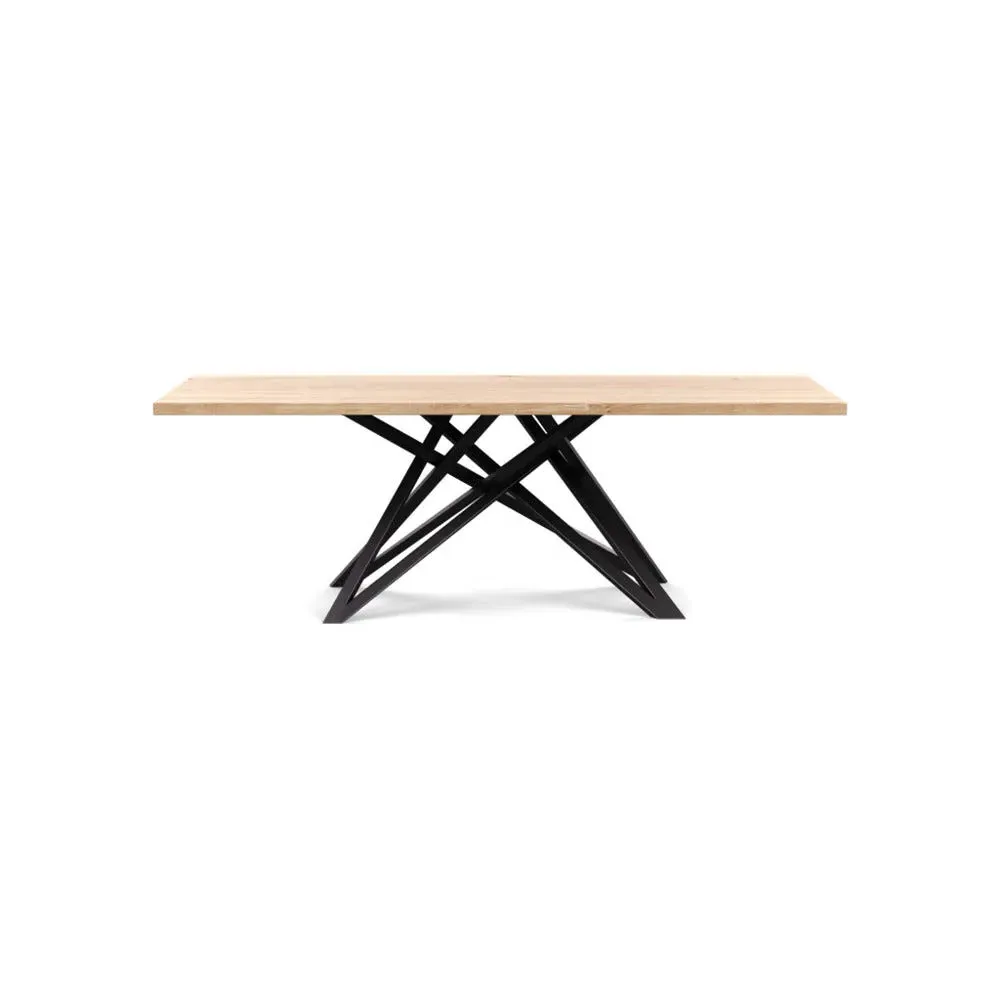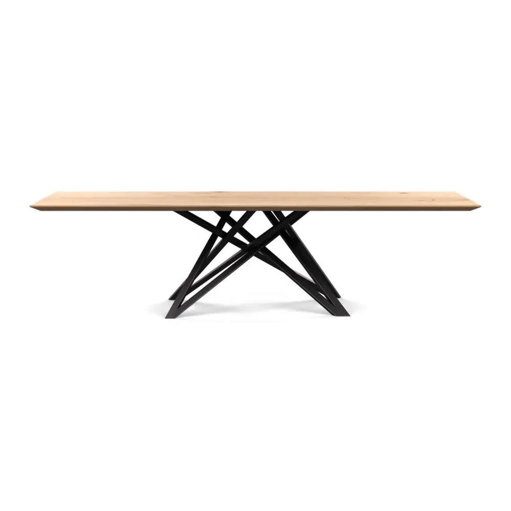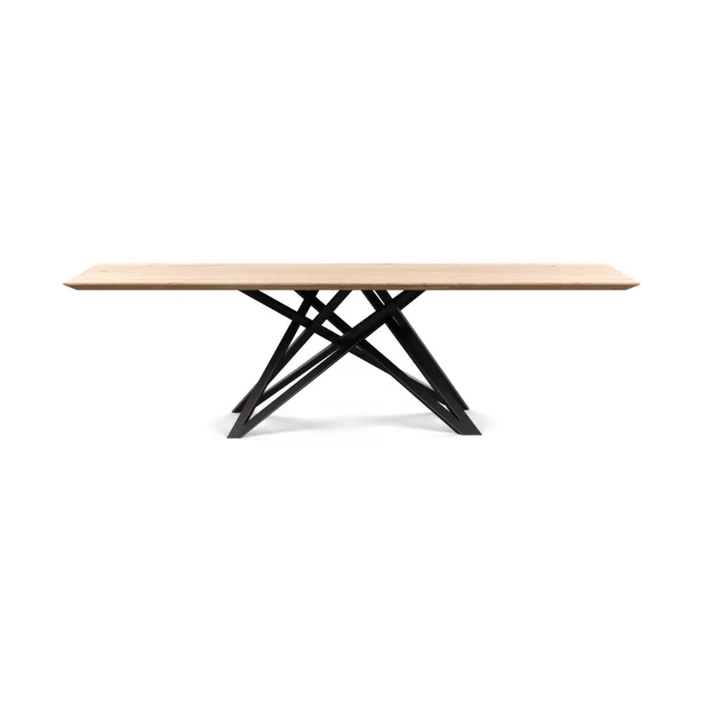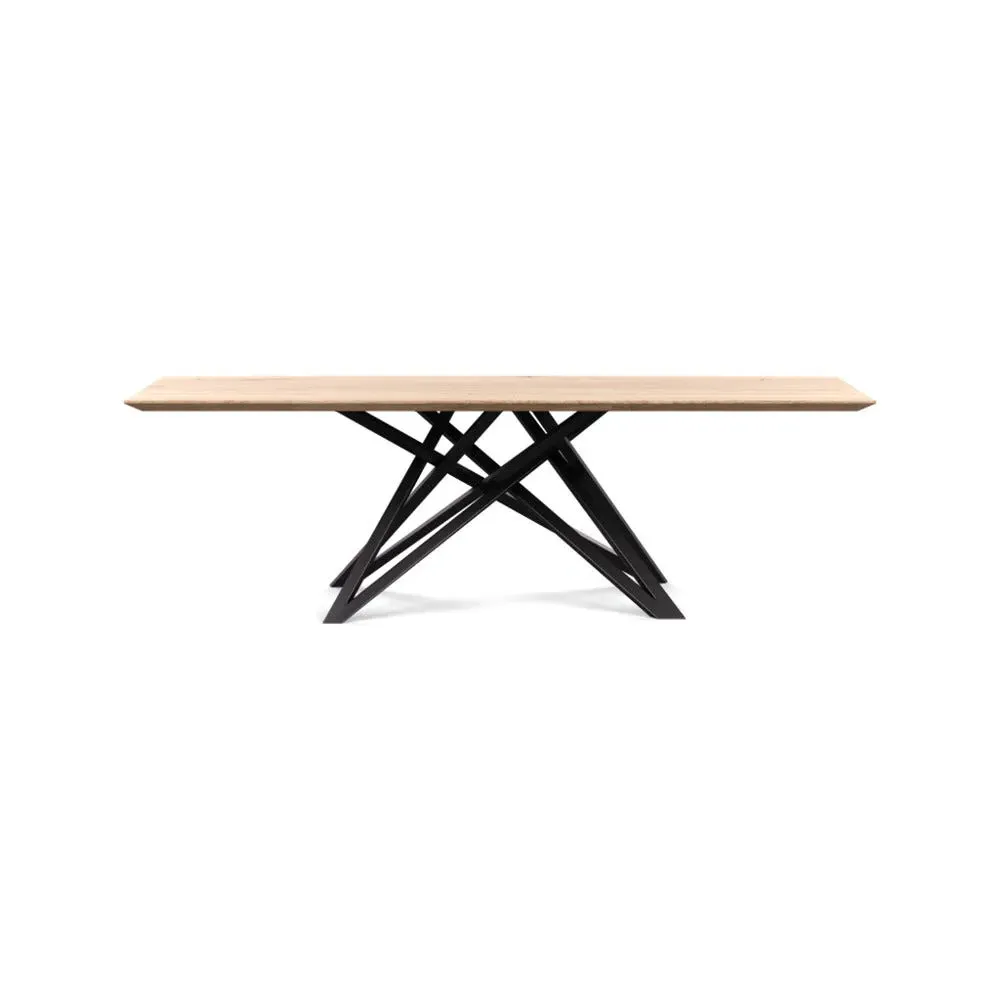The dining table offers refined craftsmanship with its white oiled oak finish, featuring a distinctive straight edge design. Its filled grain construction provides a smooth surface, while the solid wood construction ensures lasting durability. The substantial build accommodates generous seating arrangements, and the oiled finish protects against daily wear. W160 x D90 cm.