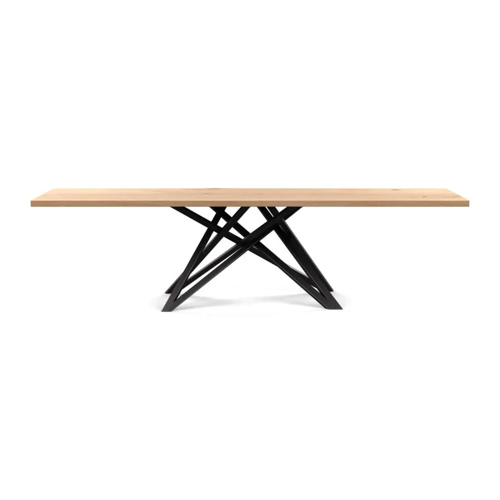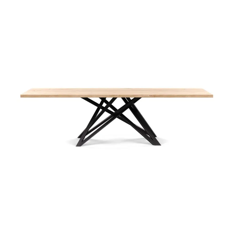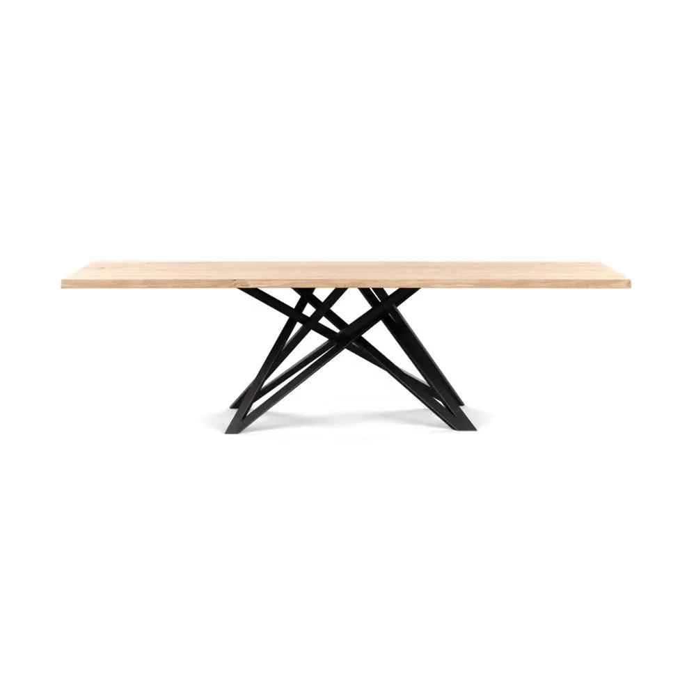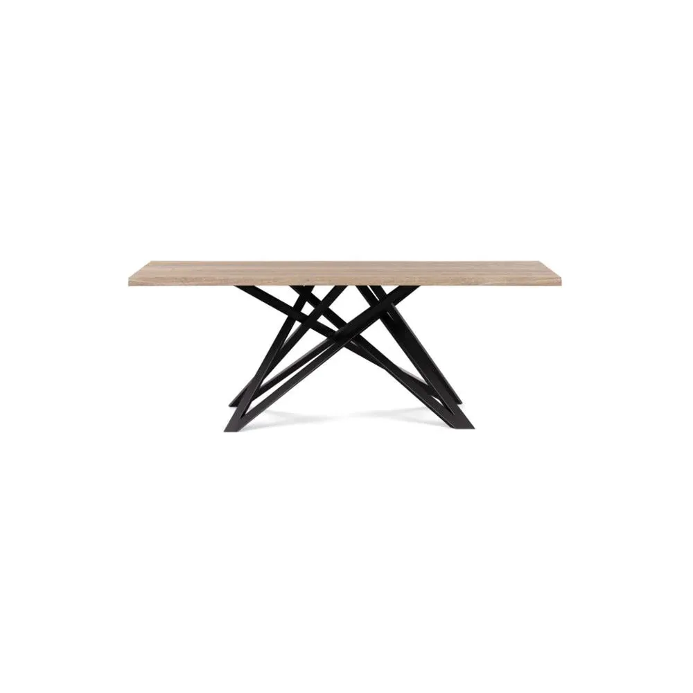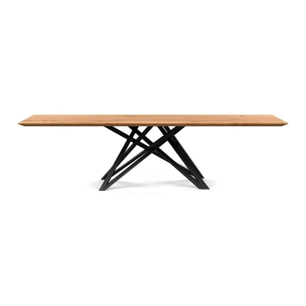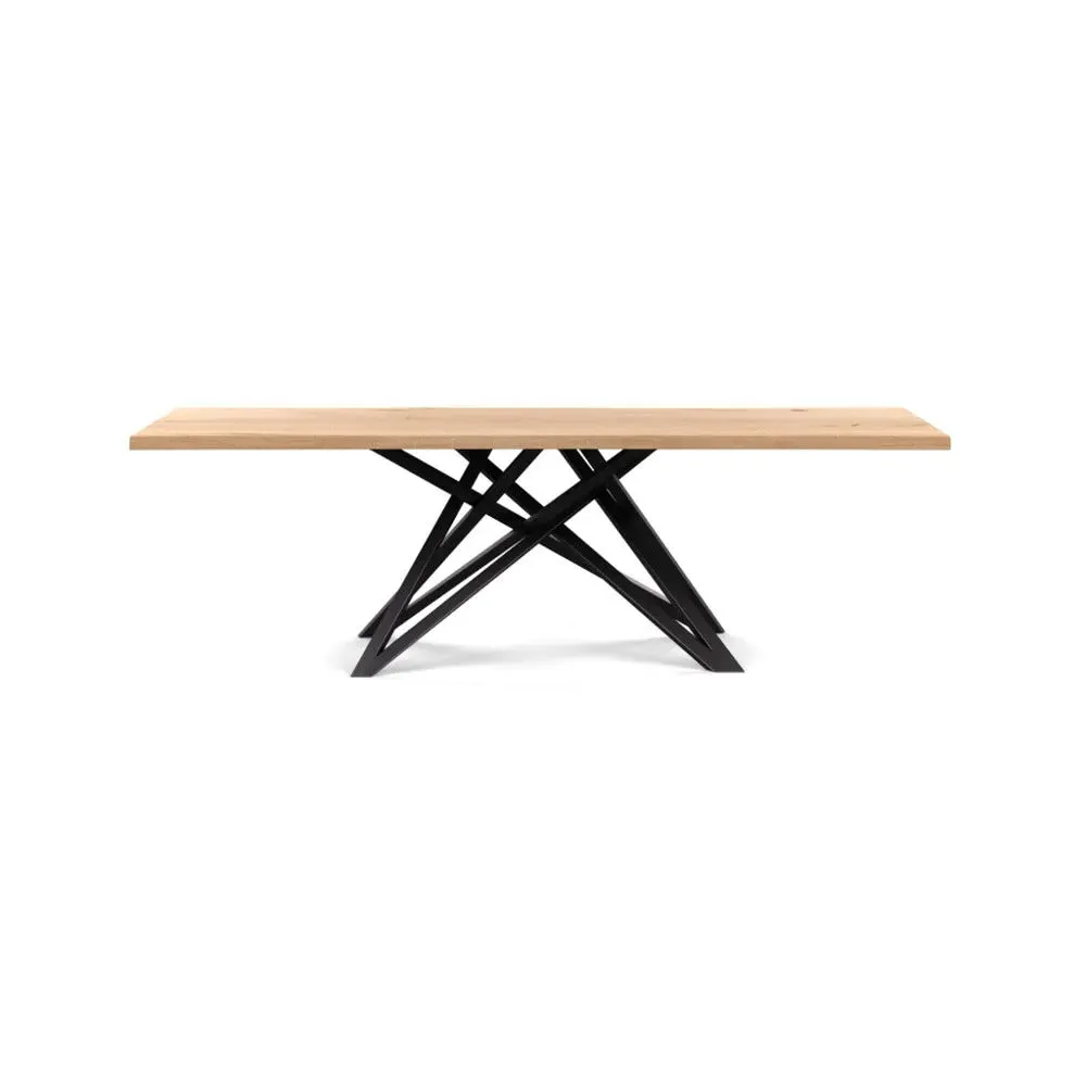 The dining table offers refined craftsmanship with its white oiled oak finish, featuring a distinctive straight edge design. Its filled grain construction provides a smooth surface, while the solid wood construction ensures lasting durability. The substantial build accommodates generous seating arrangements, and the oiled finish protects against daily wear. W160 x D90 cm.