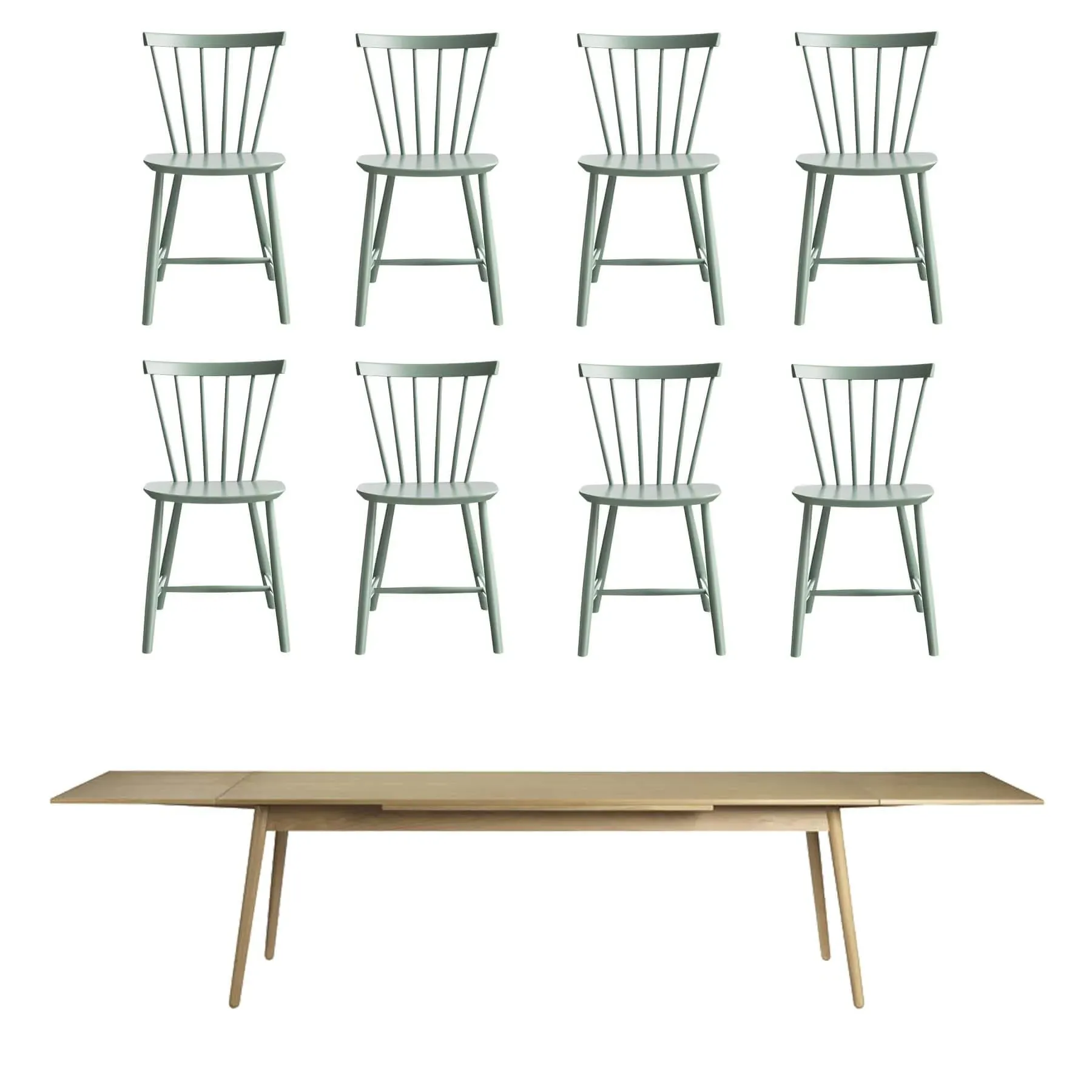 The Family Dining Table Bundle is an exquisite combination designed to transform compact areas into inviting dining sanctuaries. This bundle features the FDB Mobler C35B Dining Table, a tribute to timeless Scandinavian design and functional versatility and six iconic J46 chairs in Black, Cool Grey, or Dusty Green. Crafted by visionary Poul M. Volther in 1957, this table has been a symbol of understated elegance and adaptability. Elegance in Simplicity: The C35B Dining Table embodies the beauty of simplicity with its clean lines and minimalist aesthetic. It seamlessly complements classic dining chairs from FDB Mobler''s repertoire. Crafted with meticulous attention to detail, it captures the essence of Danish design &; refined, functional, and enduring. Inclined for Stability: The table''s distinctive feature lies in its slightly inclined legs, gracefully extending outwards. This unique design imparts a sense of ease and stability, ensuring a sturdy foundation for gatherings and shared moments in small spaces. Perfectly Sized for Cosy Gatherings: Tailored for small spaces, the C35B comfortably accommodates six guests. Crafted with care, it embraces the natural beauty of wood, offering a range of finishes to suit your interior preferences. Paired with the C35B Dining Table are six iconic J46 chairs, available in Black, Cool Grey, and Dusty Green. The J46 chair is a timeless classic, born in 1956, designed by Poul M. Volther. It effortlessly balances elegance and comfort, making it ideal for leisurely dinners and entertaining. Exquisite Craftsmanship: Crafted from FSC-certified beech, the J46 chair is not just beautiful; it''s environmentally friendly. Its well-padded seat encourages lingering conversations, while the iconic V-shaped back offers both striking design and excellent support. Enduring Style: With 15 striking colours to choose from, the J46 chair complements a wide variety of interior styles. Whether you''re entertaining guests or enjoying a family dinner, this iconic chair adds style and comfort to your dining room. And remember, you''re not limited to just six chairs or these specific colours. Additional chairs and various colour options are available at the same 25% discount. For more information, simply email us at sales@hollowaysofludlow.com. Transform your dining space into a sanctuary of style, comfort, and togetherness with the FDB Mobler Family Dining Table Bundle. It''s more than furniture; it''s an invitation to create lasting memories around your table, whether it''s a festive occasion or a simple family meal.