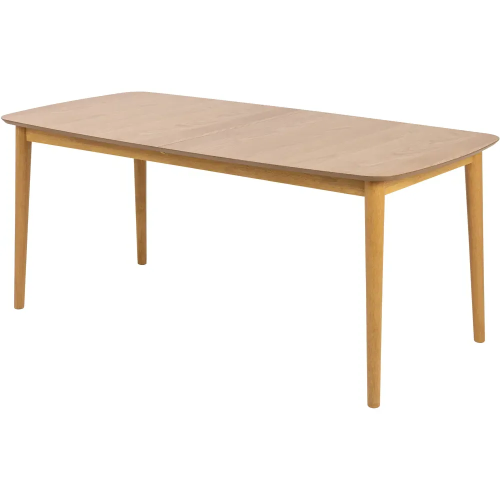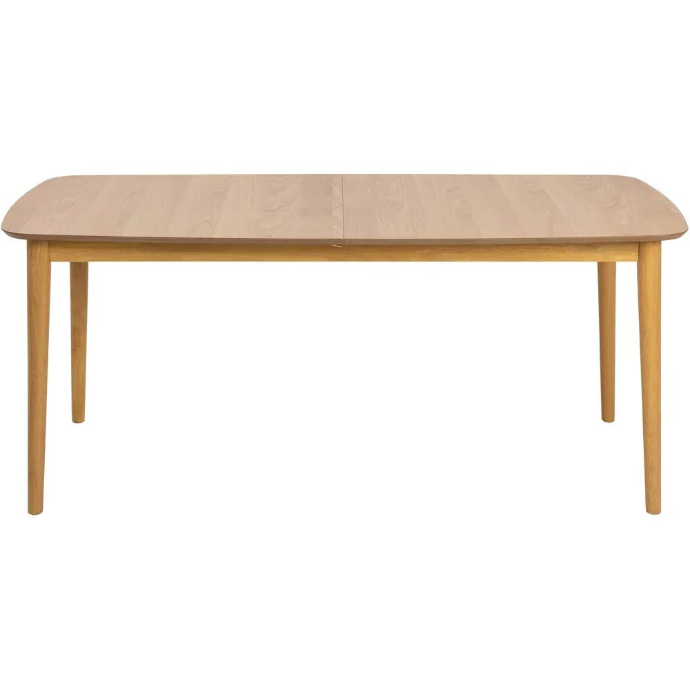 Elegant dining table with rounded corners and oiled oak veneer. Embraces simplicity and natural look, creating a cosy setting for 6 people.
