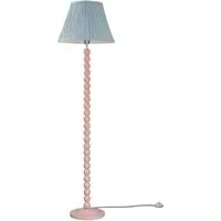 The Bobbins LED Floor Lamp offers versatile lighting with its blue stripe scallop linen shade. The rose pink base provides a gentle accent, while the LED technology ensures energy-efficient illumination. Its design suits various spaces with reliable performance, and the fabric shade creates soft, diffused light throughout the room.