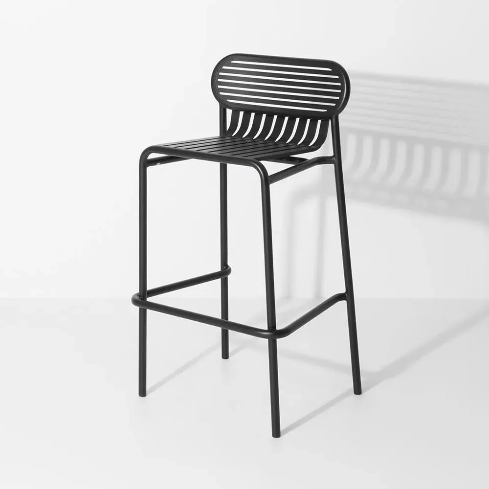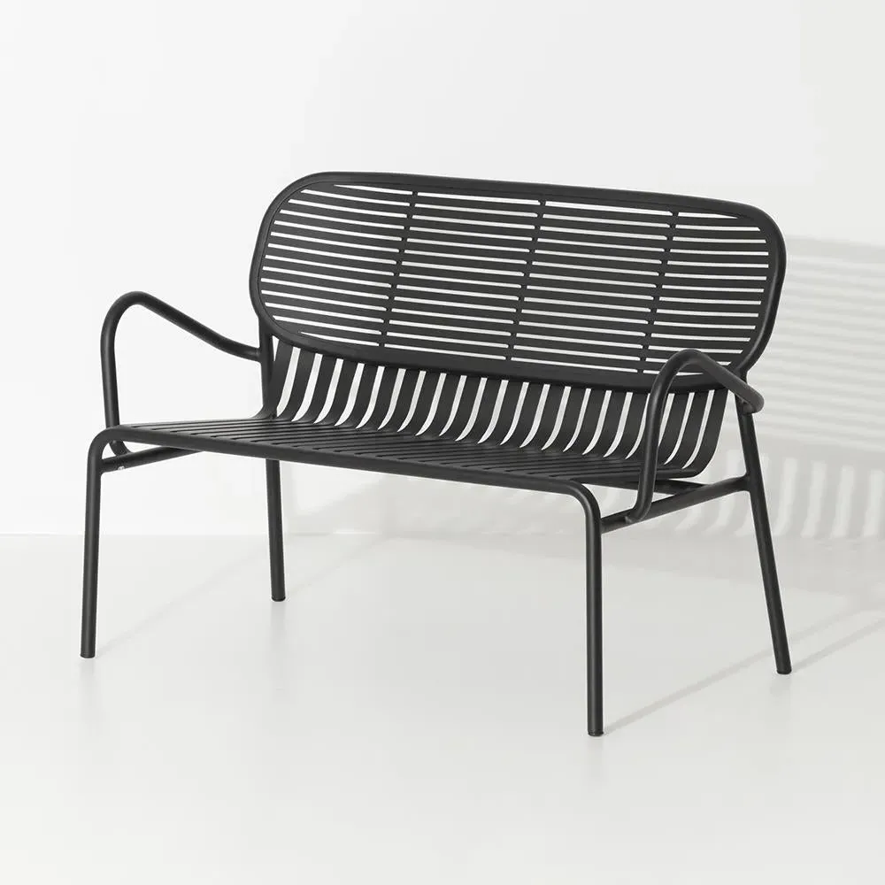 Designed with practicality in mind, The Week-End collection is a complete range of outdoor furniture. The oval and circular shape drawn by the backrests makes them a graphic statement. The impact of the horizontal and vertical slats, so similar to stripes, highlights the full and empty spaces, asserting the identity of the collection. The WEEK-END collection includes seats - a chair, a bridge, an armchair, tables, a coffee table, a square table for 2-4 people, a large dining table for 6-8 people.
