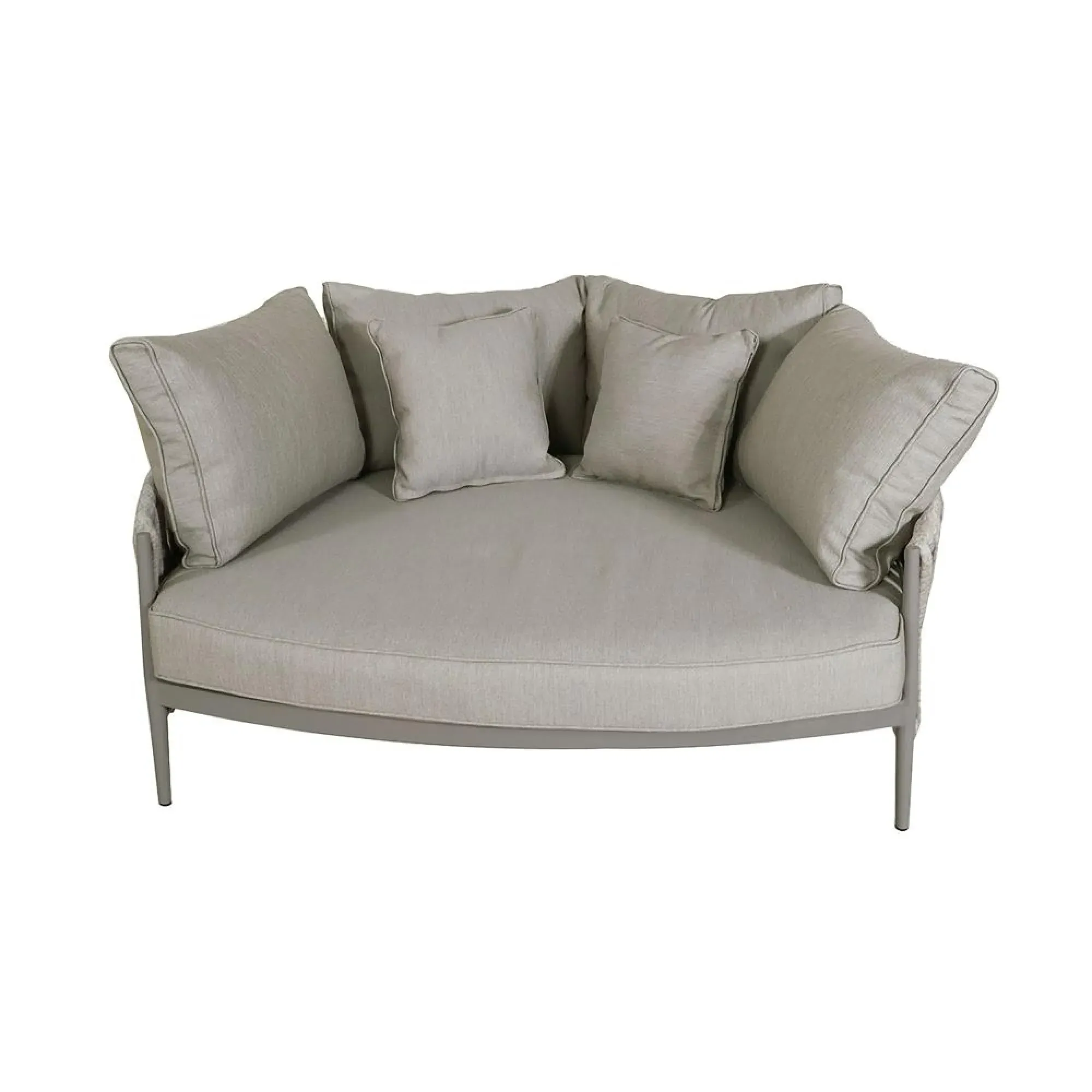 The Milan Garden Lounge Chair combines outdoor durability with its cool linen fabric upholstery. Its weather-resistant frame ensures stability and longevity, while the cushioned design provides comfortable seating for garden relaxation. The neutral linen finish adds versatility to outdoor spaces, and the sturdy construction withstands regular use.