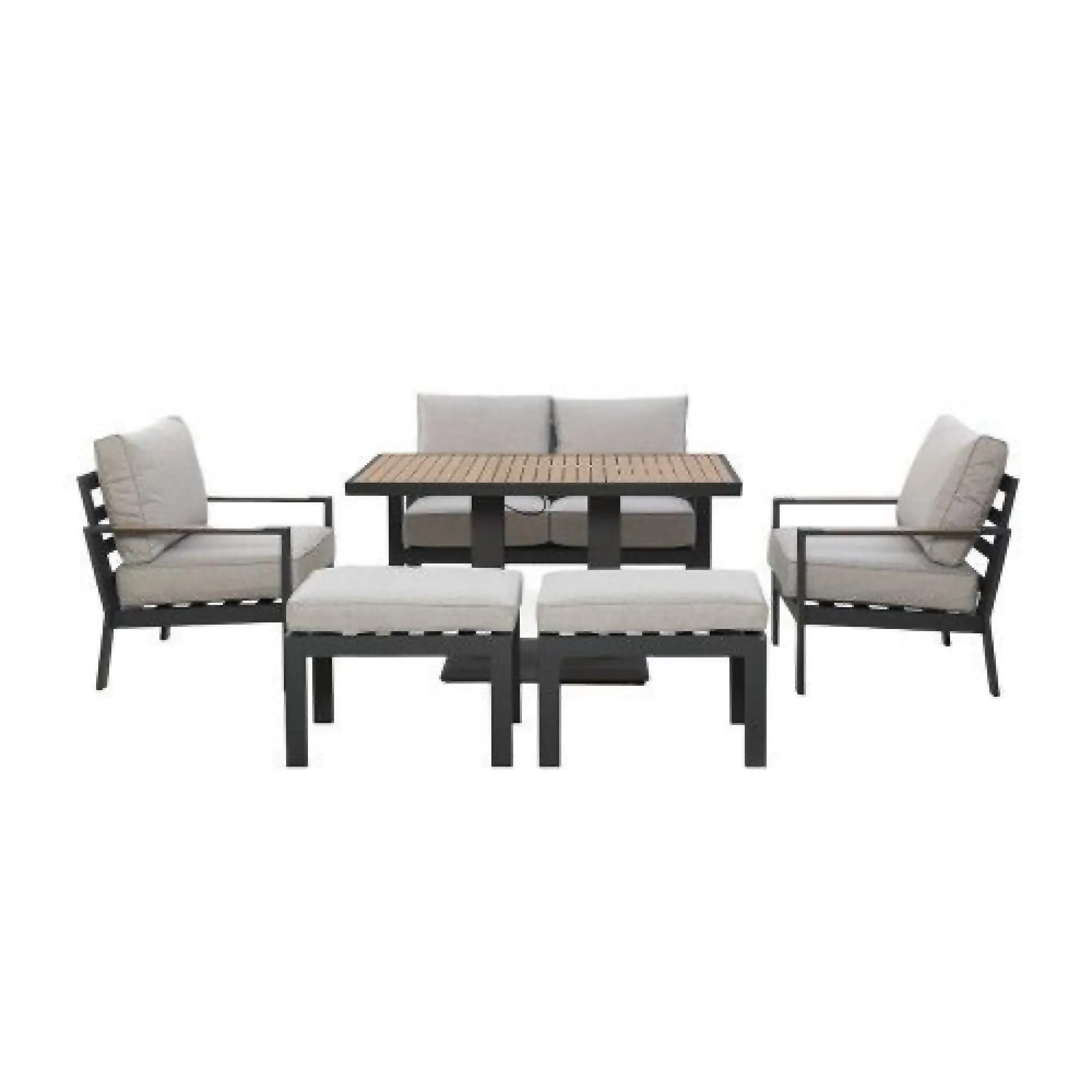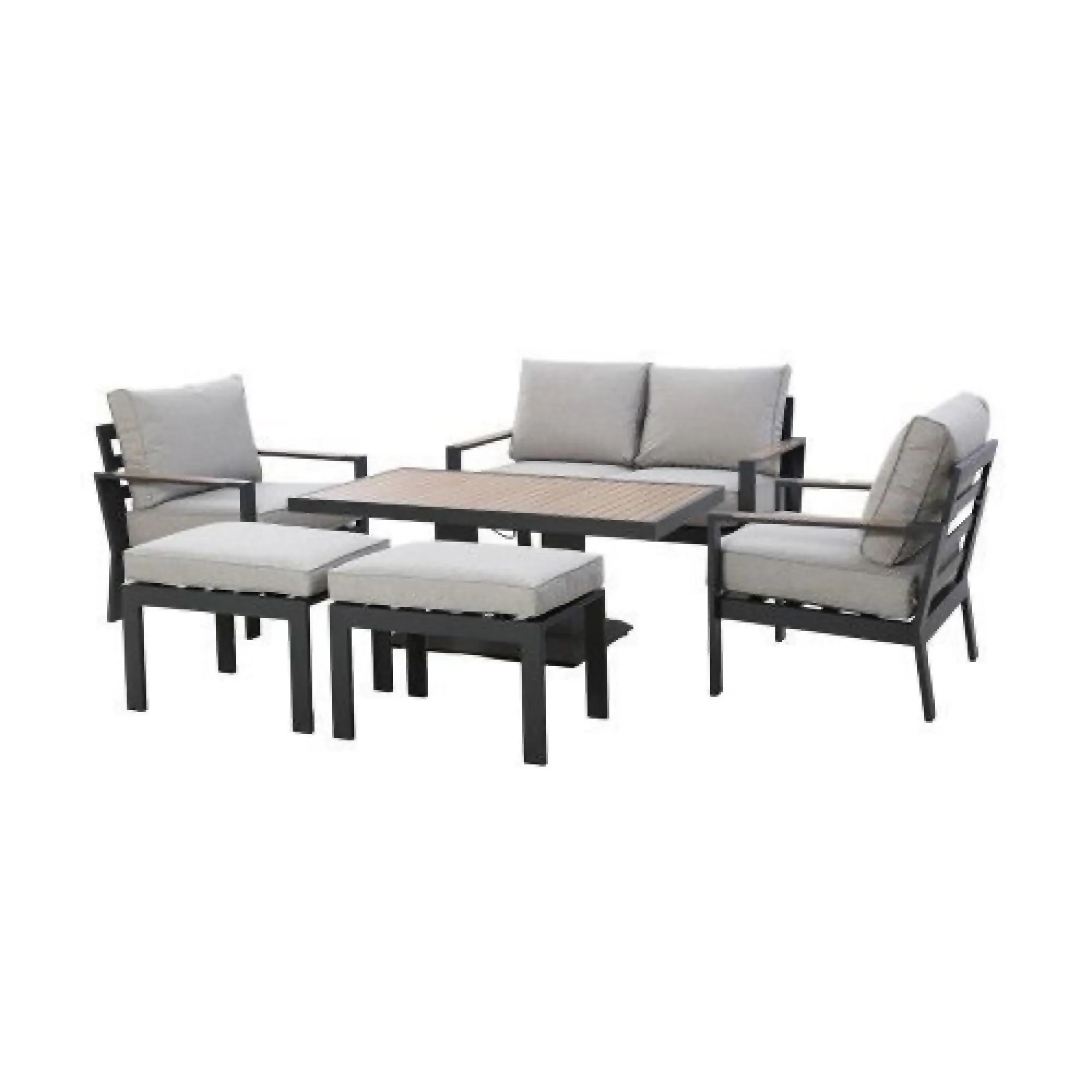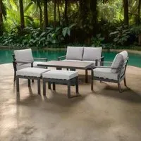 The Vancouver garden sofa set provides comfortable outdoor seating with its 2-seater design and matching table. The dove grey finish delivers weather-resistant durability, while the robust construction ensures stability in outdoor conditions. This compact set suits smaller garden spaces and offers a coordinated seating solution for outdoor relaxation.