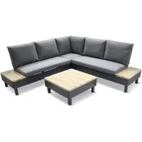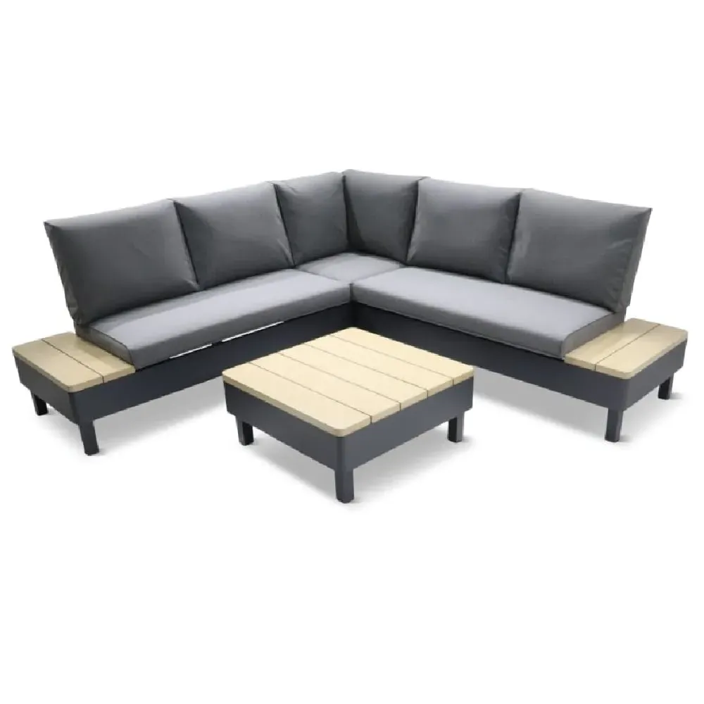 The Lanelle Round Garden Coffee Table combines stability with decorative appeal through its cast aluminium construction and patterned tabletop. Its three separate legs provide reliable support, while the umbrella hole accommodates standard parasols for added shade. The table offers a sturdy surface for drinks and outdoor essentials with weather-resistant durability. W62 x D62 x H65 cm.
