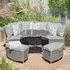 The Marfa Garden Lounge Sofa Set combines comfort and durability with its glass-top coffee table and cushioned seating arrangement. Its handwoven poly-rattan weave provides authentic wicker appeal with UV resistance, while the powder-coated aluminum frame ensures lightweight strength. The stain-resistant fabric cushions feature season-proof construction and eco-friendly core filling. The complete set includes a 2-seater sofa, 2 lounge chairs, and coffee table in sand finish.