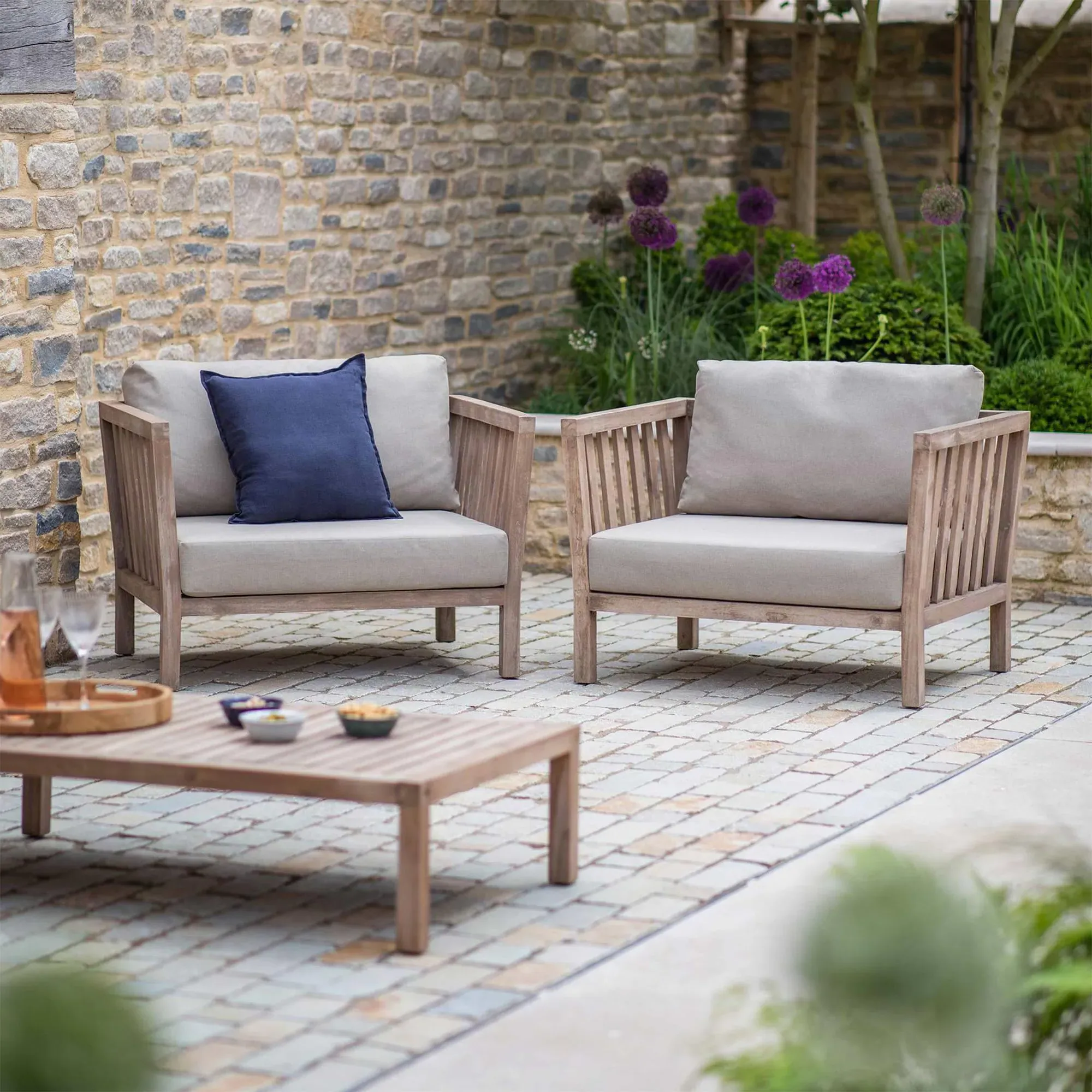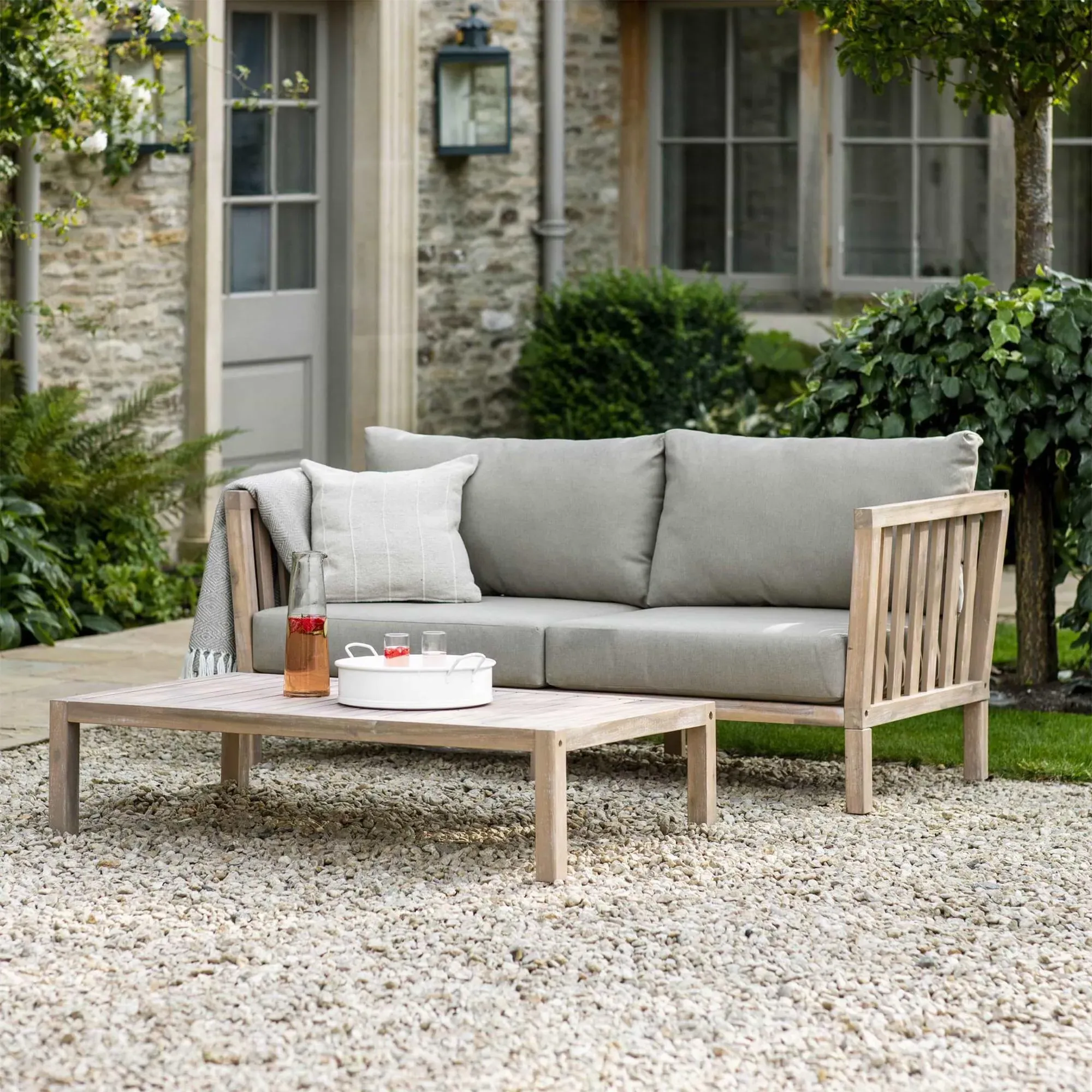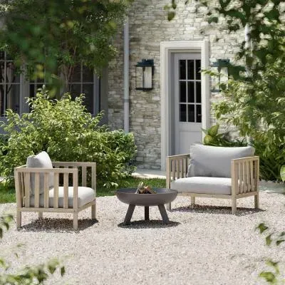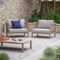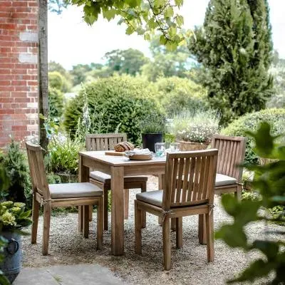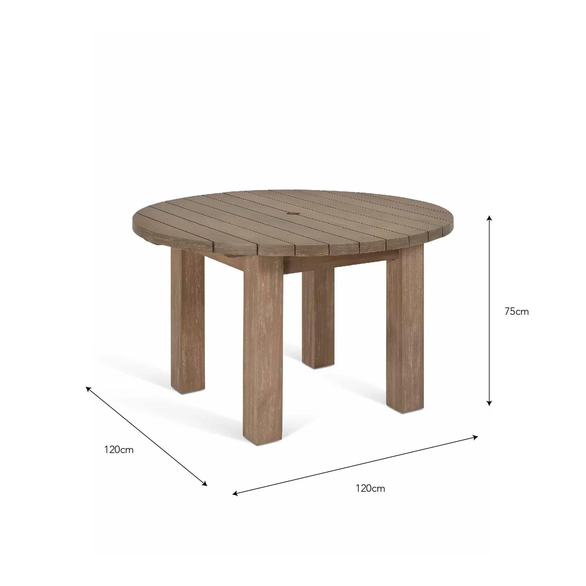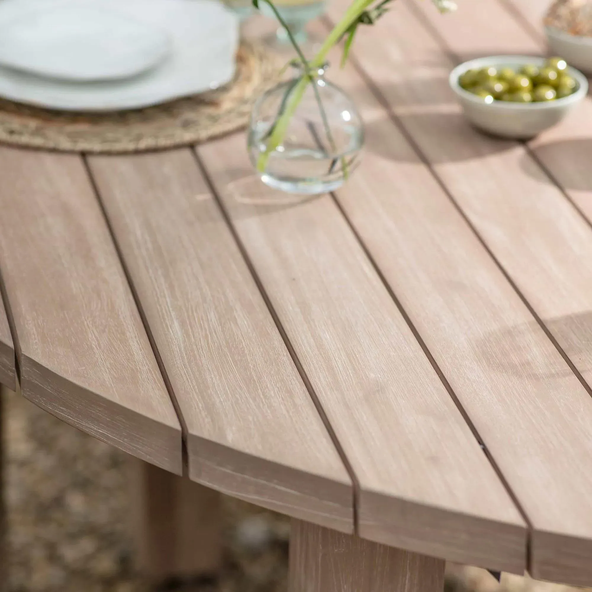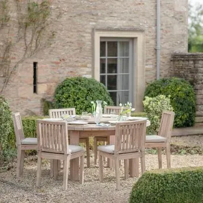 The Porthallow Round Side Table offers convenient surface space with its compact circular design and natural acacia wood construction. Its weather-resistant finish makes it suitable for outdoor use, while the round shape allows for easy placement beside seating areas. The natural wood grain adds organic appeal to outdoor spaces.