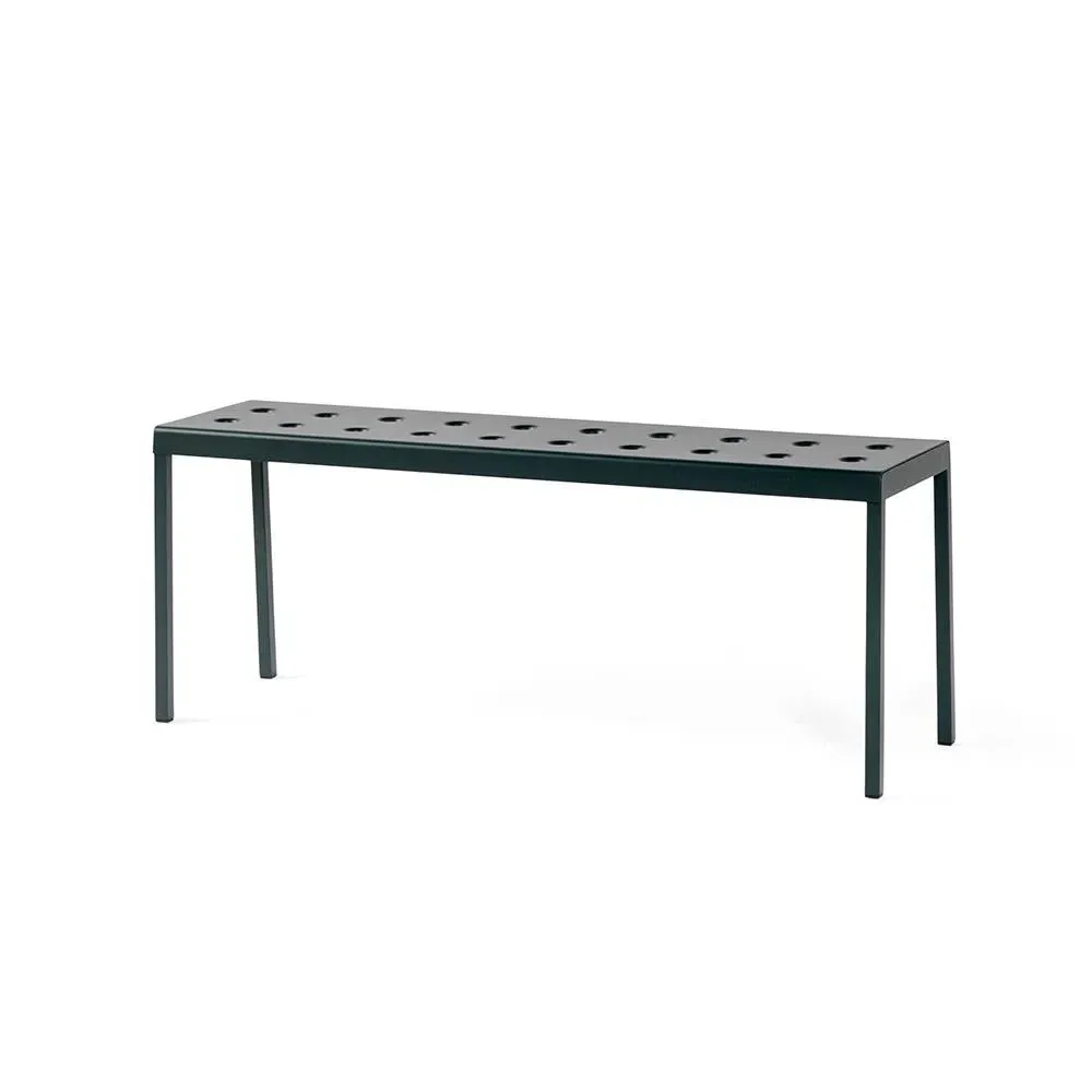 Designed for HAY by Ronan and Erwan Bouroullec, the Balcony Stool is an elegant and functional stool for outdoor use. The rectangular design is softened by the slightly dished seat, with the multiple holes in the seat strengthening the construction, as well as creating a distinct expression. Made in powder-coated steel with an outdoor primer for optimal resilience and durability, the Balcony Stool is available in a variety of colour options, making it well suited to all kinds of spaces, from small balconies and terraces to gardens and other larger outside areas.