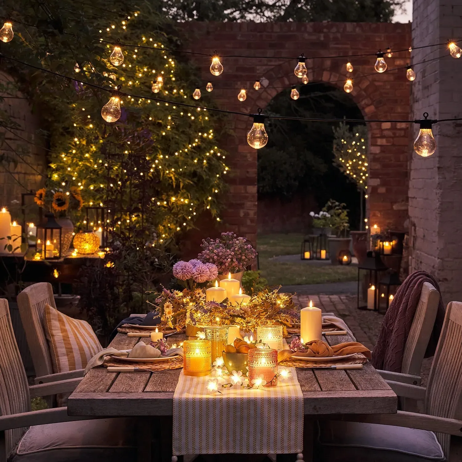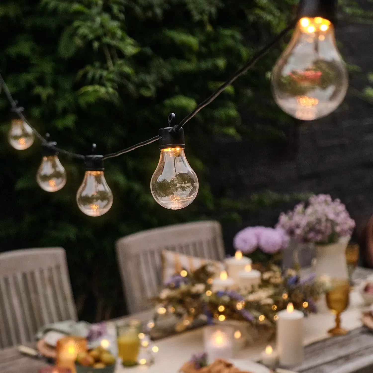 The festoon lights feature 10 warm white LED bulbs evenly spaced across 5m of black cable. Each globe houses 4 SMDs within for ambient illumination, while the simple end connectors allow easy linking to create custom lengths. The low voltage design suits both indoor and outdoor installations, and the system connects up to 75m of lights with a single plug.
