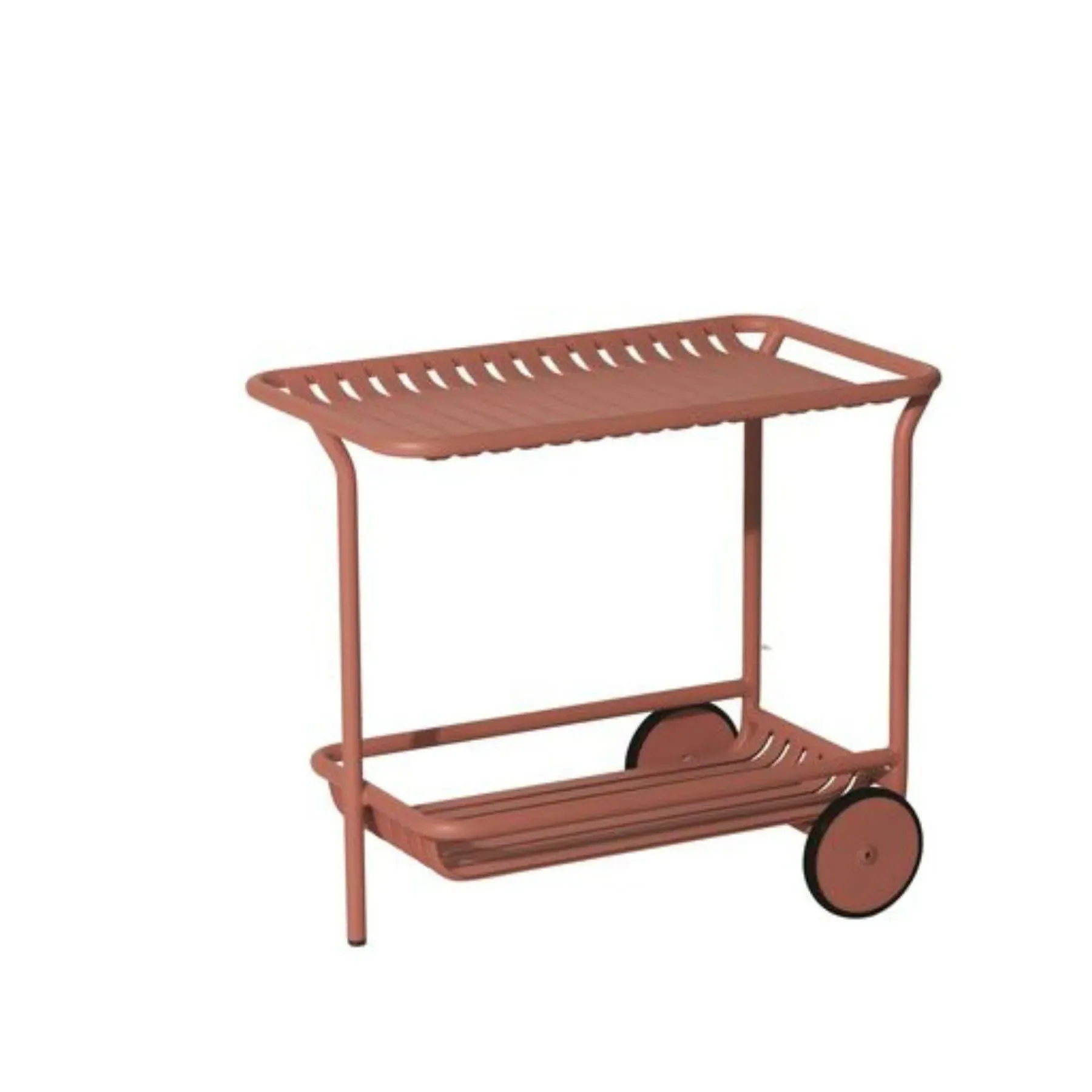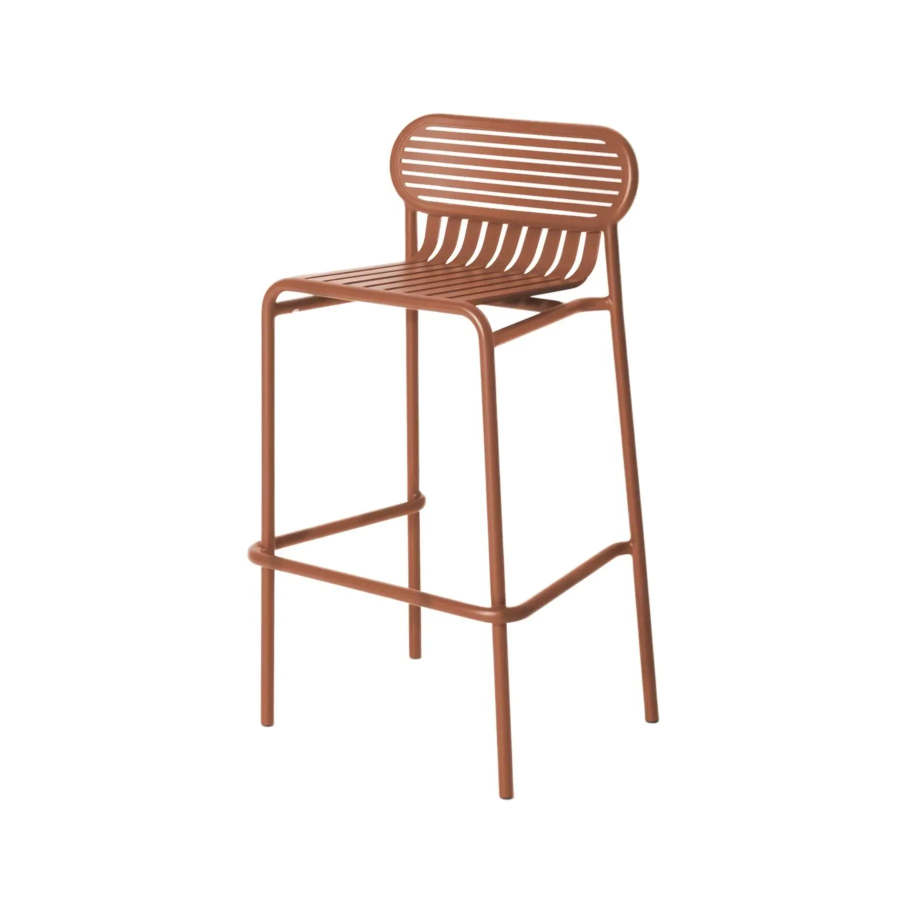 Designed with practicality in mind, The Week-End collection is a complete range of outdoor furniture. The oval and circular shape drawn by the backrests makes them a graphic statement. The impact of the horizontal and vertical slats, so similar to stripes, highlights the full and empty spaces, asserting the identity of the collection. The WEEK-END collection includes seats - a chair, a bridge, an armchair, tables, a coffee table, a square table for 2-4 people, a large dining table for 6-8 people.