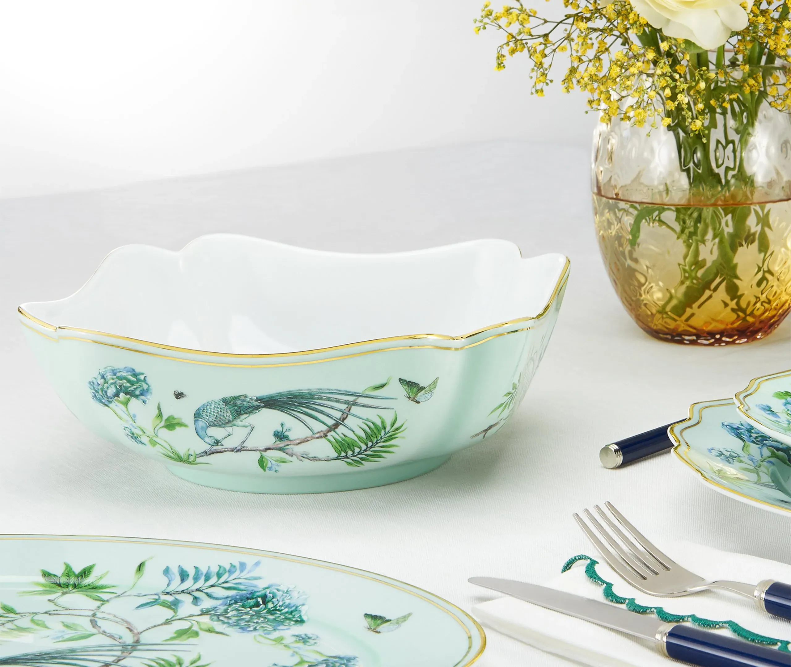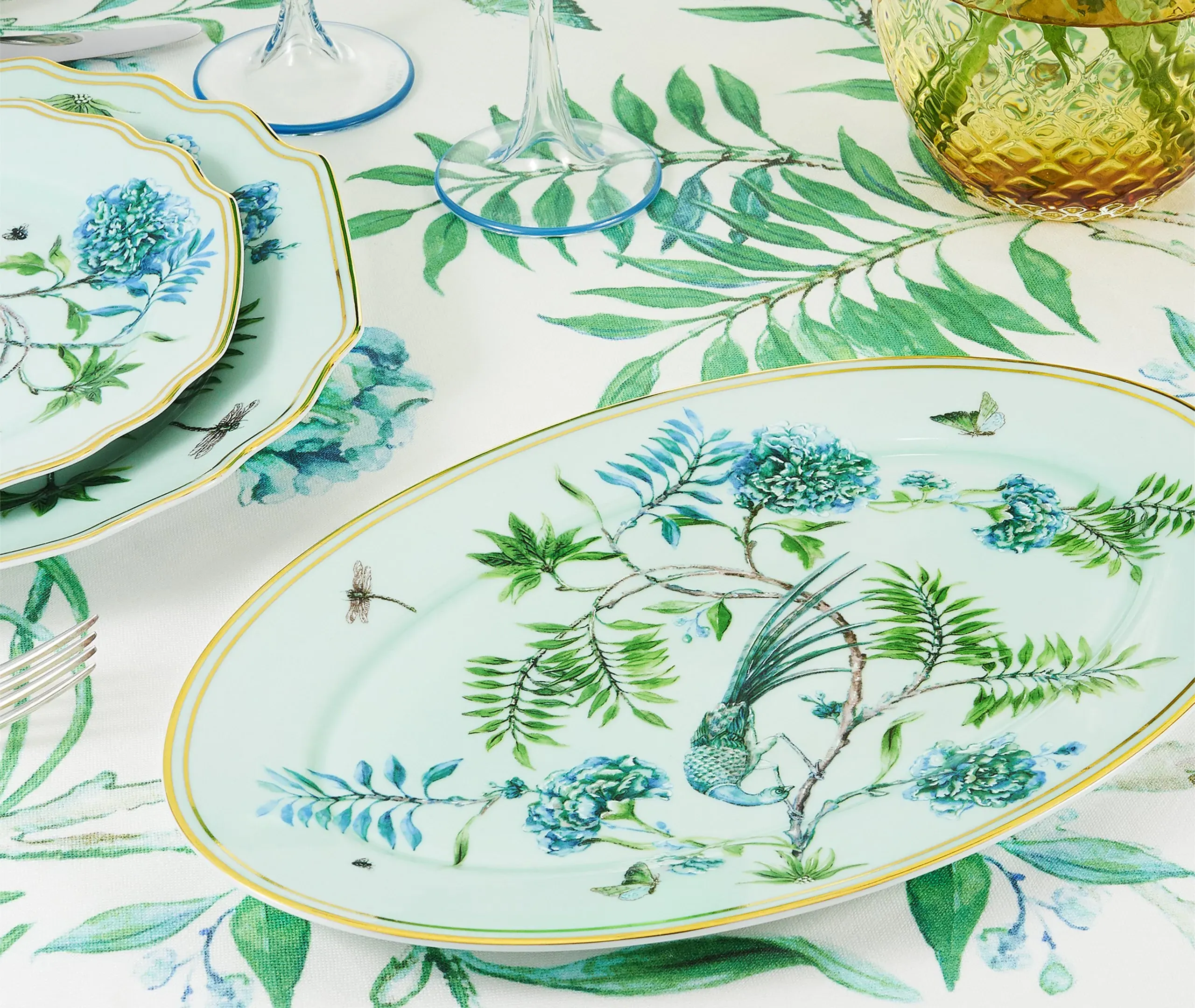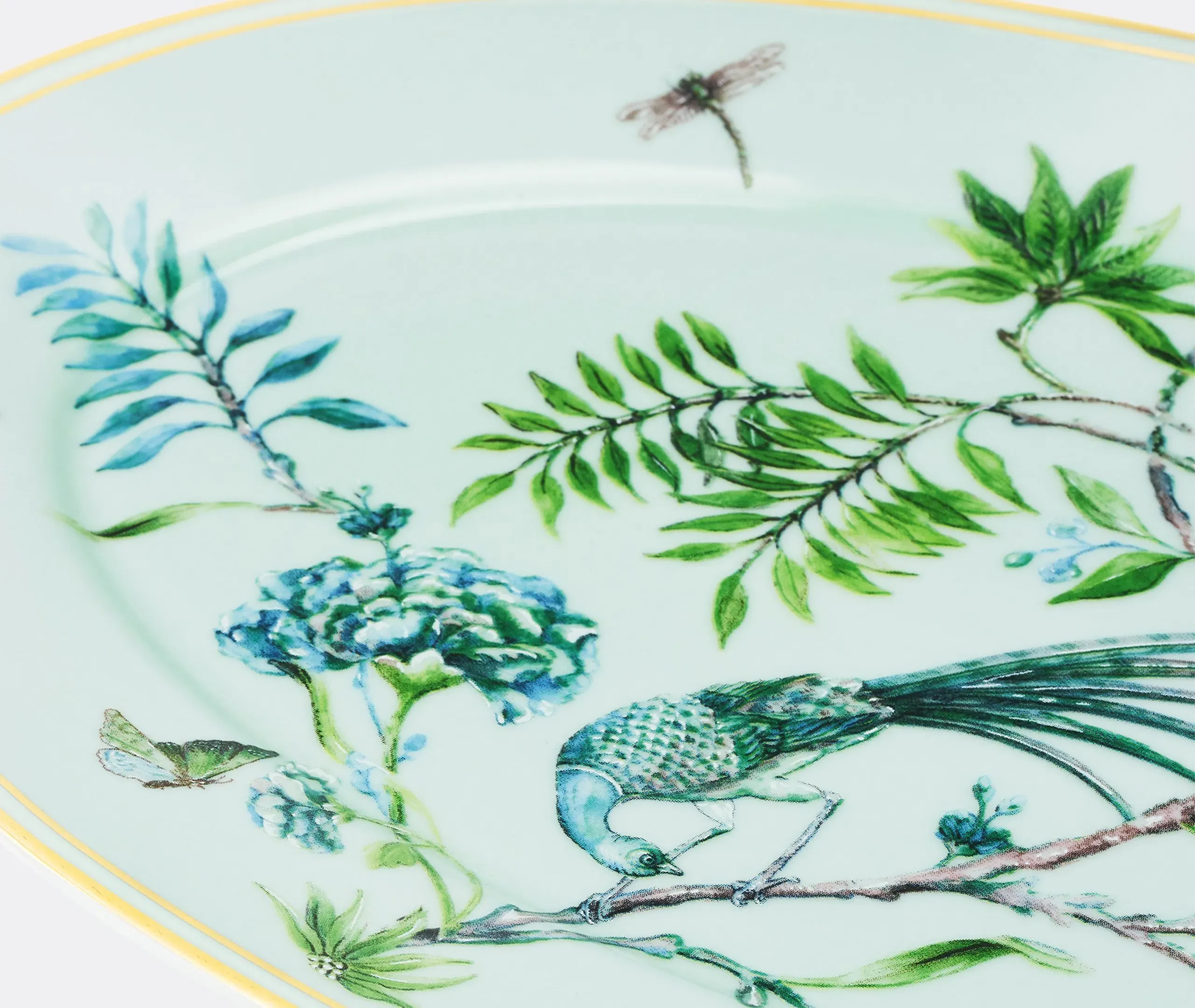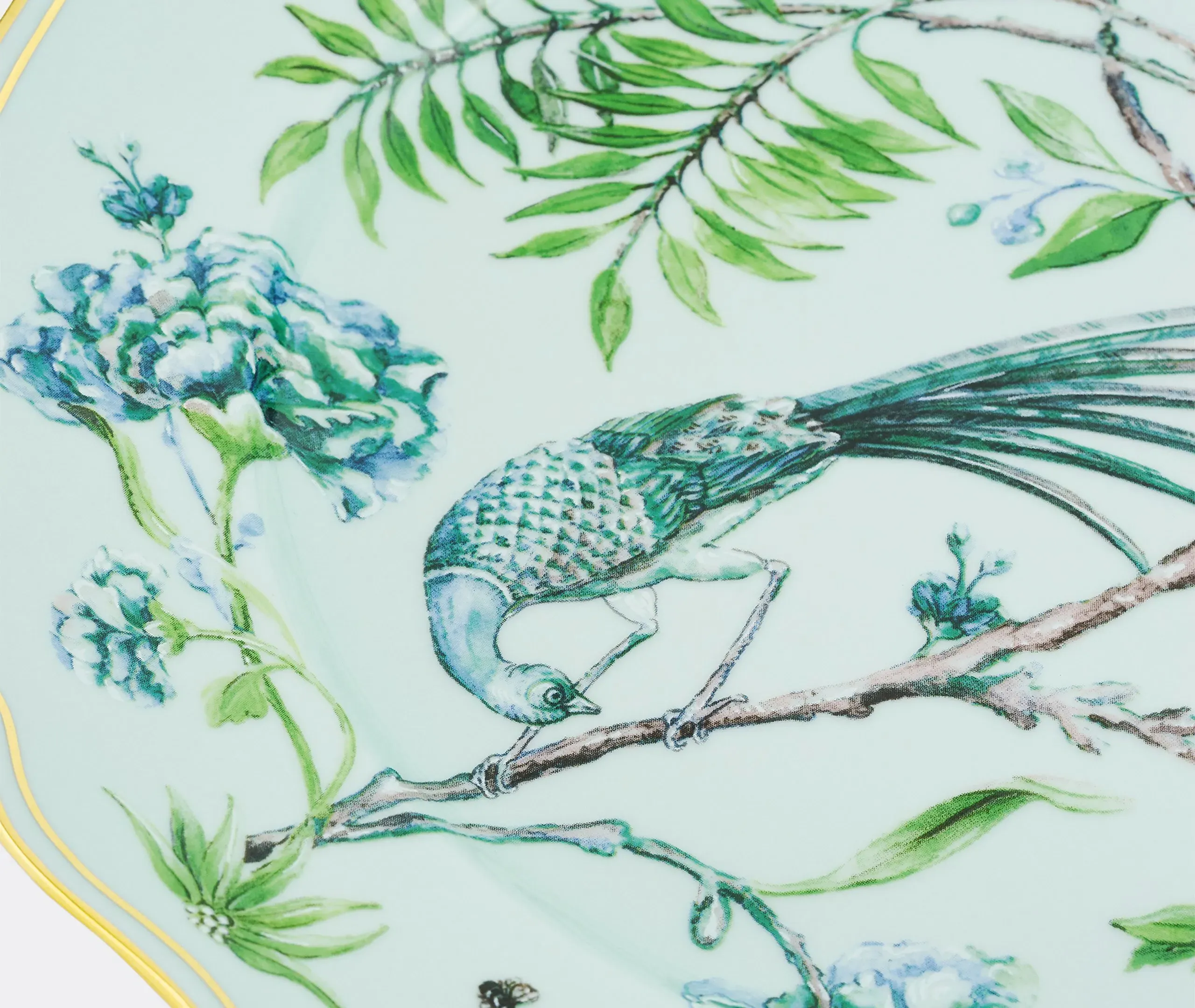 In Aquazzura Casa’s 'Secret Garden' collection, delicate boughs, blossoms, birds, bees, and butterflies coalesce in a naturalistic, ecstatic symphony. The collection includes this set of fine linen Italian-made napkins. In minute detail and finished with elegant English corners, the design can be blended with tableware from the series for a lush, abundant tablescape.