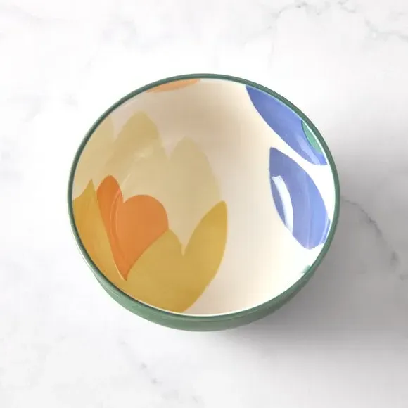 * Vibrant floral print on stoneware* Hand-painted green rim and exterior* Perfect for serving dips in style* Complements mix and match table settings* Coordinating items available for a cohesive collection Serve dips in style with the Elements Fieldsley Floral Glazed Stoneware Dip Bowl. This bowl features a vibrant floral print on stoneware, accented by a hand-painted green rim and exterior. Perfect for mix and match table settings, coordinating items are available to complement your collection.