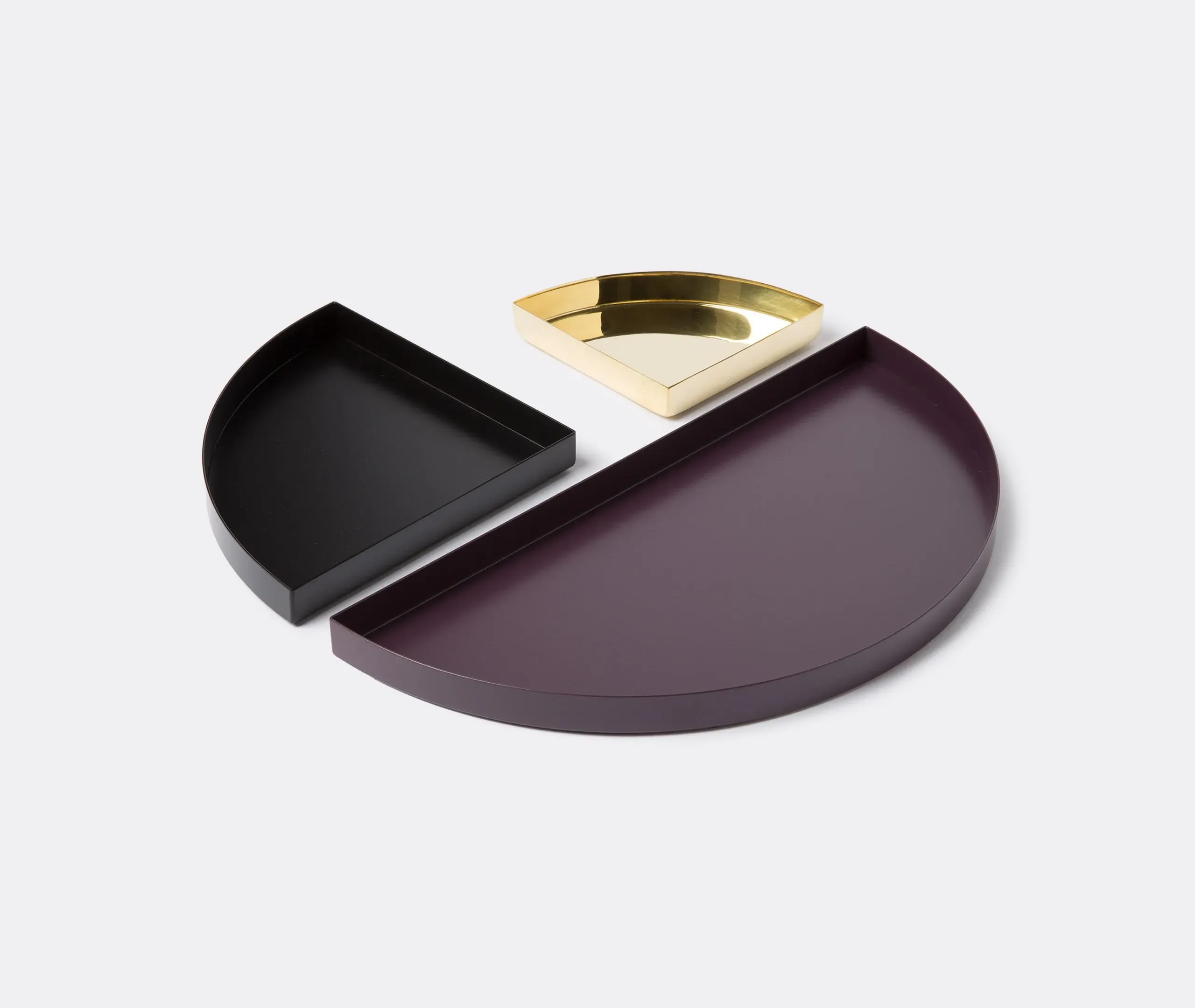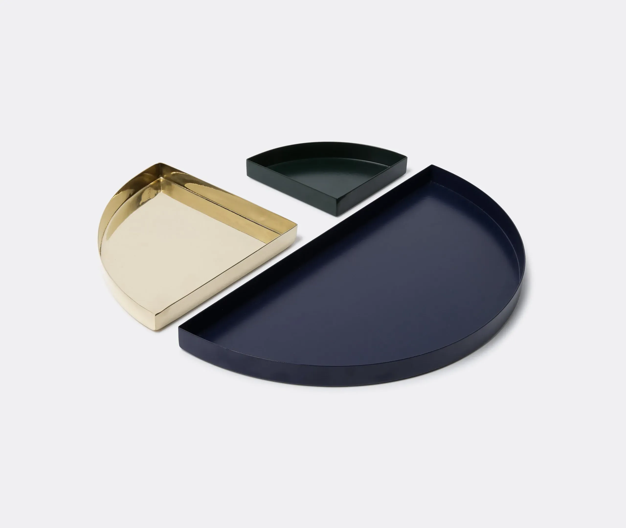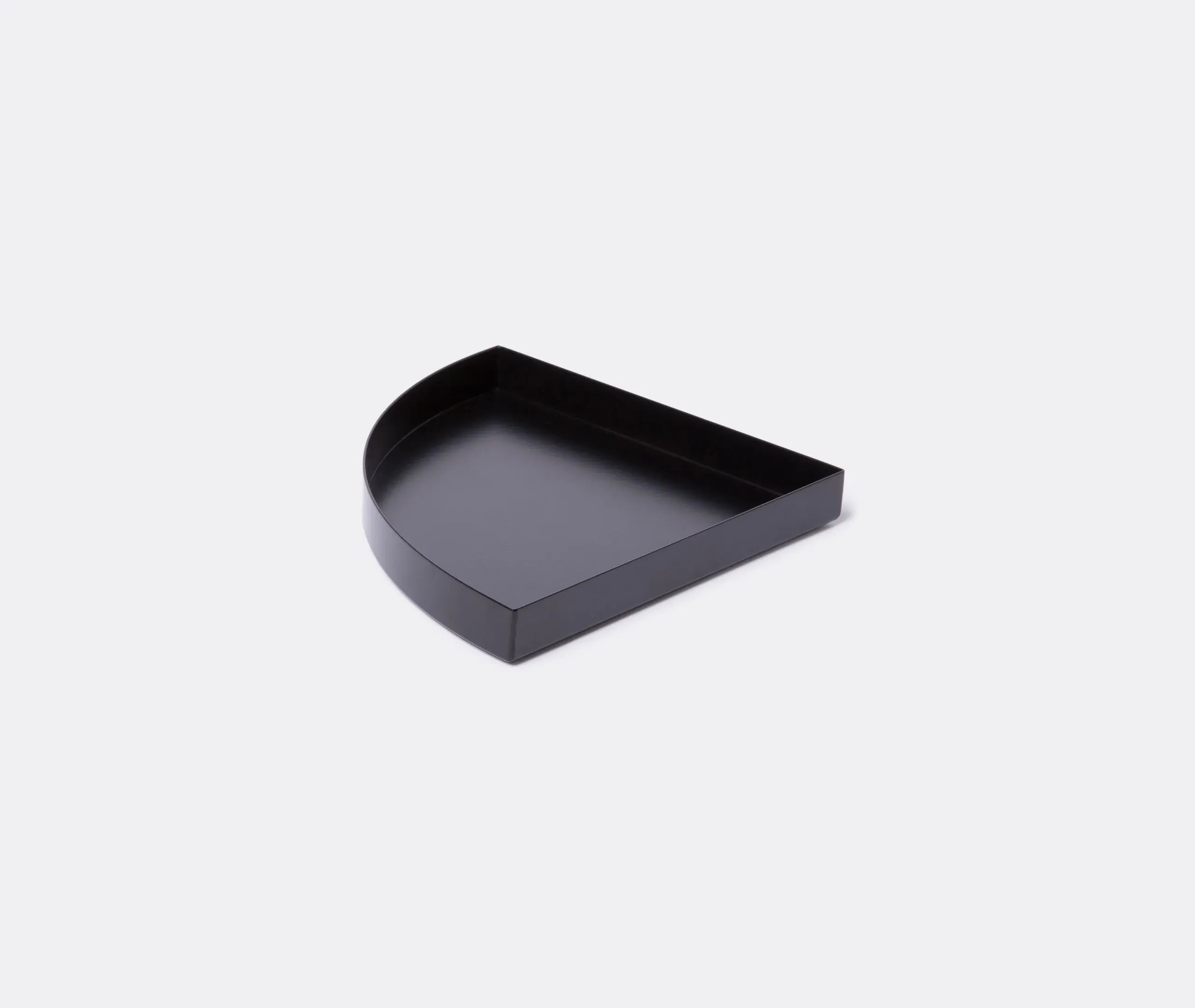 This dark green powder-coated iron tray is both versatile and stylish. Food-safe, it can be used to serve meals, while its inventive shape makes it ideal for storage stationery and other small items in areas where space is lacking. It can be used alone or combined with other pieces from AYTM's Unity collection, which features geometric decorative trays of various sizes.
