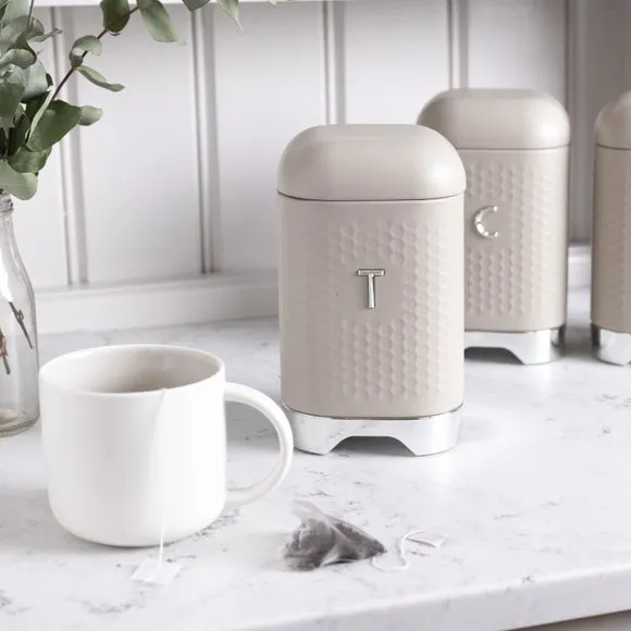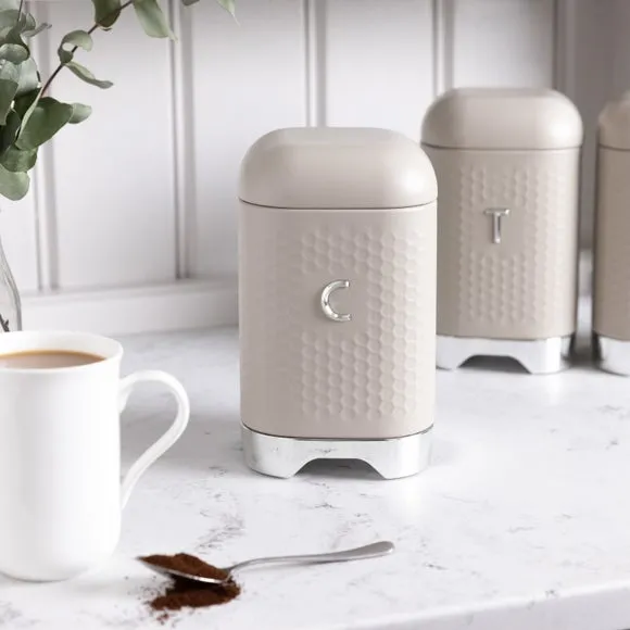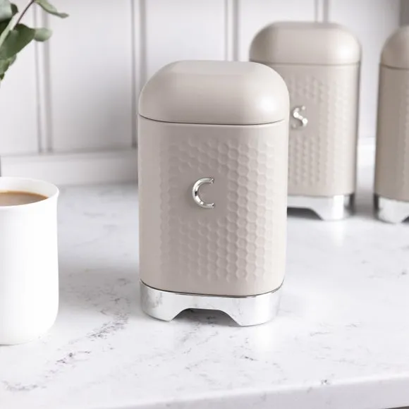 * Available in a range of colours* Coordinating items available* Crafted from durable carbon steel Brew up some retro charm with the Kitchen Craft Lovello Kitchen Canister. This square storage tin is as stylish as it is practical, featuring a glossy hunter green finish, debossed geometric detailing, and a metallic label for easy access. Made from durable carbon steel, it’s designed to keep your kitchen essentials fresh with an airtight, snug-fitting hinged lid. The non-slip feet keep it steady and protect your surfaces, while the 12-month guarantee ensures lasting quality. Simple to wipe clean, it’s the perfect way to store your tea, coffee and sugar in style. Add a touch of vintage flair to your kitchen today.