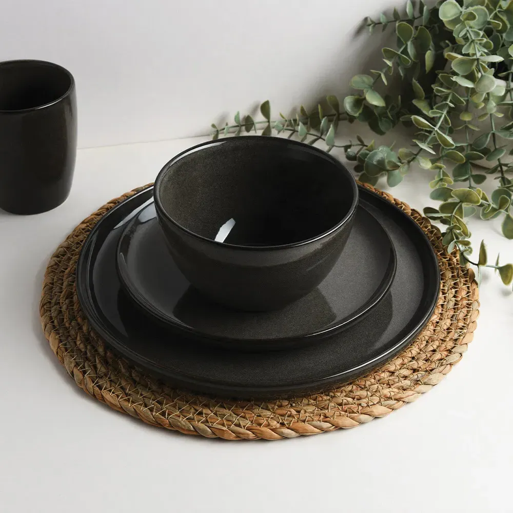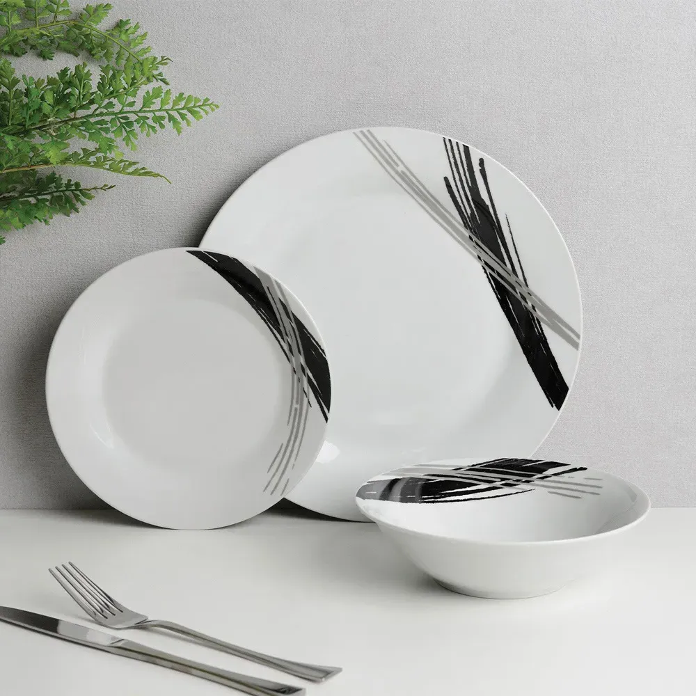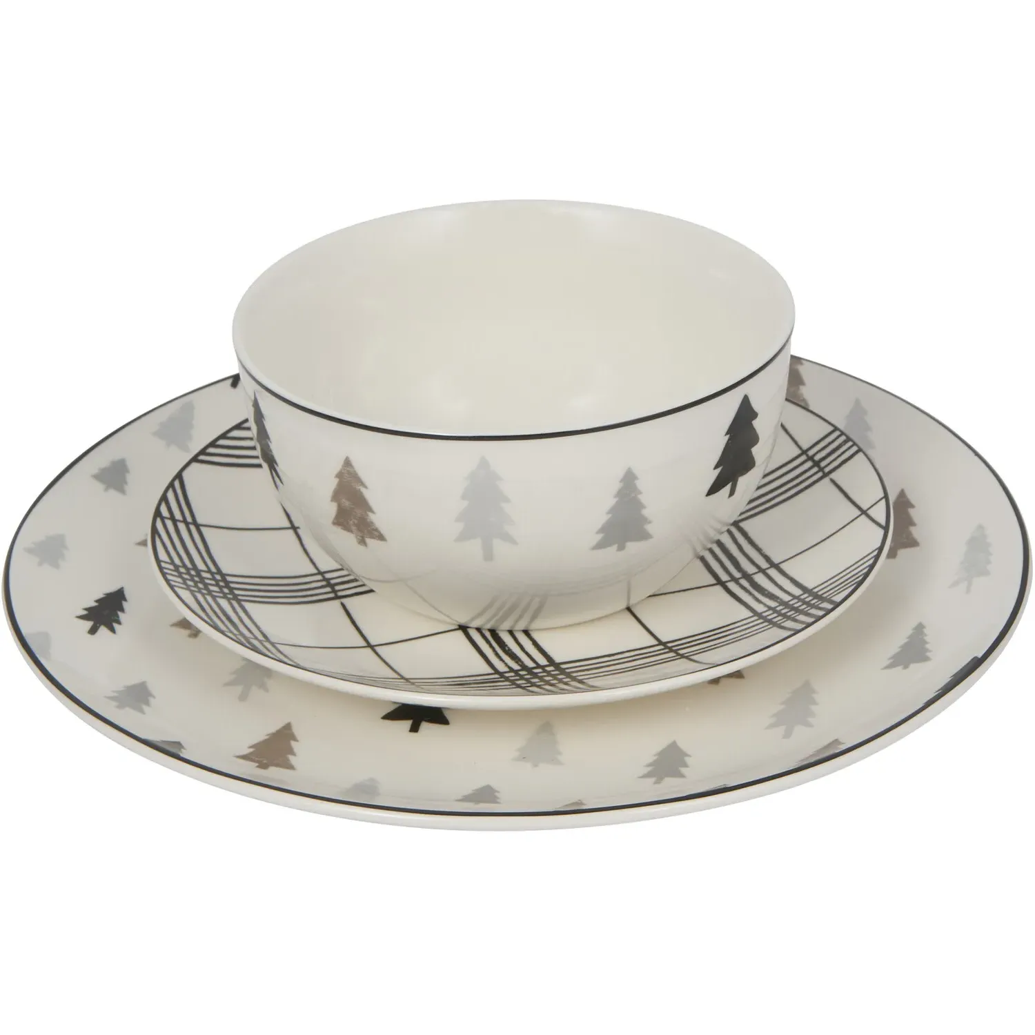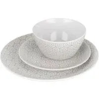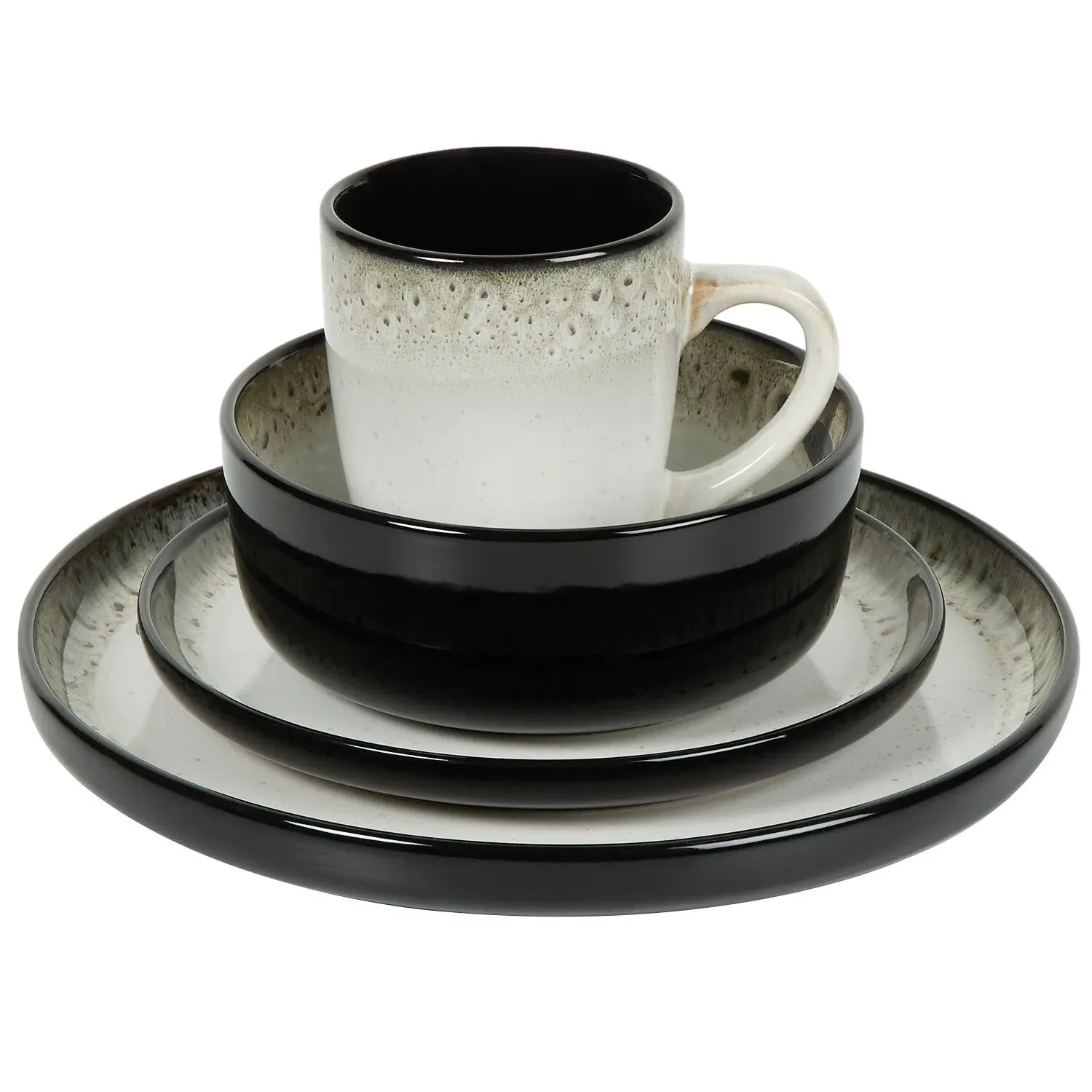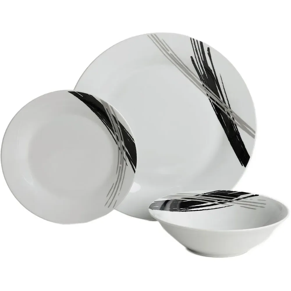 The Maya Monochrome 12 Piece Dinner Set offers striking tableware with its quirky monochrome design. The set includes four dinner plates, four side plates, and four bowls, providing complete dinnerware for family meals. Its bold pattern adds visual interest to any table setting, while the microwave and dishwasher-safe construction ensures convenient daily use.