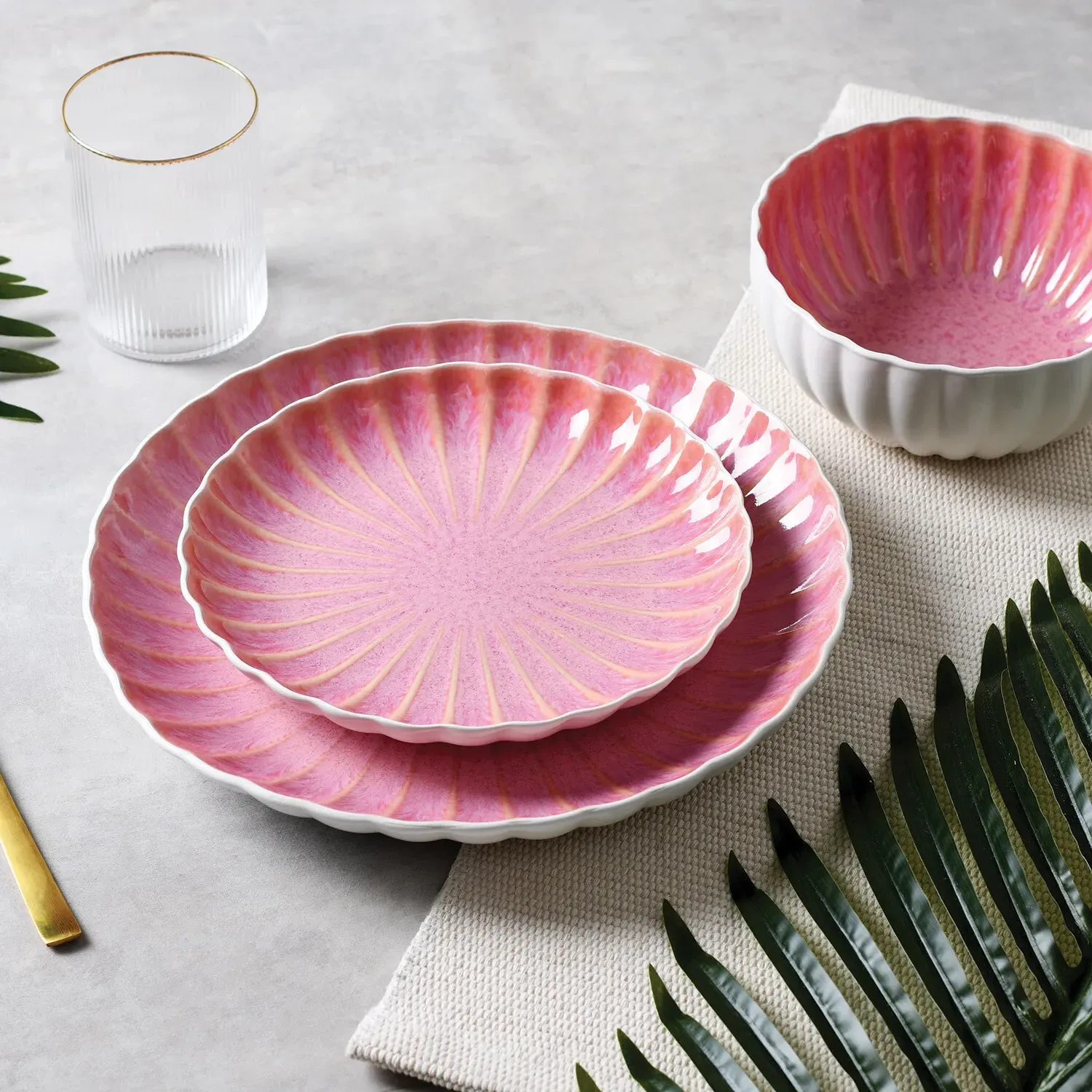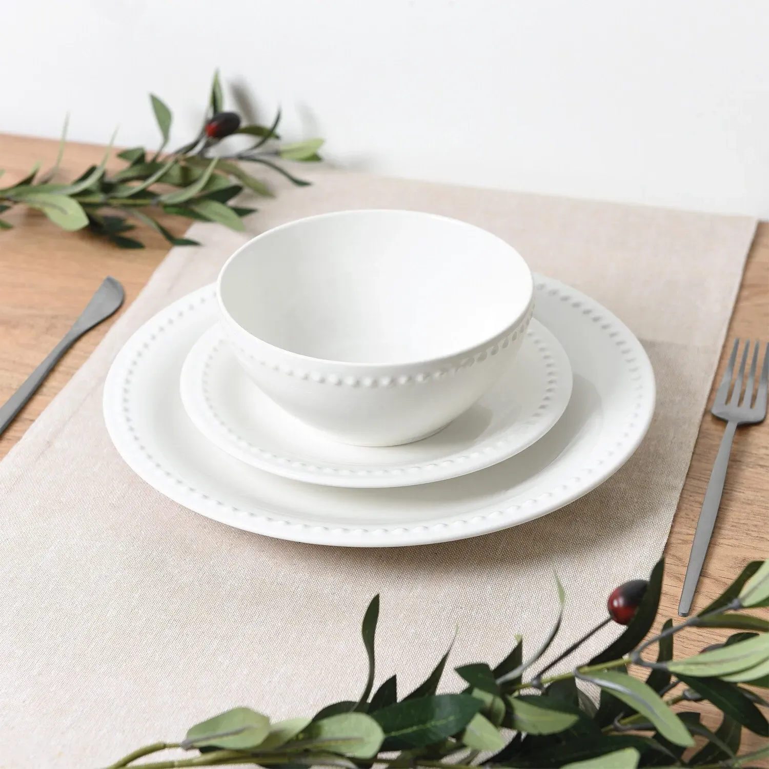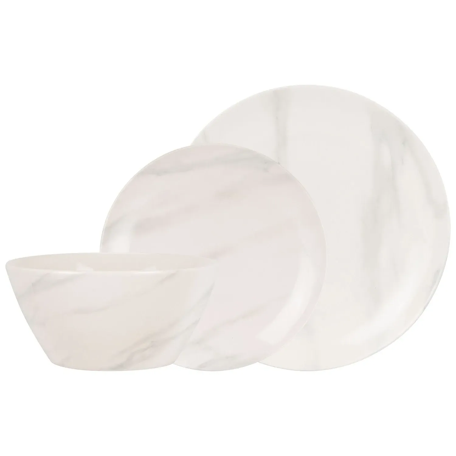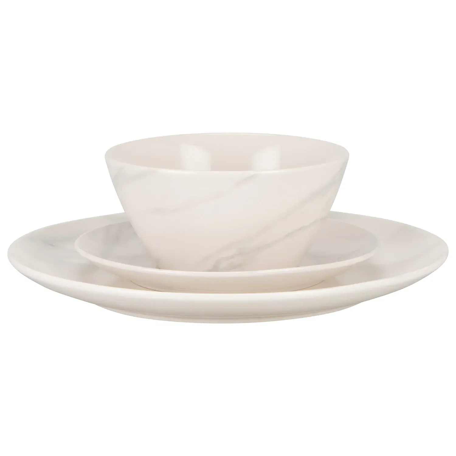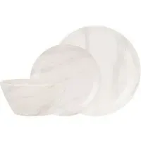 The Maya Monochrome 12 Piece Dinner Set offers striking tableware with its quirky monochrome design. The set includes four dinner plates, four side plates, and four bowls, providing complete dinnerware for family meals. Its bold pattern adds visual interest to any table setting, while the microwave and dishwasher-safe construction ensures convenient daily use.