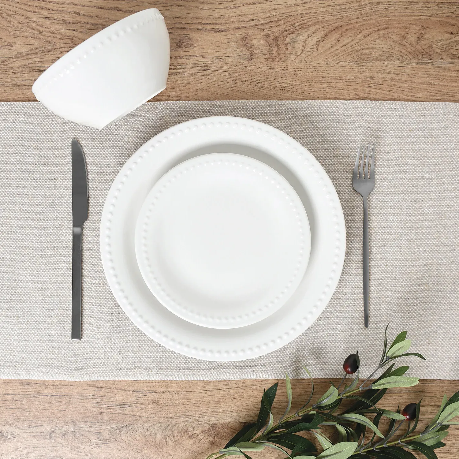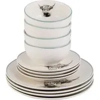 The Maya Monochrome 12 Piece Dinner Set offers a wonderful way to stock up on stylish dinnerware. This gorgeous dinner set features a striking, quirky monochrome design that will look great in any modern kitchen. The set includes four dinner plates, four side plates and four bowls included. They are microwave and dishwasher-safe.