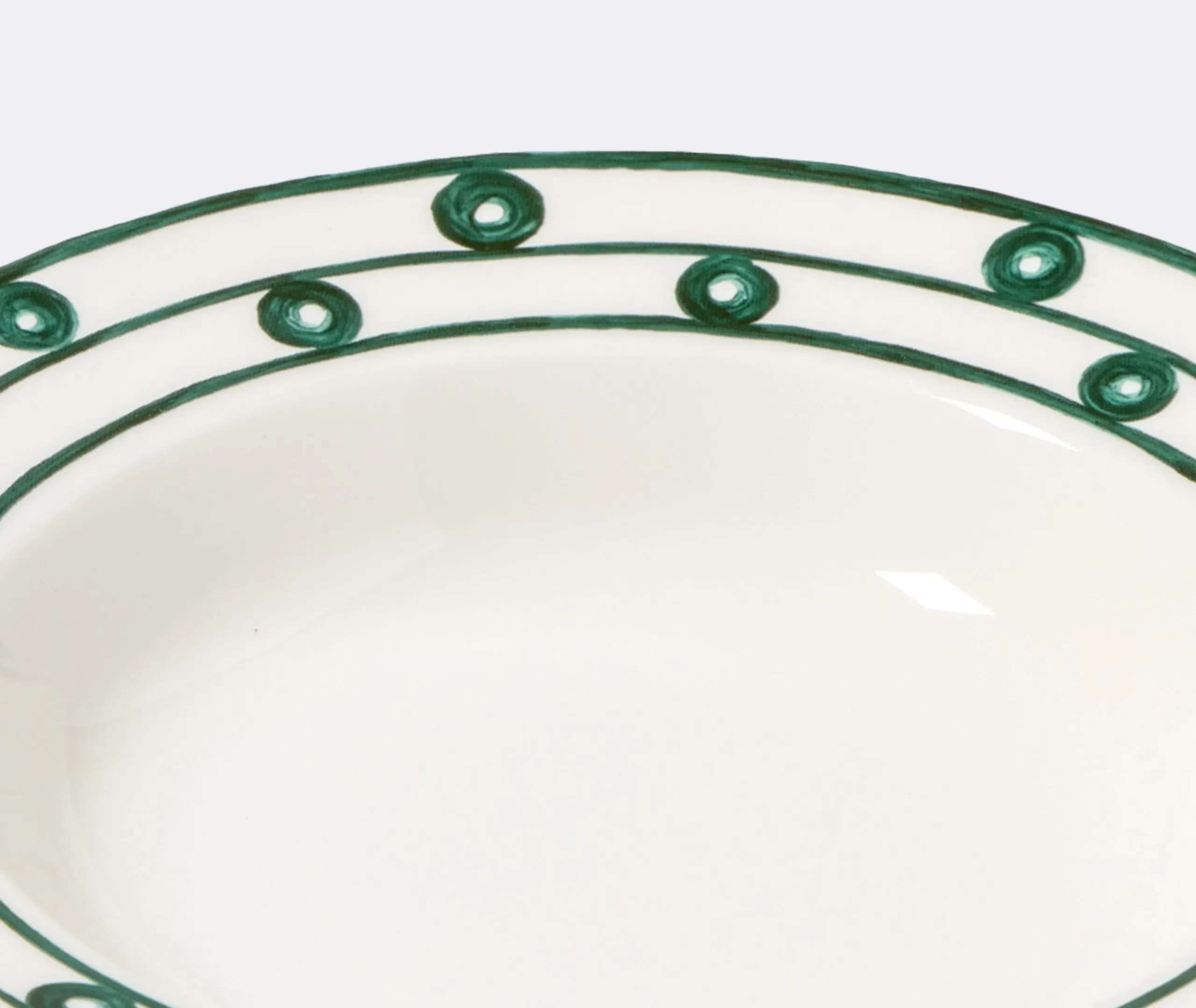 Artisanally crafted in Greece, the fine porcelain 'Kyma' dessert plate is handpainted with soothing and yet animated continous lines, recalling the movement and mood of the Aegean sea. Presented in a deep green, the piece sees Hellenic spirit come alive in a clean, classic design. Maximize the aesthetic with other tableware from the THEMIS Z collection.