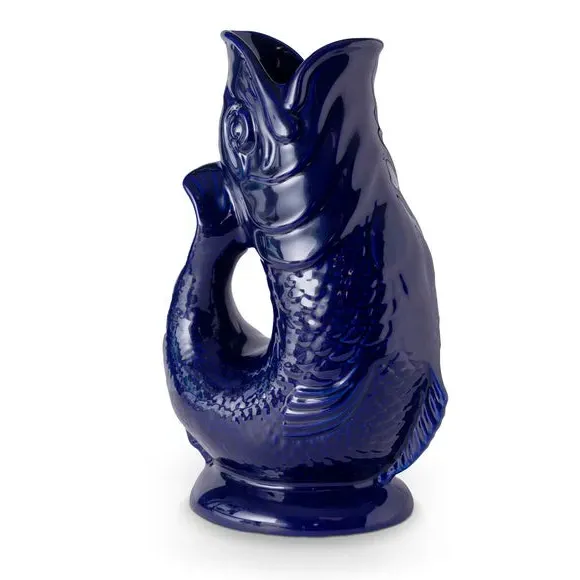 * Iconic pottery piece* Made at Wade potteries* Available in an array of colours* Hand wash only* 0.6 or 1.2 litre capacity Add a quirky touch and a historic piece of UK heritage design to your kitchen with the Wade Fish Jug. This versatile piece has the original Wade design which has stood the test of time over 150 years, and can be used as a jug, vase, decanter or even utensil holder. Available in a rainbow of colours to match every aesthetic, the 0.6 or 1.2 litre capacity is perfect for quenching your thirst on a hot busy day. Beautifully crafted from high-quality ceramic and finished in a glossy glaze, each jug is designed to be as unique as you. The iconic glugging sound made when pouring adds a delightful charm, making it a conversation starter in any room. Just make sure it's at least three-quarters full to hear this sound. Proudly made in Stoke-on-Trent, England, it sits proudly within the Wade Pottery Brand. This wonderful jug is a must have for any home. Hand washing is recommended to keep your jug looking its best.