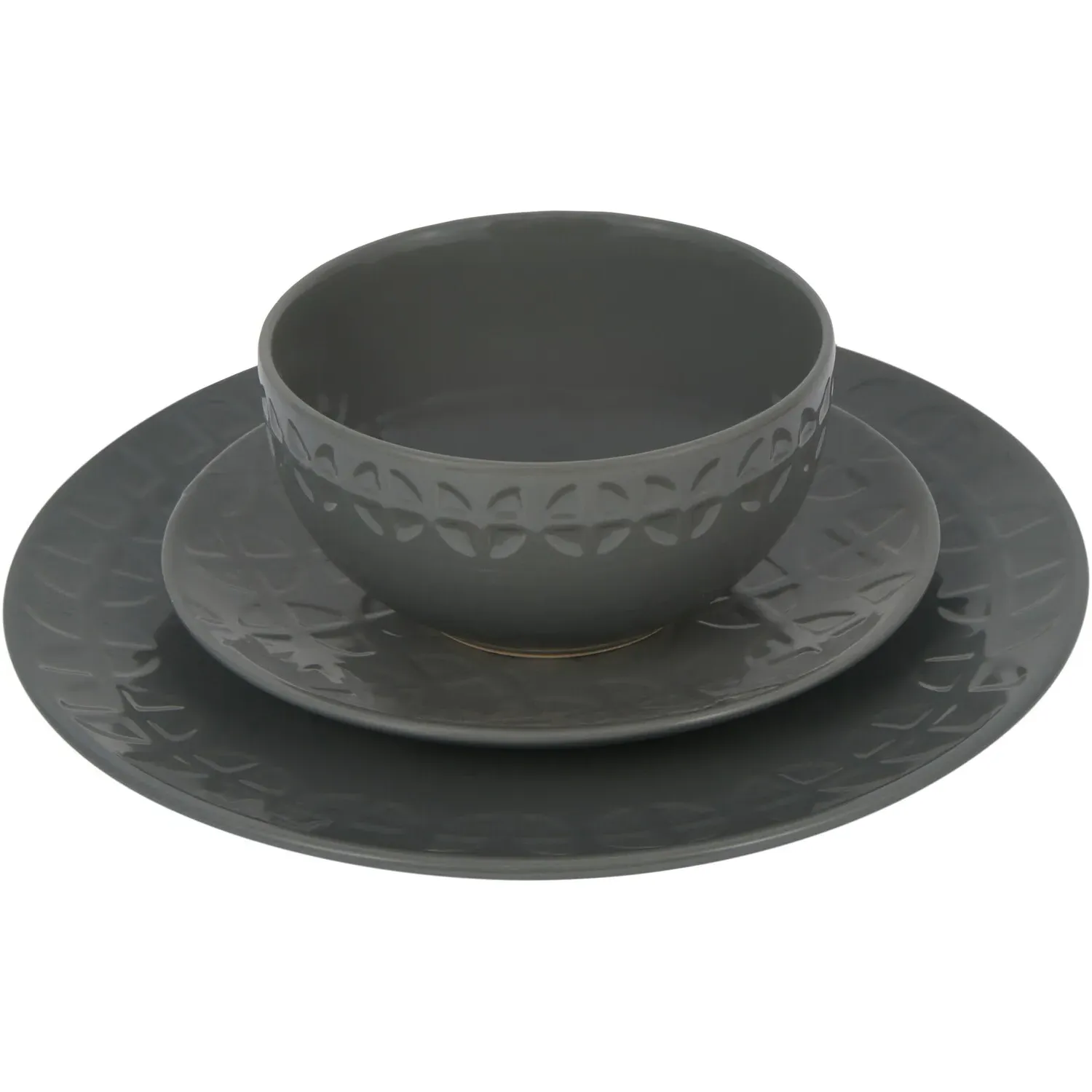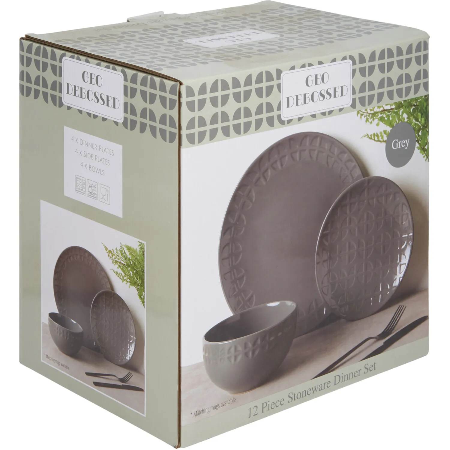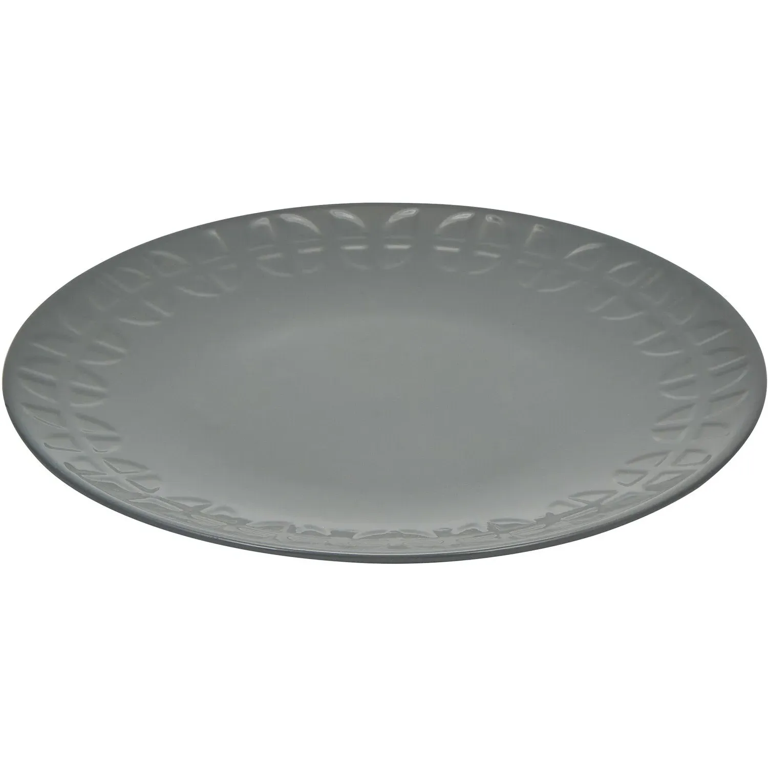 The Geo Debossed Side Plate features a traditional coupe shape with a distinctive debossed abstract pattern reminiscent of 60s and 70s retro design. Its compact size provides versatility for side dishes and sandwiches, while the repeating geometric pattern adds visual interest to your table setting. The grey finish complements both casual and formal dining occasions, and the plate offers dishwasher and microwave-safe convenience for daily use.