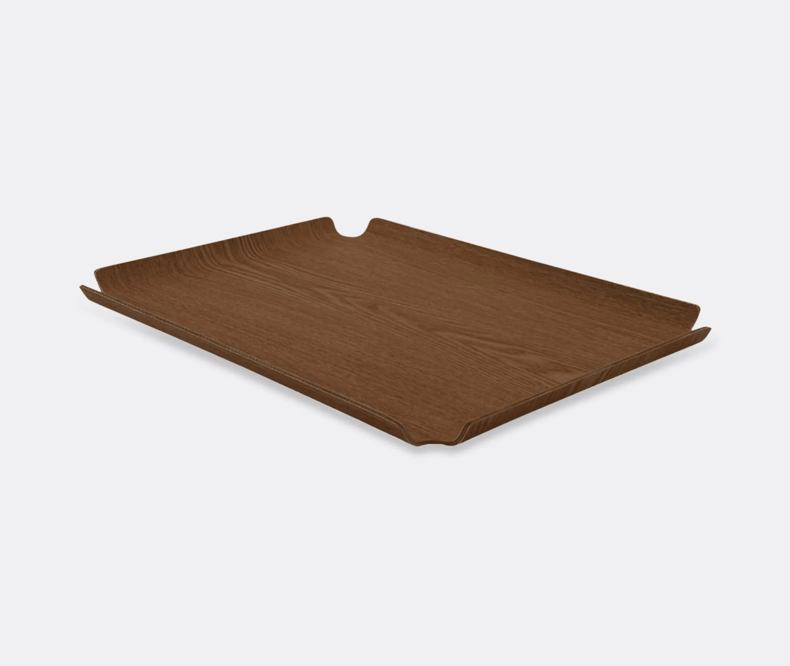 Smooth curves meet a rich walnut grain in this sleek tray design by XLBoom. U-shaped cut-out corners replace sharp angles with rounded lines in this highly aesthetic contemporary piece. Sloping sides enhance both a mid-century feel and ease of carrying. Cool and elegant, the medium rectangular 'Deck' tray, designed by GL&Ann, can be used for storing as well as transporting objects throughout the home. Trays can be blended with mouthblown glassware by the Belgian brand for impressive table arrangements.